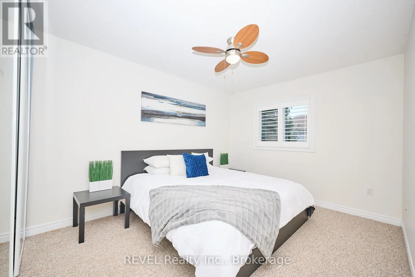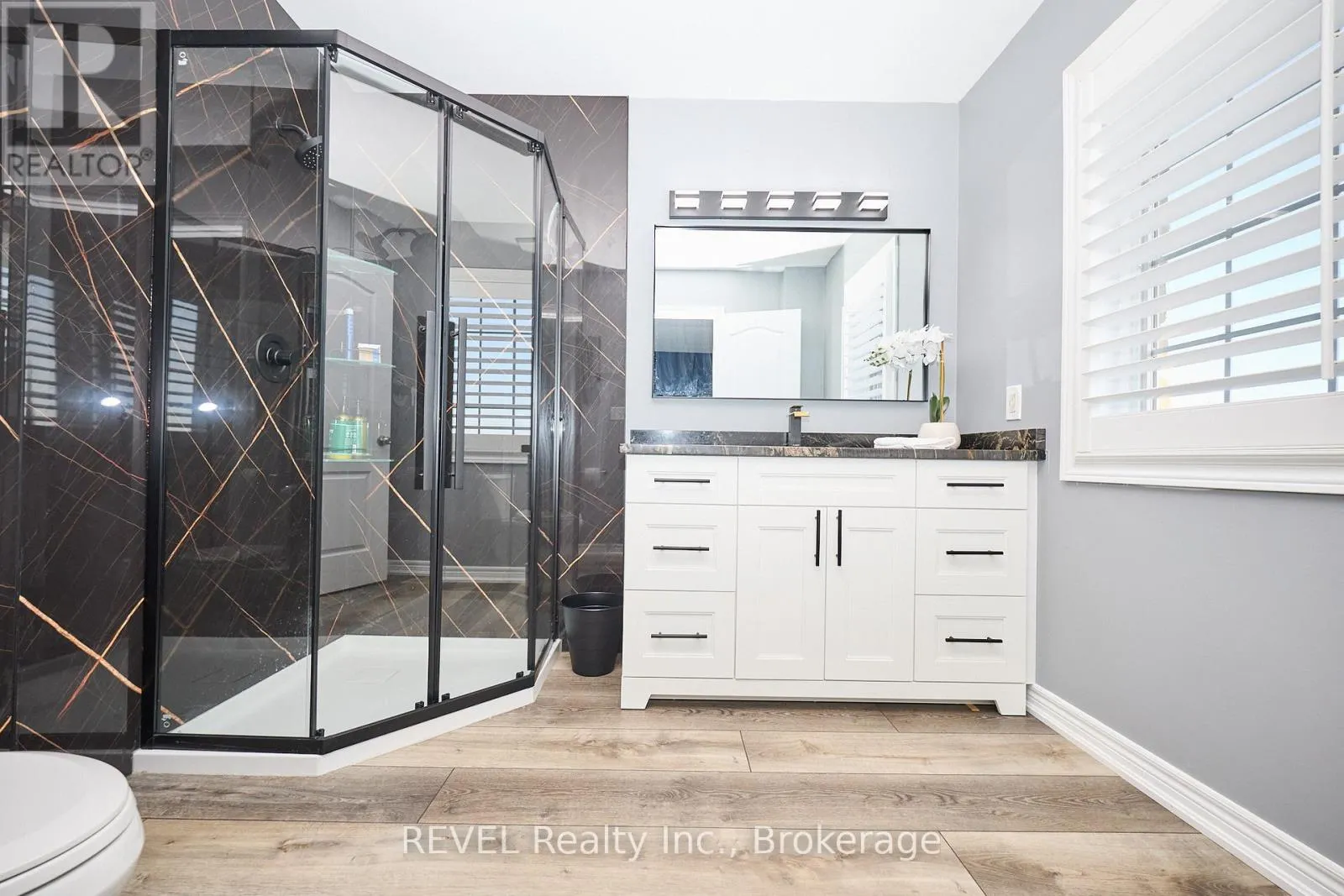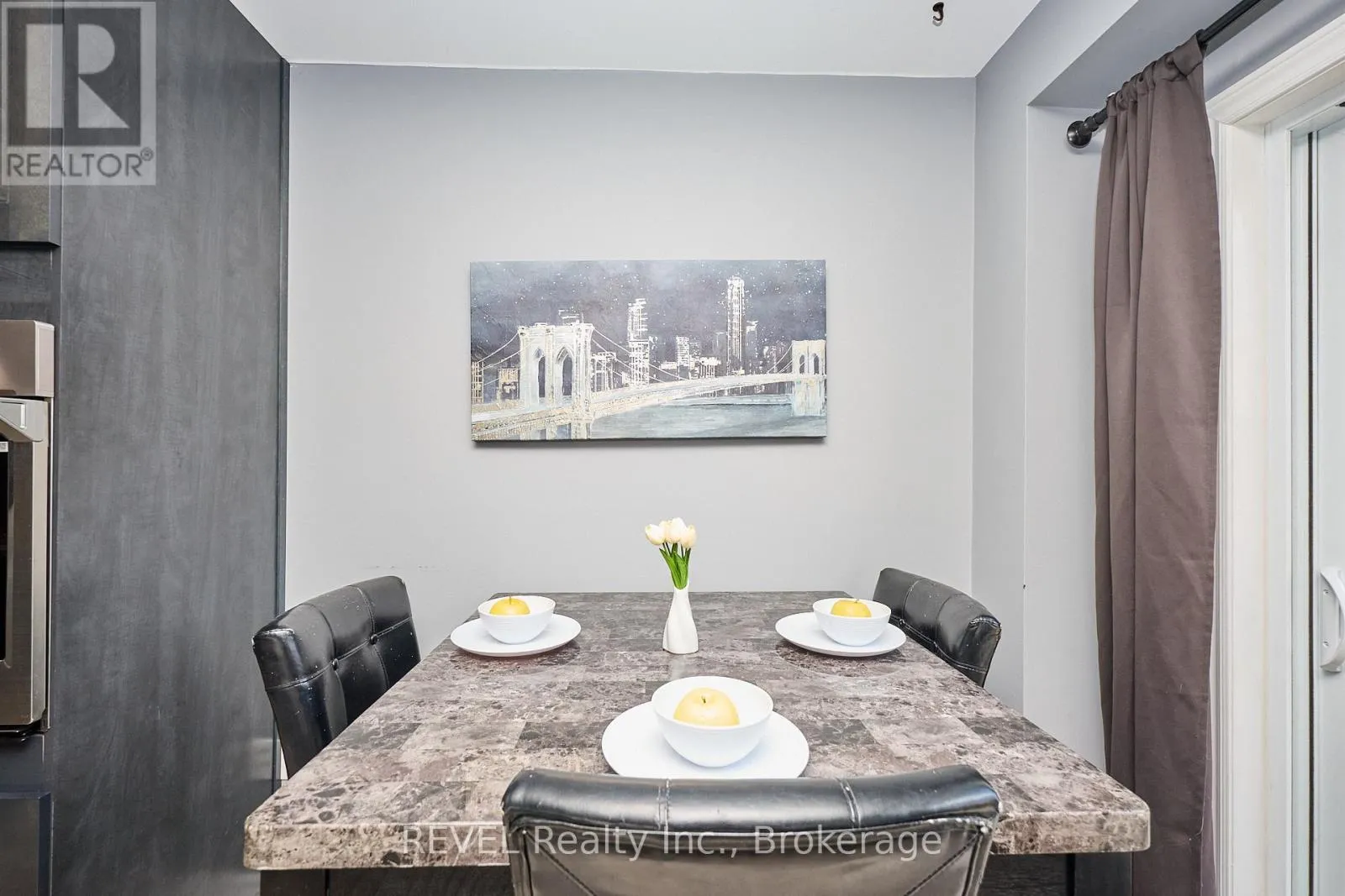 Cross Streets: Main & Chardonnay. ** Directions: South on Bartlett Ave off the QEW, Left on Main St E. Beautifully Updated 2-Storey Townhome in Grimsby! Step into this stylish, move-in ready home where modern updates meet everyday convenience. The open-concept main floor is designed for both comfort and entertaining, featuring a spacious living room with custom feature wall encompassing a built in electric fireplace, and TV space. Main floor also features an eat-in kitchen with granite counters, a stunning waterfall island, custom built-in PITT gas stovetop, built-in range, and soft-close cabinetry. California shutters throughout add elegance, while sliding doors lead to a private, fully fenced yard with patio. Upstairs, retreat to a generous primary suite with an ensuite featuring a beautiful custom shower. Upstairs is complimented by two additional bedrooms, a 4-piece bath, and a convenient laundry area with tub. The finished basement extends your living space with a cozy family room and plenty of storage. Enjoy the practicality of an attached 1.5-car garage with a side-mount door opener and direct walkout to the backyard. The only shared wall is within the garage. No living spaces are attached, offering the privacy and comfort of a detached home. Every detail has been thoughtfully designed with high-end finishes, making this home an absolute must-see in Grimsby. (id:27476)