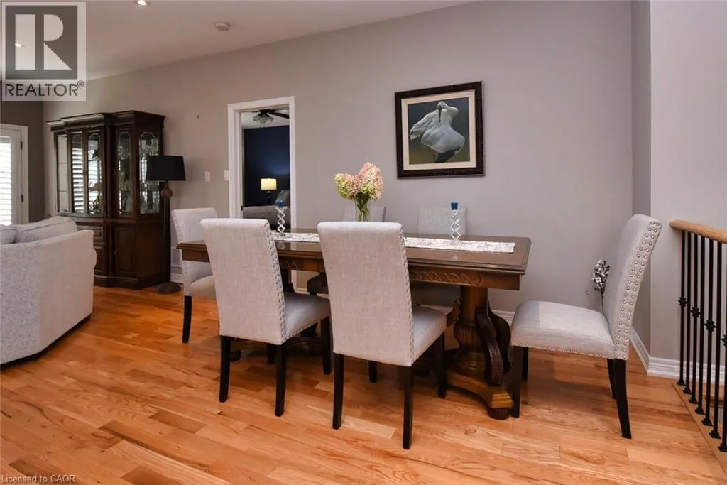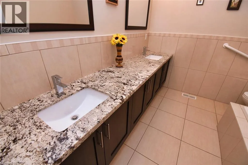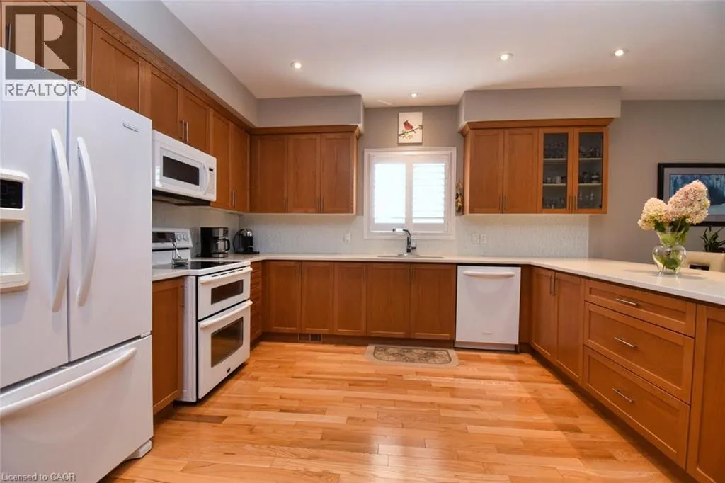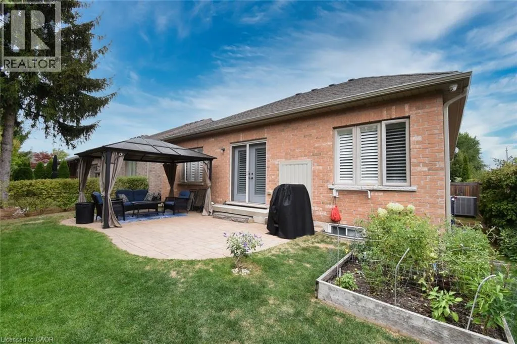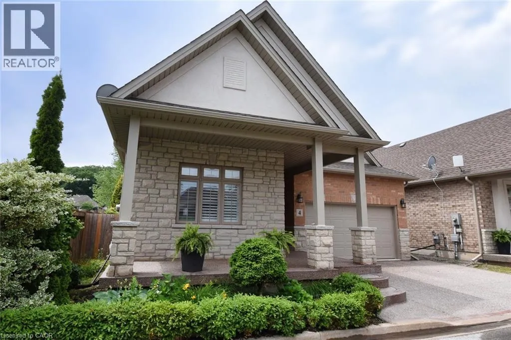 QEW to Bartlett, right on Main Street Rarely offered bungalow in a private enclave nestled in charming Grimsby. This detached all brick & stone bungalow offers 2 + 1 Bedrms and 3 bathrms. The main floor has a modern open concept design with 9 ft ceilings, hardwood floors, pot lights throughout and California shutters. Huge dream kitchen with plenty of cabinets and granite counters. The primary retreat offers a spacious walk-in closet, 5 pce ensuite bathroom with a jetted soaker tub. Fully finished basement has 3 pce bath, bedroom, large rec room, and a large utility room with plenty of storage space. Double driveway and front porch with exposed aggregate, gorgeous professionally landscaped maintenance free yard with private patio, perfect for entertaining. Located in a private exclusive 9 home enclave, close to award winning wineries, local markets, parks, schools, easy highway access and scenic small towns along the Niagara escarpment. A MUST SEE. Don't miss out on this rare find!! (id:27476)