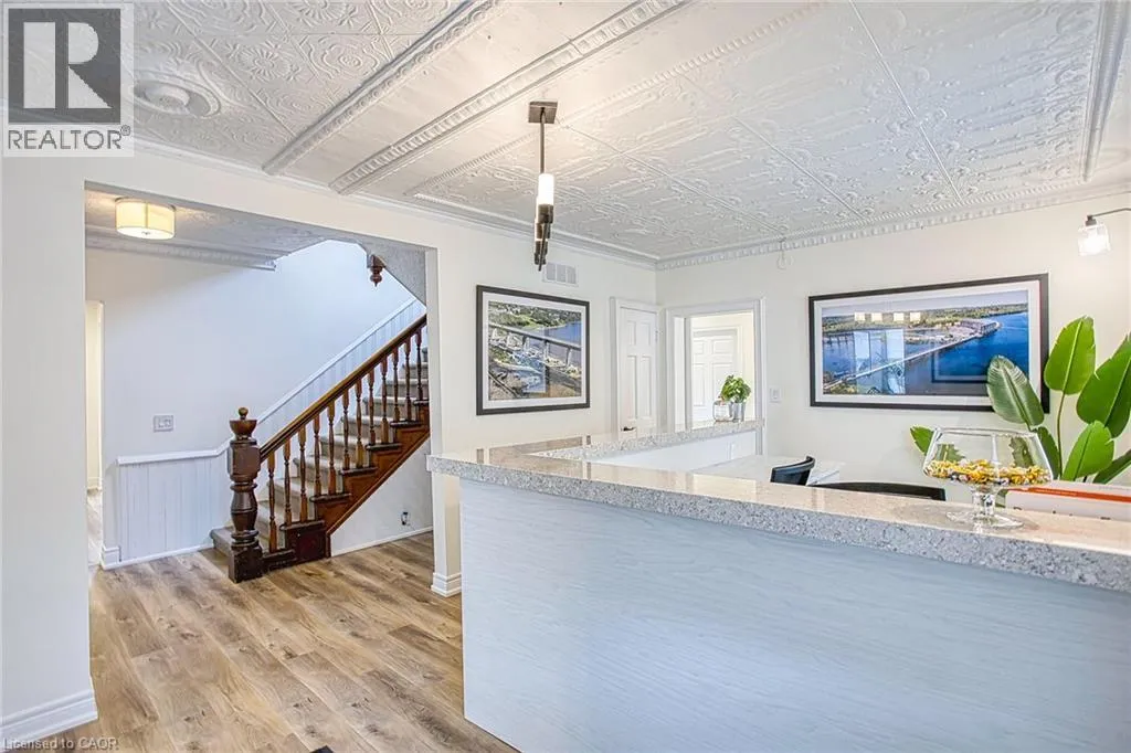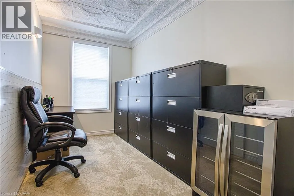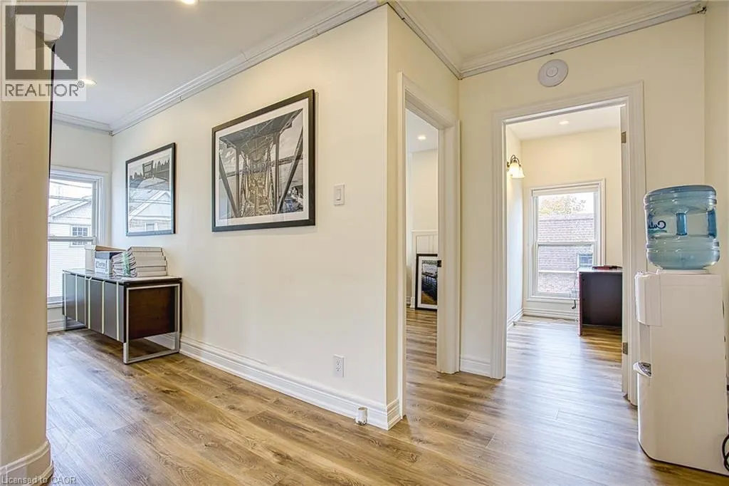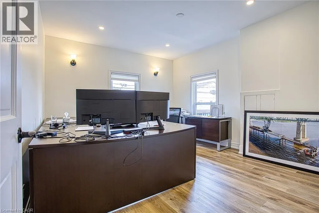 Queen Elizabeth Way to Christie/Ontario/Maple Exit Turn right onto Ontario Street Welcome to 42 Ontario Street, a standout property in the heart of downtown Grimsbyâperfect for your next office headquarters. This character-filled two-storey home offers 12 private offices, 4 washrooms, a welcoming reception area, a full kitchen with a shared open-concept lunchroom, and more than 2,800 sq. ft. of versatile space. Historic charm meets modern function with rich hardwood floors, a grand Victorian staircase, intricate wood trim, and striking tin ceilings in the main foyer. An outdoor patio provides the ideal spot for lunch breaks or team gatherings. The generous lot features 11 on-site parking spots plus ample street parking, and youâre just steps from restaurants, banks, shops, and quick highway access. Schedule your private showing today and discover how this remarkable property can elevate your business. (id:27476)