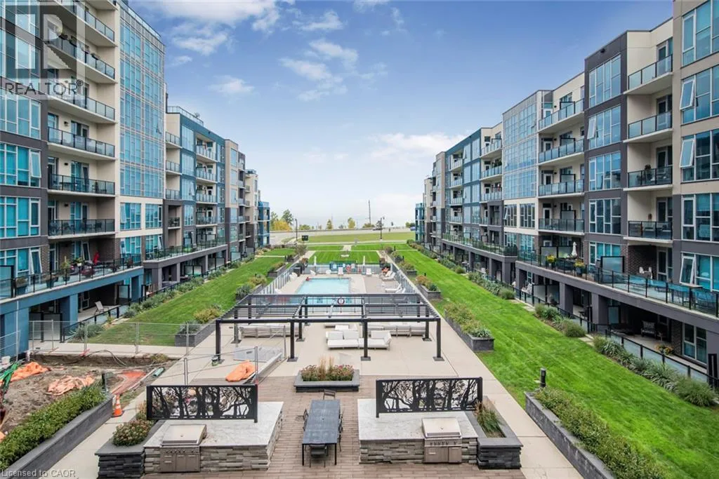 Casablanca to North Service Road, left on North service Road, left on Concord place Resort style turn key living! Rare large 290 sqft Patio on quiet side of the building situated near visitor parking. Primary bedroom has direct access to bathroom with jetted tub. Open concept layout, upgraded white kitchen cabinets, stainless steel appliances. Designed to be more like a resort than typical condominium, Aquazul has a courtyard pool, multiple seating and BBQ areas, covered terraces, club room, gym, party room, movie room, billiards etc. Just steps to the lake and beach, near restaurants and all amenities, with QEW access. You'd be proud to show off this home to your family and friends. (id:27476)