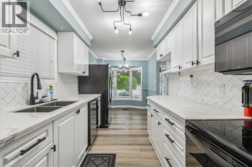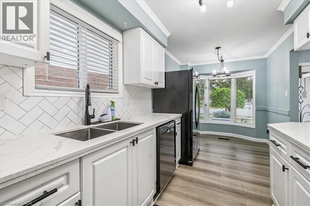 south on Casablanca Blvd - east on Livingston Ave - left on Merritt Cres Great value in this beautifully updated detached home offering approx. 1,400 sq ft, 3 bedrooms, 2.5 baths, and a finished basement. Enjoy a bright eat-in kitchen with quartz counters, herringbone backsplash, and bayed dinette. Spacious living/dining room with updated flooring and walk-out to a private, fully fenced yard with deck, pergola, and treehouse. Large primary bedroom with his & her closets and ensuite privilege. Finished basement features a cozy family room with fireplace, 3pc bath, and space for a play area or office. Main floor laundry, crown moulding, lots of storage. Quiet crescent beside a park, walking distance to schools, Peach King Centre, and close to Casablanca/QEW. A fantastic home in the heart of Grimsby! (id:27476)