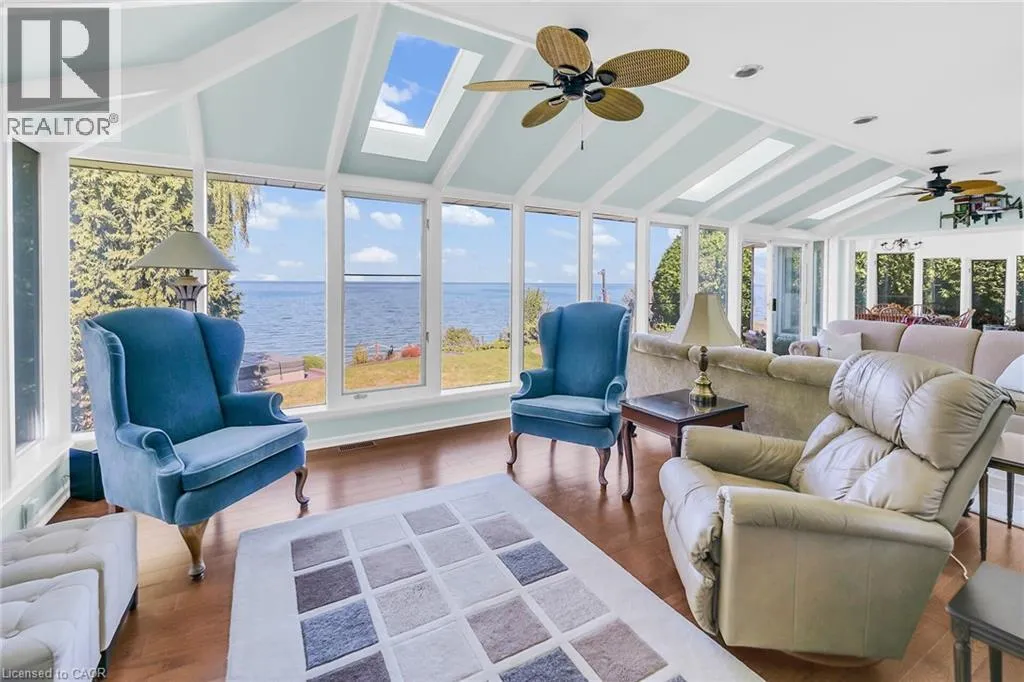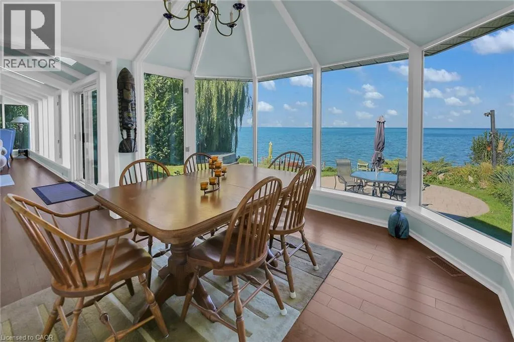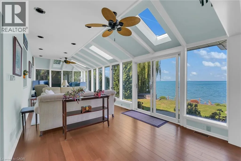 Lake St. Barlett turns into Tupper GRIMSBY BEACHFRONT WITH REMARKABLE LAKE ONTARIO AND GTA SKYLINE VIEWS â Welcome to an exceptional private beachfront home in Grimsby, where postcard-perfect Lake Ontario and GTA skyline views are a daily reality. The traditional center hall plan leads you into an elegant living room, complete with a cozy gas fireplace and unobstructed water views. The spacious kitchen features an abundance of cabinetry, while the breathtaking 500 sq ft, four-season sunroom serves as the home's centerpiece, offering wall-to-wall windows and ever-changing vistas. Upstairs, the primary bedroom suite is a private sanctuary with a walk-in closet and a three-piece ensuite, which features a custom glass shower and stunning views. Two additional, generous bedrooms and a four-piece bathroom complete the upper level. Downstairs, the finished basement provides a custom wine cellar, a large recreation/media room, and a built-in wet sauna with a two-piece bathroom. The true masterpiece is the meticulously landscaped backyard, which offers multiple entertaining areas, including a patio, a hot tub, and your own private beachâperfect for swimming, kayaking, or paddleboarding. This lakeside retreat also includes a single-car garage, double-wide parking for four cars, and easy access to the QEW, YMCA, and multiple schools. Come experience picturesque sunsets and a remarkable waterfront lifestyle. (id:27476)