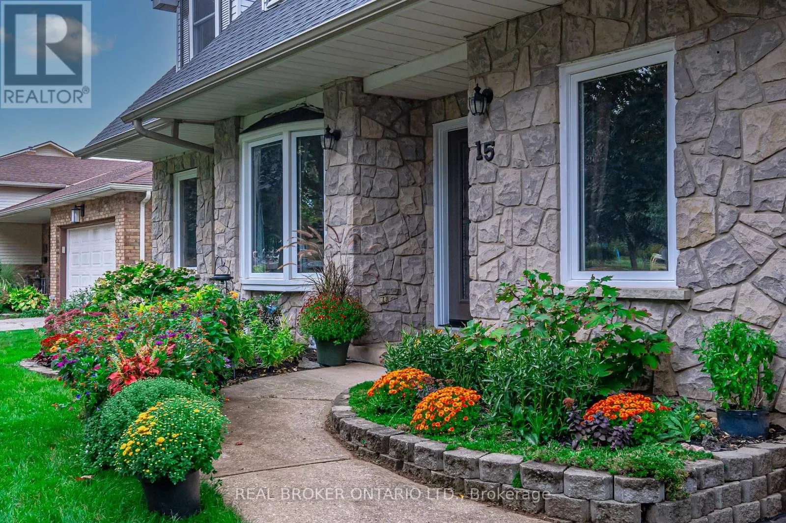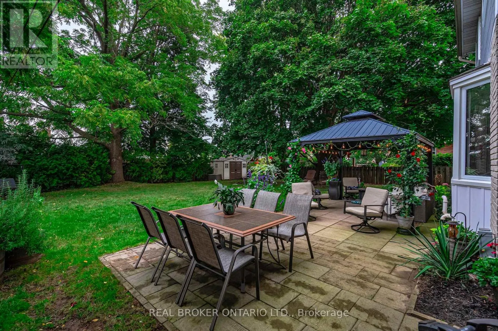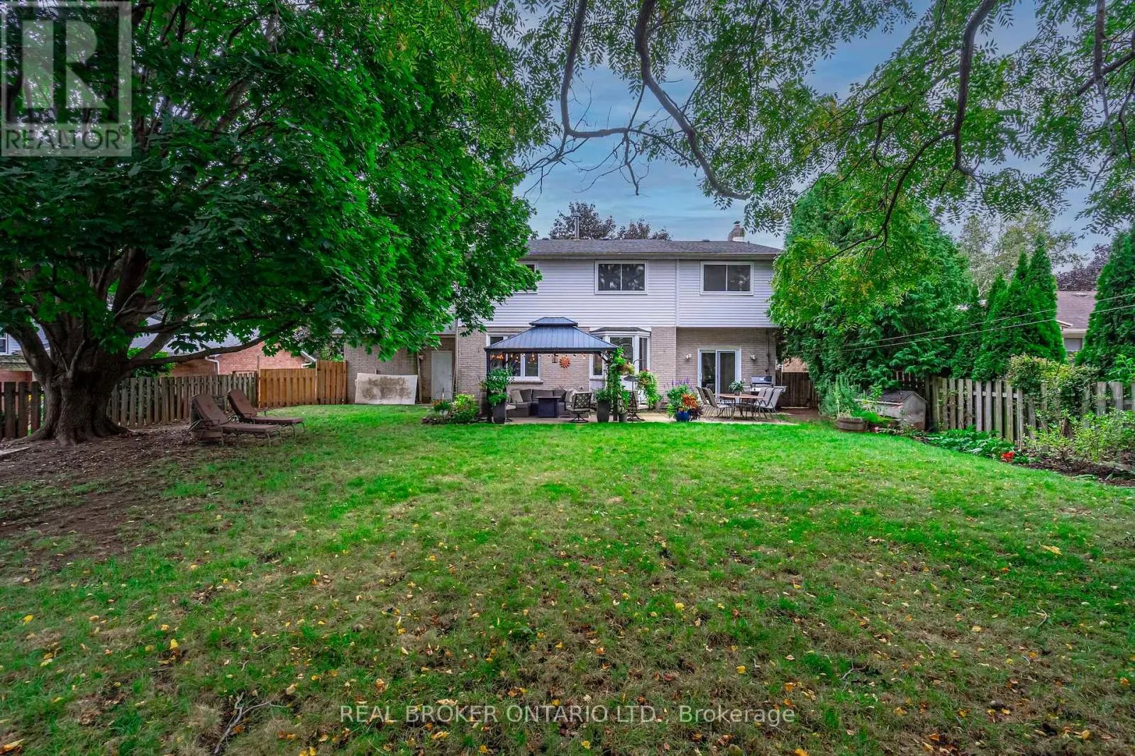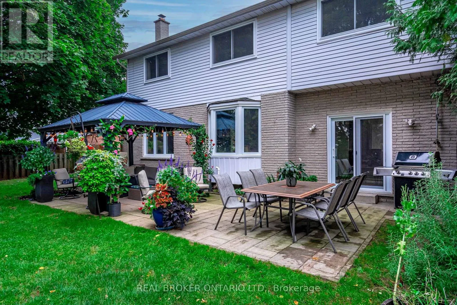 Cross Streets: Book. ** Directions: West from Bal Harbour, East from Book. Tucked under a canopy of mature trees in one of Grimsbys most peaceful lake-adjacent neighbourhoods, 15 Blue Forest Drive is where space, comfort, and timeless charm come together. With over 2,000 sq ft above grade and a fully finished basement, this home offers a family-friendly floor plan with thoughtful zones for relaxing, gathering, and entertaining both indoors and out. Inside, you'll find five bedrooms and 3.5 bathrooms across three finished levels. The main floor invites connection with a bright and welcoming living room, a separate dining space with bay windows, and a cozy family room anchored by a classic wood-burning fireplace perfect for game nights and laid-back evenings. The refreshed kitchen features granite countertops, updated cabinet doors, and pull-out storage, with direct access to the backyard patio and gazebo ideal for hosting summer dinners or morning coffee in the fresh air. Upstairs, four spacious bedrooms include a primary suite complete with walk-in closet and private 4-piece ensuite. The finished basement offers exceptional flexibility with a rec room, home gym, guest suite or office, and a full 3-piece bath. Outside, the home shines with curb appeal lush, colourful gardens frame a stately stone façade and newer windows. The fully fenced backyard features a covered gazebo, landscaped patio, garden shed, and certified hot tub wiring ready to go. Located just one street off Lake Ontario, youre across the road from Cindy Court Park, steps to Grand Avenue School, Bal Harbour Park & lakeside trails, and just minutes to Station One, Bench Brewery, boutique gyms, bakeries, and multiple wineries. With its spacious layout, finished basement, and unbeatable location, this home is tailor-made for growing families ready to level up their lifestyle in Grimsby. (id:27476)