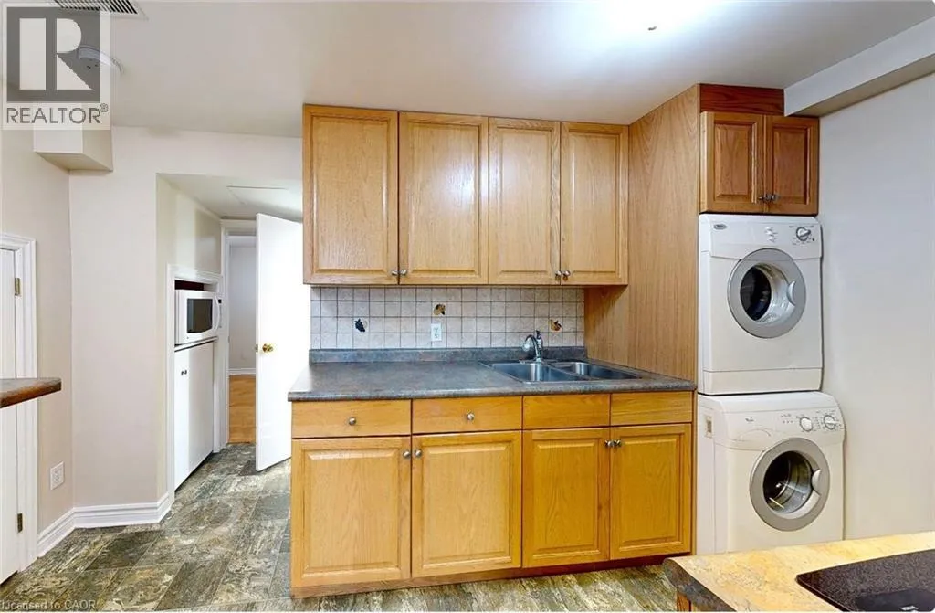QEW south on Christie Street, west on Elm Street, north on Main Street West (nearest intersection is Elm St, Gibson St and Main St. W) In Town with a view, across from Grimsby Museum, backing onto Coronation Park and Grimsby Lions Community Pool. Walk to everything, escarpment trails, shopping, restaurants, churches, schools. 5-minute drive to lakefront, marina, community center with arena, hospital. Easy QEW access. Freshly Painted. Hardwood flooring in Livingroom and bedroom. Basement apartment with full walk out to backyard and 16' x 10' covered concrete patio area with storage cabinet. Approx. 536 sq feet, 1 bedroom, 1 x 4-Piece Bathroom, Living room and galley kitchen with bar height counter area for eating. Suitable for single professional. Nonsmoker and No Pets Preferred. Month to Month Tenancy. Presently vacant. References, Full Credit Report and Score, Letter of Employment required with completed application. INCLUDES: Electric glass cooktop, Convection/microwave, electric washer and dryer. Parking as shown in pictures. $1685/m + 40% utilities (gas, hydro, water) 1st and Last month's rent required at time of signing Rental Agreement. (id:27476)