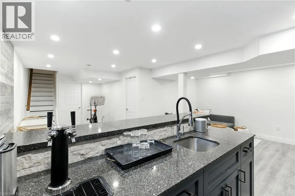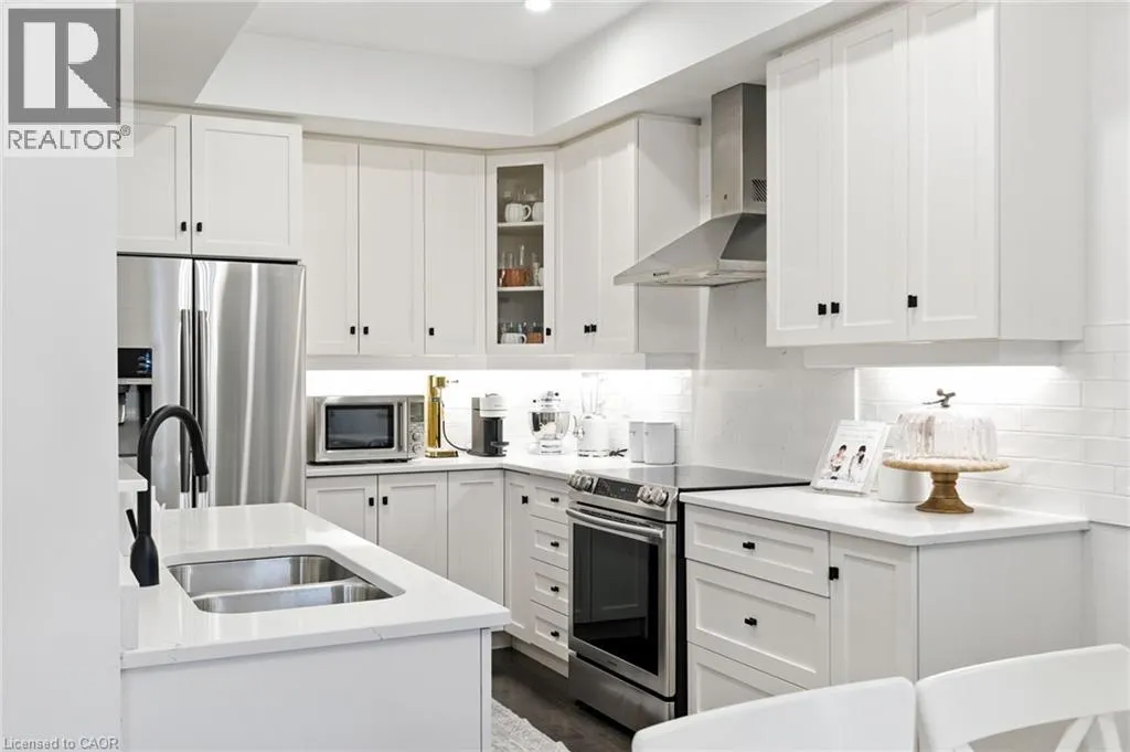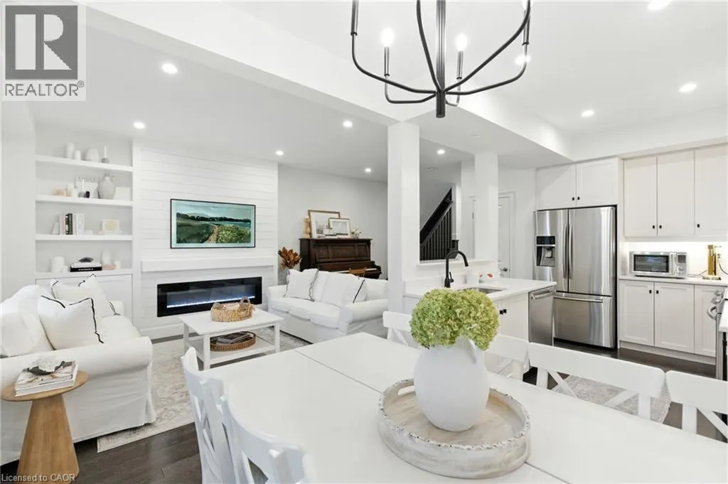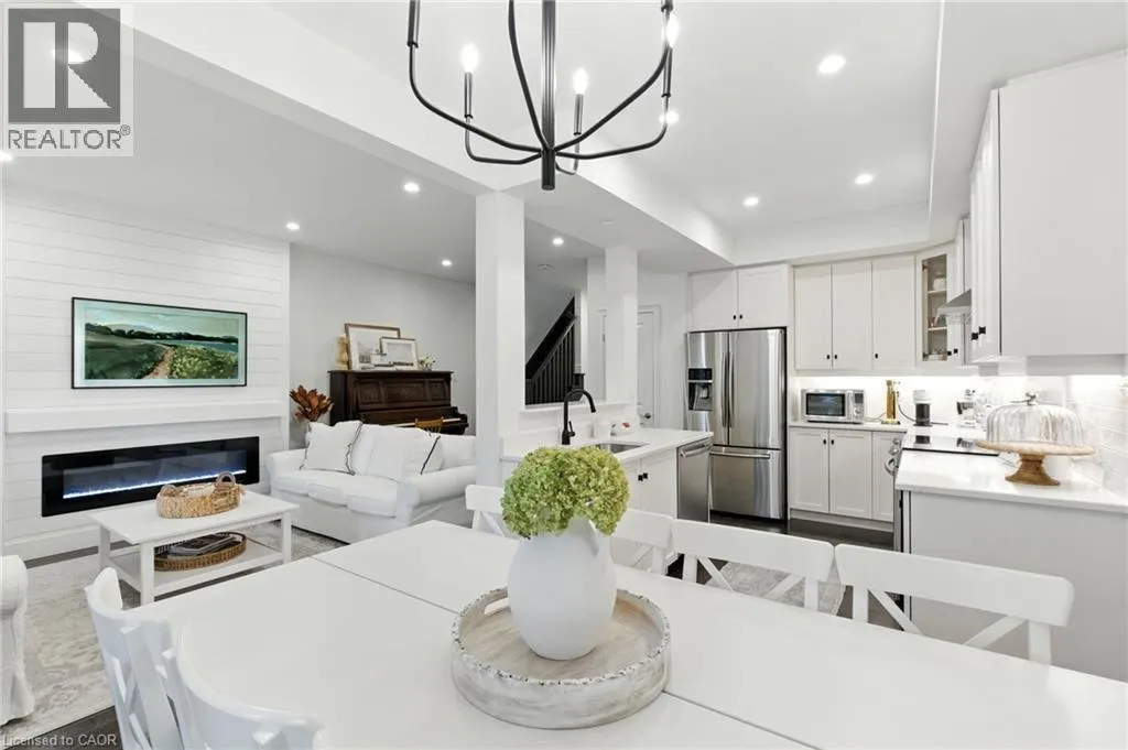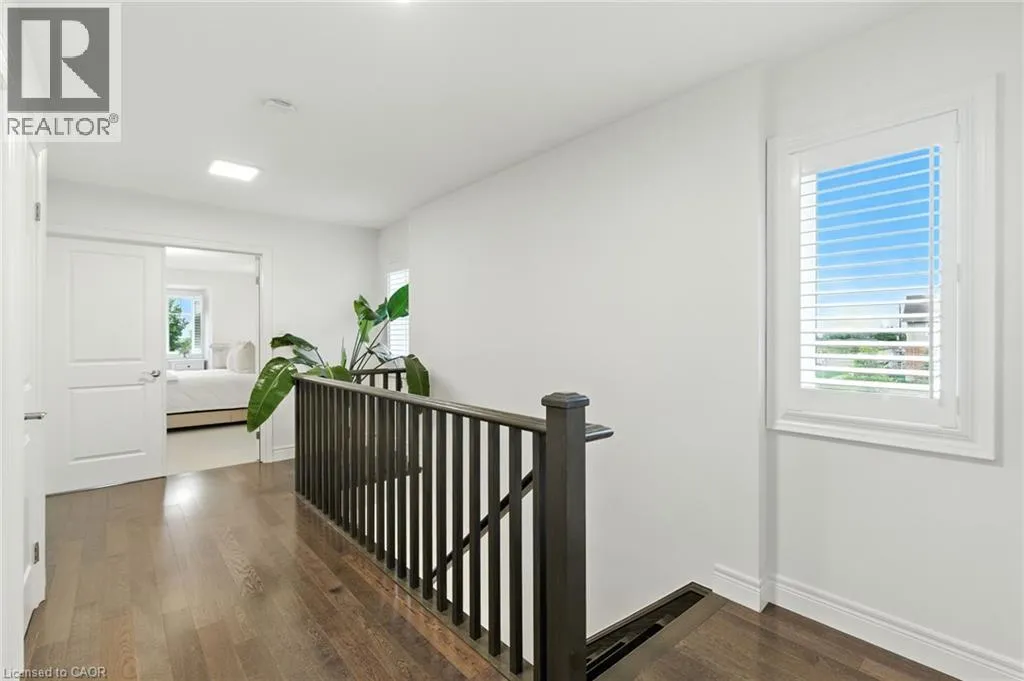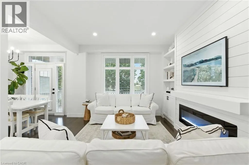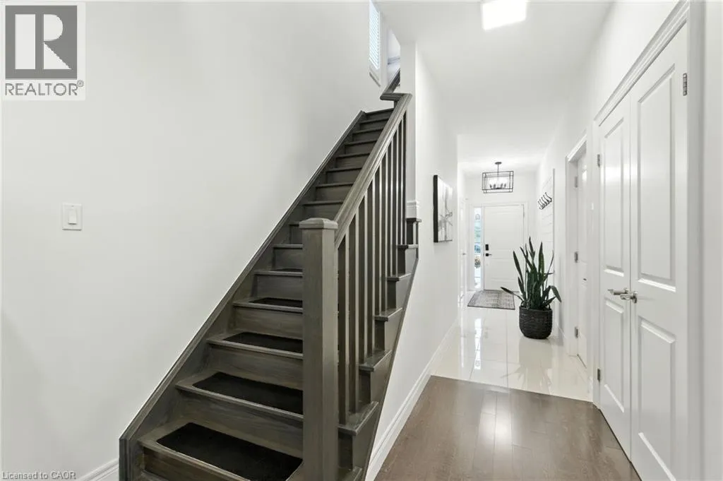 Casablanca Rd to Winston Rd., to White Star to Dunrobin Discover this stunning end-unit townhome in Grimsby on the Lake, where style, comfort, and location come together seamlessly. Offering magical lake views with breathtaking sunrises and sunsets, this beautifully renovated home combines modern upgrades with a warm, contemporary feel. Inside, youâll find an open and stylish interior with 9' ceilings on the main floor, featuring upgraded quartz countertops, all new lighting and sink fixtures throughout, and a custom-built fireplace surround with sleek built-in shelving. The dining and kitchen area walks out to a large deck â perfect for entertaining or enjoying evening views. A custom built-in bench with coat hooks adds a charming, functional touch to the entryway. Every window is adorned with built-in California shutters. The finished basement offers incredible extra living space with a large wet bar, two bar fridges, beer taps, a modern electric fireplace, and plenty of room to host, along with a large storage closet with built in shelving. Outside, a custom-built shed adds bonus storage, while the attached single-car garage and private driveway provide convenience. Upstairs, the spacious primary suite boasts an ensuite bathroom which opens to a balcony, and the large walk-walk in closet is fitted with a built-in closet system designed for maximum organization. A large second-floor laundry closet adds modern convenience to daily life. Located in a sought-after Grimsby neighbourhood, youâre just a 10-minute walk to the lake and the vibrant Grimsby on the Lake shops and restaurants. A short 2-minute drive brings you to Fifty Road or Casablanca Boulevard, where youâll find major retailers like Costco, Superstore, Metro, RONA, and more. Families will love the close proximity to excellent restaurants, schools and shopping. Commuters will appreciate the easy access to the QEW â making travel throughout the GTA and Niagara a breeze. (id:27476)