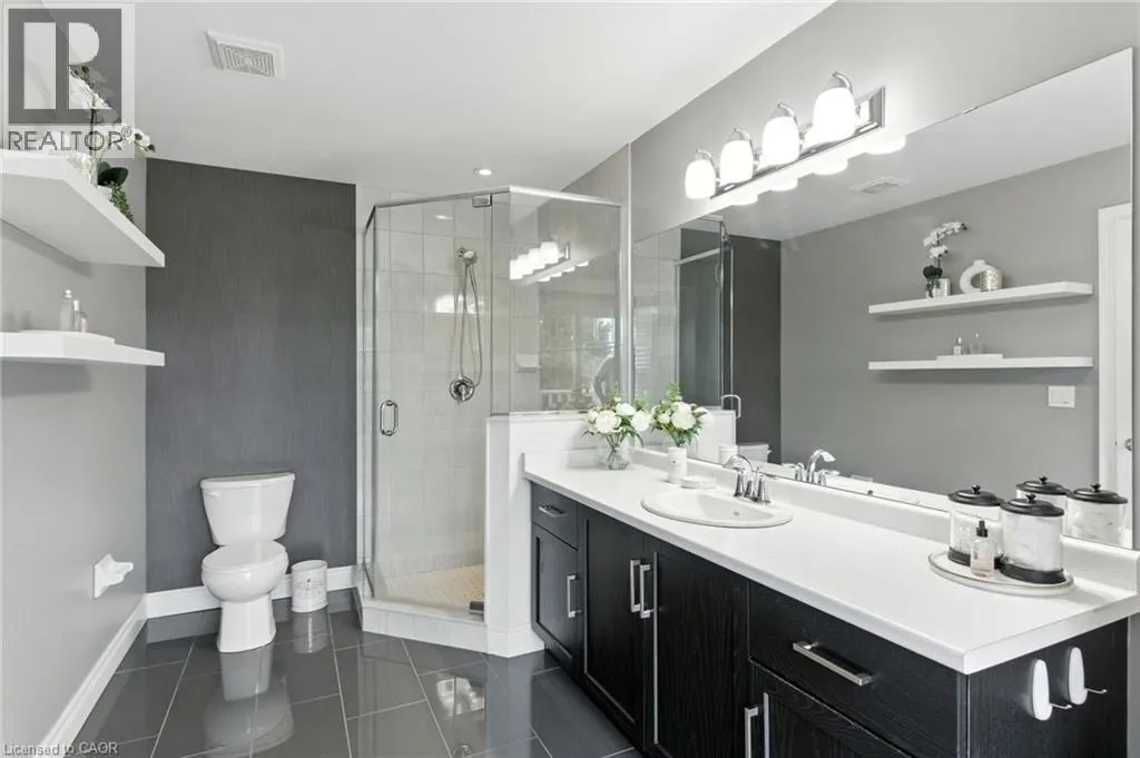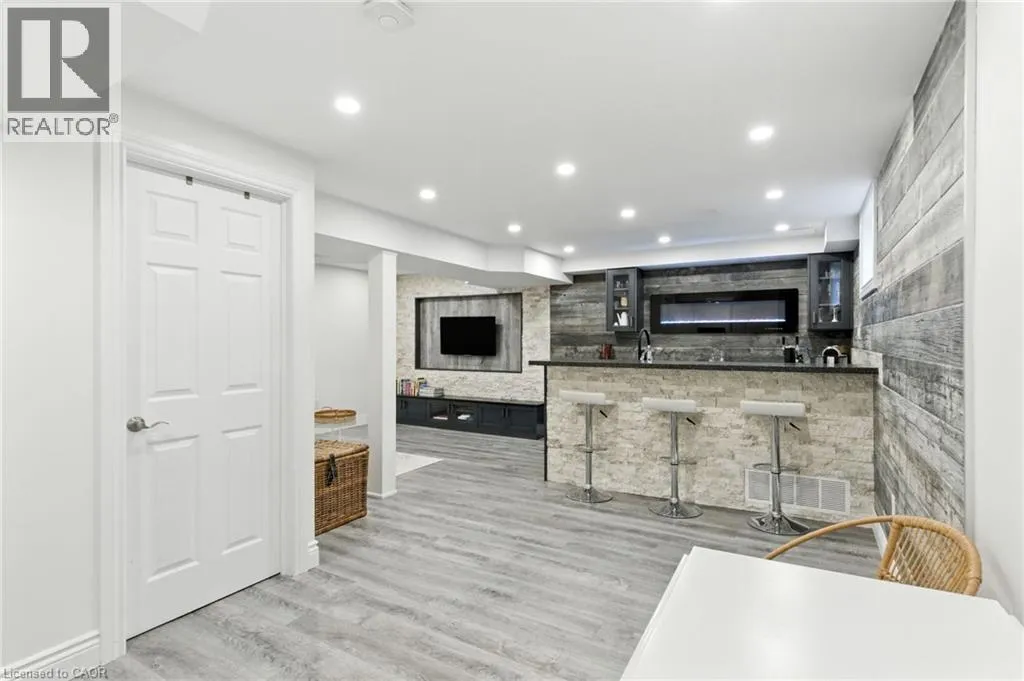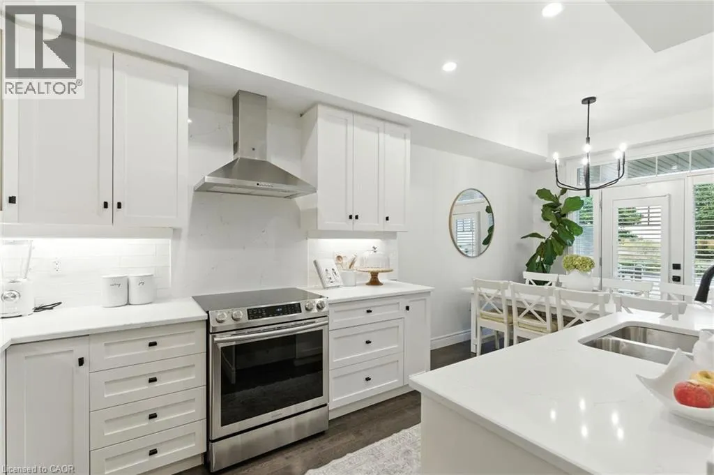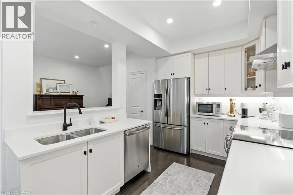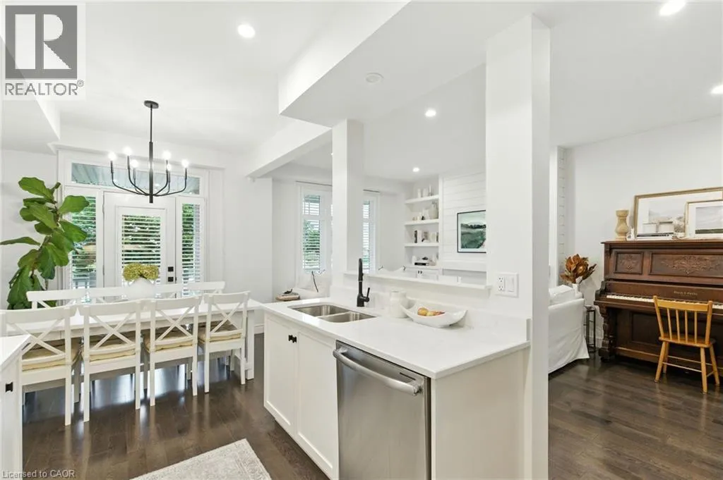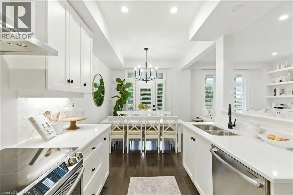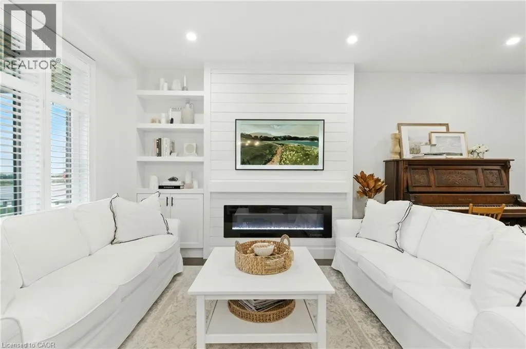 Casablanca Rd to Winston Rd., to White Star to Dunrobin Discover this stunning end-unit townhome in Grimsby on the Lake, where style, comfort, and location come together seamlessly. Offering magical lake views with breathtaking sunrises and sunsets, this beautifully renovated home combines modern upgrades with a warm, contemporary feel. Inside, youâll find an open and stylish interior with 9' ceilings on the main floor, featuring upgraded quartz countertops, all new lighting and sink fixtures throughout, and a custom-built fireplace surround with sleek built-in shelving. The dining and kitchen area walks out to a large deck â perfect for entertaining or enjoying evening views. A custom built-in bench with coat hooks adds a charming, functional touch to the entryway. Every window is adorned with built-in California shutters. The finished basement offers incredible extra living space with a large wet bar, two bar fridges, beer taps, a modern electric fireplace, and plenty of room to host, along with a large storage closet with built in shelving. Outside, a custom-built shed adds bonus storage, while the attached single-car garage and private driveway provide convenience. Upstairs, the spacious primary suite boasts an ensuite bathroom which opens to a balcony, and the large walk-walk in closet is fitted with a built-in closet system designed for maximum organization. A large second-floor laundry closet adds modern convenience to daily life. Located in a sought-after Grimsby neighbourhood, youâre just a 10-minute walk to the lake and the vibrant Grimsby on the Lake shops and restaurants. A short 2-minute drive brings you to Fifty Road or Casablanca Boulevard, where youâll find major retailers like Costco, Superstore, Metro, RONA, and more. Families will love the close proximity to excellent restaurants, schools and shopping. Commuters will appreciate the easy access to the QEW â making travel throughout the GTA and Niagara a breeze. (id:27476)