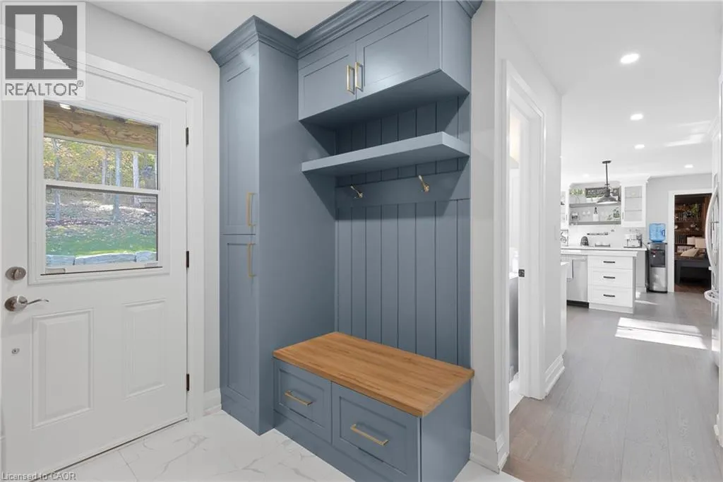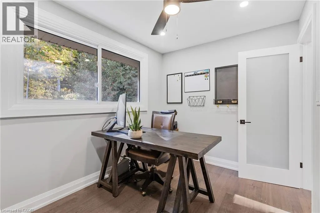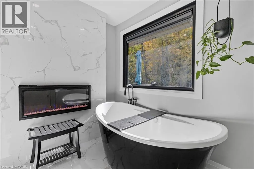 QEW , EXIT MAPLE AVE, EAST ON MAIN STREET, SOUTH ON NELLES ROAD SOUTH, EAST ON DORCHESTER DRIVE. Discover a rare blend of modern luxury and natural wonder in one of Grimsbyâs most prestigious neighbourhoods. Beautifully updated 4-bedroom plus office home. Situated on a 76.71â x 453.94â lot, this 2,750 sq ft residence backs directly onto the Niagara Escarpment, offering unparalleled privacy and a breathtaking natural backdrop. Sun drenched custom kitchen with loads of cabinetry and quartz countertops for the inspiring chef leads to the separate dining room great for hosting family dinners. Unwind in one of two distinct living areas. The inviting family room, complete with a cozy wood-burning fireplace, features a walk-out to a professionally landscaped oasis. This stunning backyard retreat includes an oversized flagstone patio and impressive amour stone walls, creating the perfect setting for quiet mornings or large gatherings. Ascend the spiral staircase to the fully renovated upper level. Here you will find three generous bedrooms, an updated 4-piece main bath, and a dedicated home office. Prepare to be captivated by the primary suiteâa true showpiece straight from a magazine. This serene escape features a private balcony, where you can sip your morning coffee while overlooking the tranquil backyard. The spa-like 5-piece ensuite is pure indulgence, boasting a deep soaker tub, heated flooring, and its own fireplace. A large walk-in closet with custom organizers completes this exceptional sanctuary. This home isn't just beautiful; it's built to last. This home has been extensively updated with newer shingles, eaves, fascia, soffits, new siding, and a beautiful stone façade. The entire upper level was renovated down to the studs, engineered hardwood floors. Most windows were replaced approximately 5 years ago, and two new solar tubes bathe the home in natural light. This is a truly exceptional property offering quality finishes, modern comfort, and a peaceful escarpment setting. A perfect home for those seeking space, privacy, and uncompromising style (id:27476)