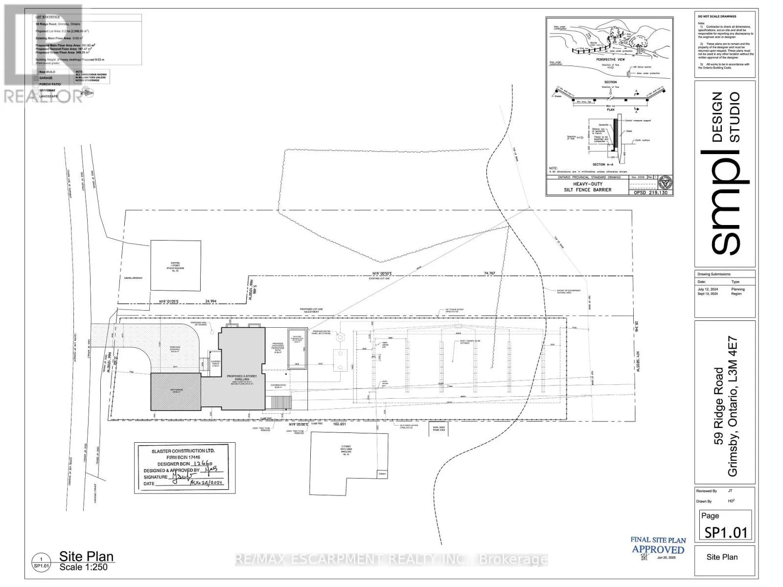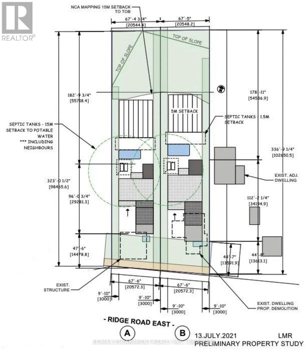 Cross Streets: Mountain Road. ** Directions: Christie Street exit, South on Christie Street, East on Ridge Road East. Welcome to 59 Ridge Road East, Grimsby - a rare and remarkable opportunity to build your dream home on a breathtaking 67.6 ft x 333.6 ft lot perched on the sought-after Ridge Road, overlooking the Niagara Escarpment. Through the forest take in the serene views of Lake Ontario, CN Tower, Toronto skyline, and downtown Grimsby. The Seller is motivated and the property NEC permit secured for a custom 3,600+ sq ft modern home design by award-winning SMPL Design Studio, featuring 3-car garage, 4 bedrooms & 4 bathrooms, Main floor office, and Covered outdoor living space. The site plan provides room for a pool and an area to create a backyard oasis. The lot backs onto mature trees and the Bruce Trail, with no front or rear neighbours - offering total privacy and serenity just minutes from the downtown core. Hydro, natural gas, and cable are at the road. The proposed septic and cistern systems already laid out in the grading plan. This is a builder's or end-user's dream-perfect for those looking to create a one-of-a-kind residence on the ridge in one of Grimsby's most coveted locations. Whether you're an investor, developer, or someone ready to build a forever home surrounded by nature, this offering delivers unmatched value. Enjoy country-like living just minutes from the QEW, future Grimsby GO Station, schools, marinas, vineyards, shops, and the hospital. With sweeping views, NEC permit, and stunning architectural plans, this is an extraordinary opportunity not to be missed. (id:27476)