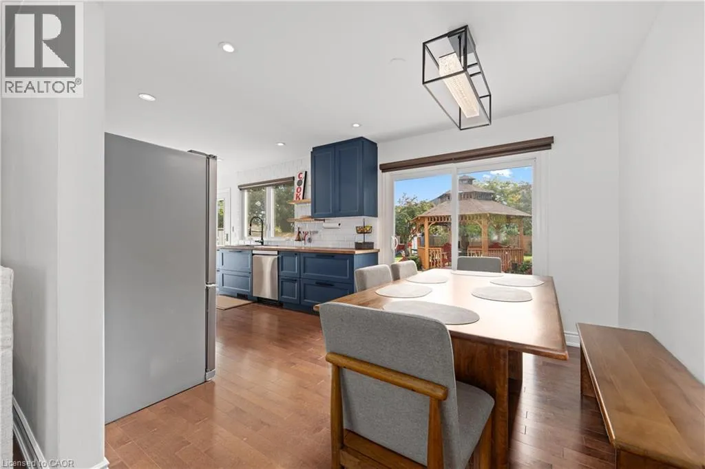 QEW Niagara to Casablanca Blvd., South to Livingston Ave., East to George St. AWESOME WHOLE HOME IN GRIMSBY! BEAUTIFULLY RENOVATED + HUGE PRIVATE BACKYARD & ELECTRIC CAR CHARGING! Welcome to 11 George. Nestled at the base of the escarpment near Casablanca and Livingston, this sun-filled, fully detached side-split home is the perfect place to call home. Just minutes from great schools, shopping, the new Costco Power Centre, Grimsby-on-the-Lake, QEW, and the GO Station, it offers an ideal blend of accessibility and peaceful living in one of Grimsby's most desirable locations. Inside, the home features a renovated open-concept kitchen with an abundance of natural light, a spacious living and dining area, and tasteful modern finishes throughout. There are 3 generous bedrooms with large windows, providing bright and comfortable spaces to unwind or work from home. The fully finished lower level adds exceptional versatility to the home, featuring two spacious recreation rooms that can easily adapt to a variety of needs. Whether used as a comfortable home office, a private gym, or an inviting media and entertainment space, this area provides the flexibility today's households are looking for. Step outside to a massive private backyard oasis with a stamped-concrete patio, gazebo, and plenty of room to relax or play. The yard is well maintained and surrounded by mature trees, offering peace and privacy that are hard to find this close to town. Additional features include an attached garage with electric vehicle charger ready to go, an exposed aggregate concrete driveway, and 2 convenient walkouts to the backyard from both the kitchen and lower level. 11 George isn't a the type of home that comes up for lease often and has been owner occupied and loved. Located on a quiet, mature street with long-term neighbours and a strong sense of community, this well-kept home is ideal for those who value a calm, welcoming environment and take pride in where they live. (id:27476)
