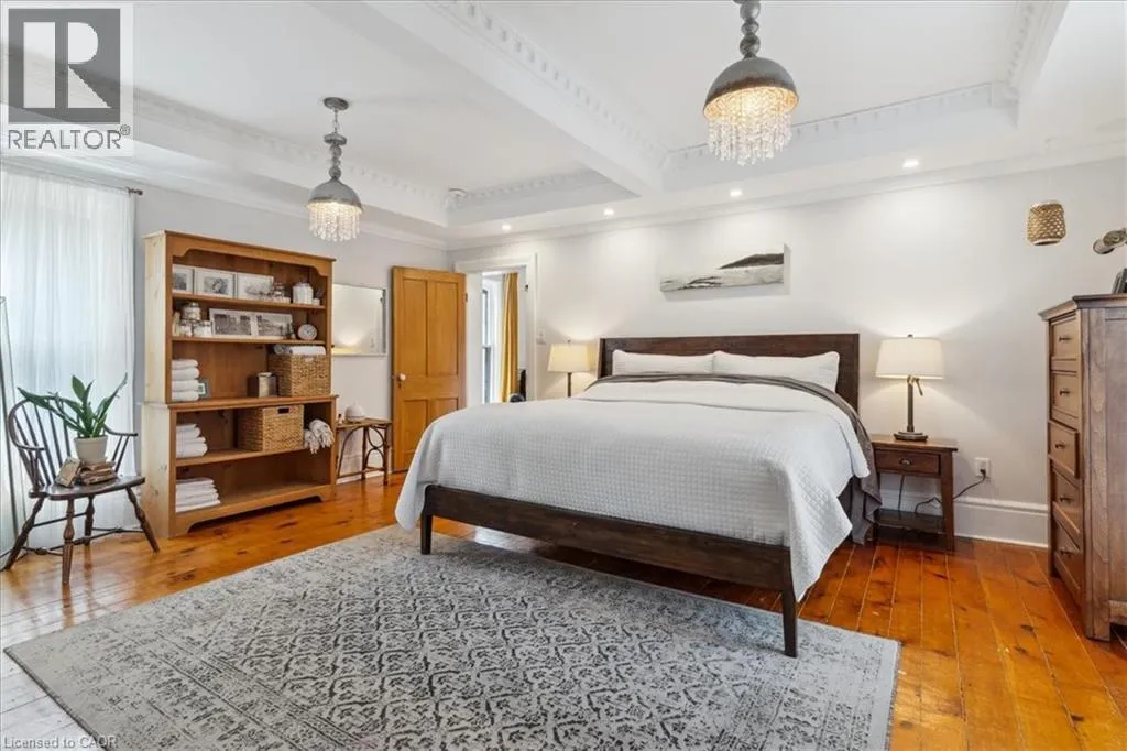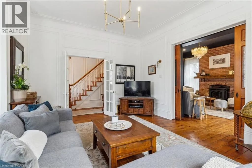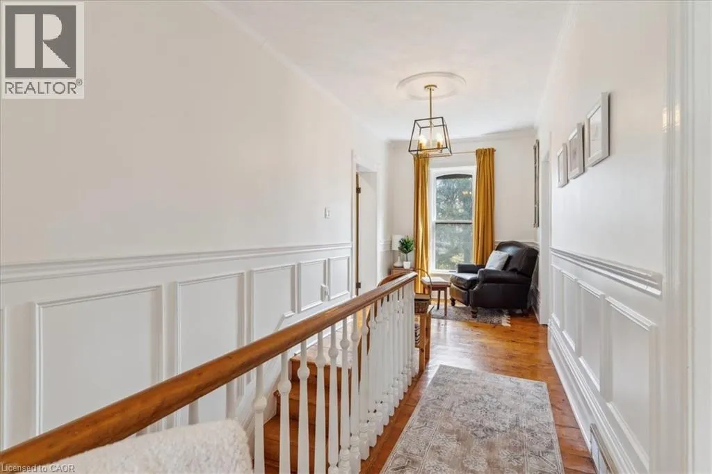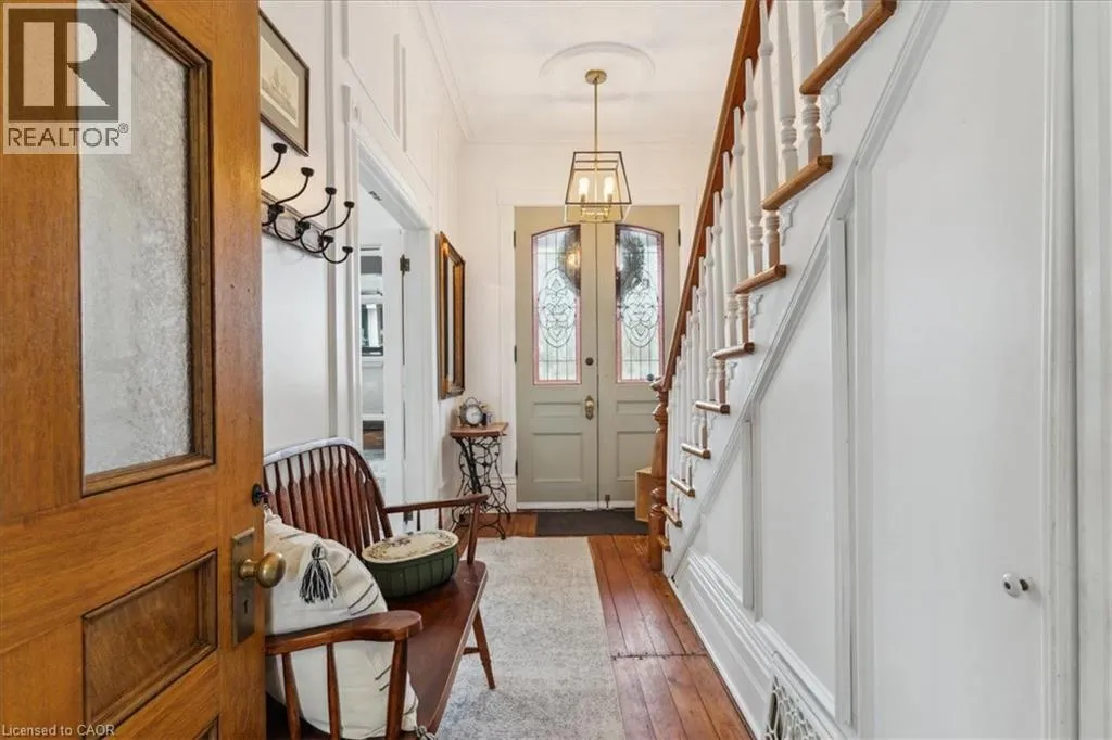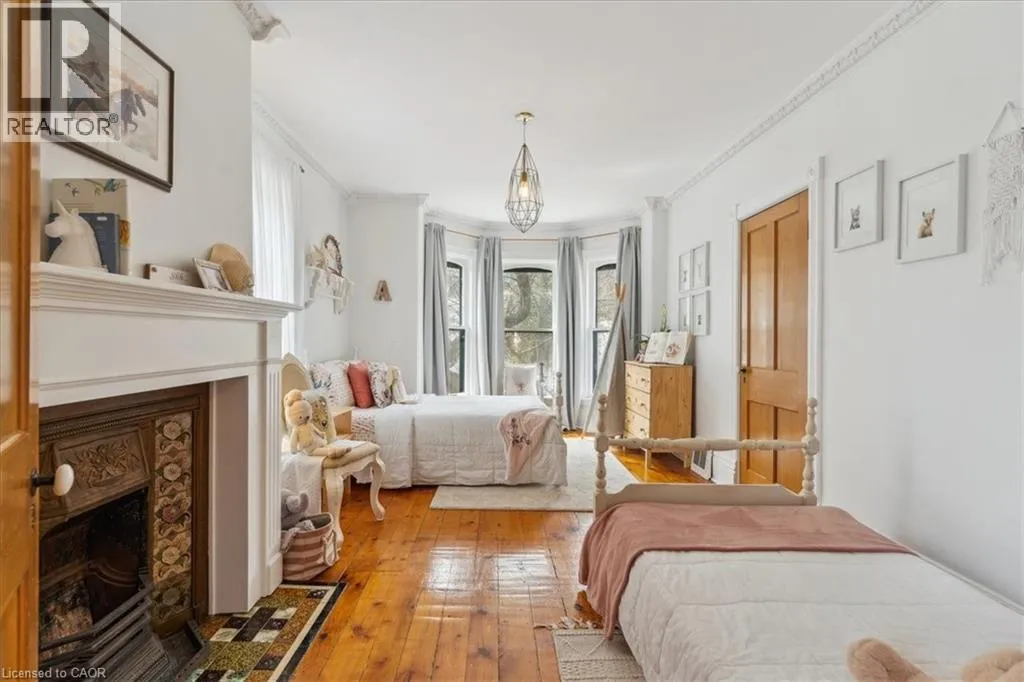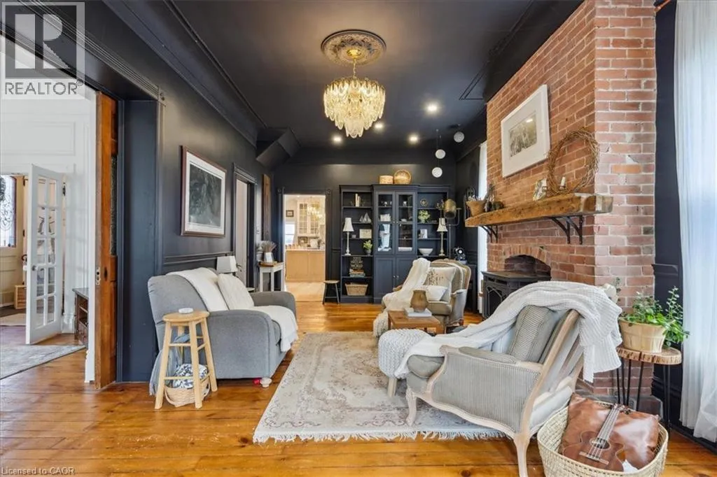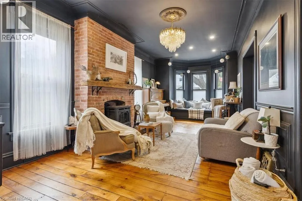 Elm St / Gibson St. The Dolmage House, a historic Grimsby landmark surrounded by mature trees & nature. Built in 1876 by a local businessman for his wife & 3 daughters, this Italianate Victorian home blends timeless charm w/ modern luxury. The original double red brick walls are structurally sound &highly insulating, offering the perfect balance of character & warmth. The new flagstone pathway leads you to this 4-bed, 4-bath home spanning 3644 sq ft of thoughtfully designed space. Enter to a bright living area & an elegant dining room w/ pot lights, chandeliers, a century upright piano & heritage-style gas fireplace. Heart of the home is the remodeled modern farmhouse kitchen, featuring an oversized island, reclaimed barn wood elm floors, GE range oven, Bosch fridge, & Perrin & Rowe English Gold faucet. Adjacent is a mudroom/main-floor laundry w/ heated floors, built-in shelves, & a convenient powder room. Upstairs, the grand primary suite has 5 B/I closets & a 4-pc ensuite w/ a double vanity & curb-less glass shower. 2 oversized bedrooms w/ bay windows and spacious closets offer comfort, 1 of them w/ a Victorian coal fireplace. Third-floor loft retreat includes space for an extra bedroom luxurious 3-pc bathroom w/ a clawfoot tub. Century-old speakeasy wine cellar, featuring wood beams, & a bespoke wood wine rack originally made for a local winery. Outside, enjoy new Arctic Spas wi-fi enabled saltwater hot tub, wrought iron & wood fencing, 2 enclosed yards, & a Muskoka-style fire pit. Refurbished spiral staircase, originally made for the candle coal factory in Grimsby, leads to a rooftop terrace w/ escarpment views. 7-car parking area & room for a garage. Located in a top school district, enjoy immediate access to the Bruce Trail, 40 Mile Creek Pedestrian Bridge, & a public pool across the street. Historic Downtown Grimsby is just a 7-min walk. Updates include a new roof, tankless water heater, upgraded electrical panel, & new storm windows, blending heritage w/ energy efficiency. (id:27476)