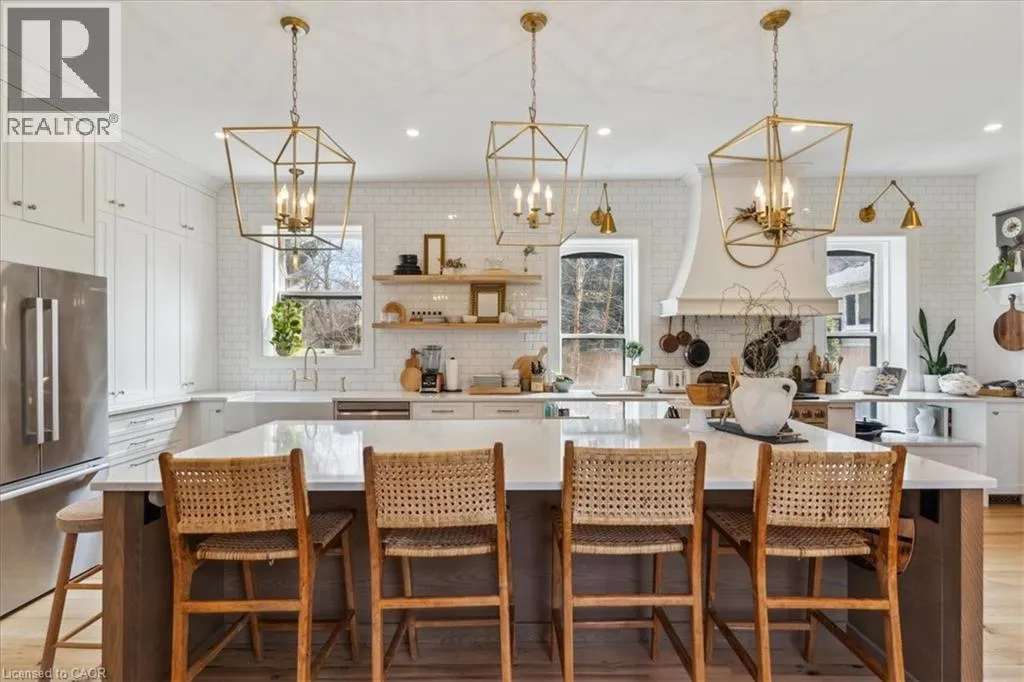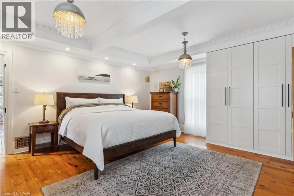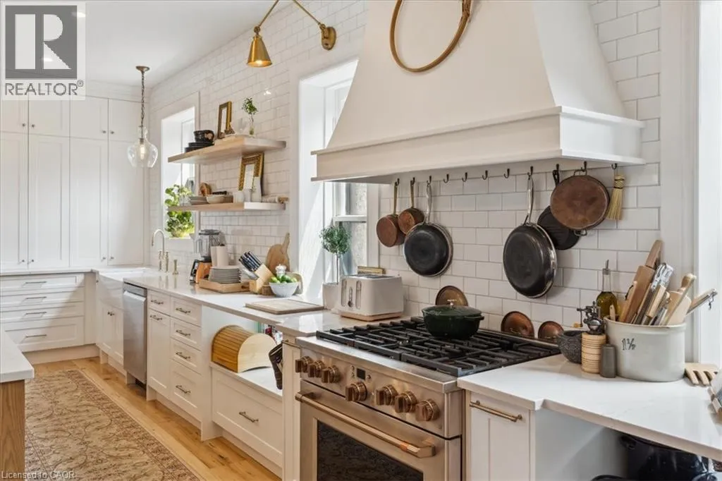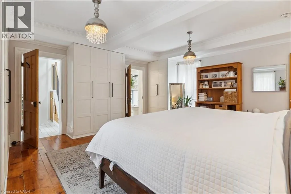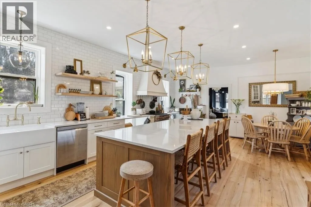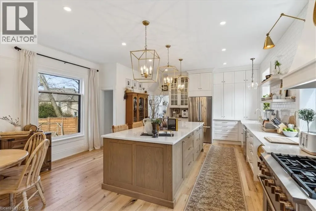 Elm St / Gibson St. The Dolmage House, a historic Grimsby landmark surrounded by mature trees & nature. Built in 1876 by a local businessman for his wife & 3 daughters, this Italianate Victorian home blends timeless charm w/ modern luxury. The original double red brick walls are structurally sound &highly insulating, offering the perfect balance of character & warmth. The new flagstone pathway leads you to this 4-bed, 4-bath home spanning 3644 sq ft of thoughtfully designed space. Enter to a bright living area & an elegant dining room w/ pot lights, chandeliers, a century upright piano & heritage-style gas fireplace. Heart of the home is the remodeled modern farmhouse kitchen, featuring an oversized island, reclaimed barn wood elm floors, GE range oven, Bosch fridge, & Perrin & Rowe English Gold faucet. Adjacent is a mudroom/main-floor laundry w/ heated floors, built-in shelves, & a convenient powder room. Upstairs, the grand primary suite has 5 B/I closets & a 4-pc ensuite w/ a double vanity & curb-less glass shower. 2 oversized bedrooms w/ bay windows and spacious closets offer comfort, 1 of them w/ a Victorian coal fireplace. Third-floor loft retreat includes space for an extra bedroom luxurious 3-pc bathroom w/ a clawfoot tub. Century-old speakeasy wine cellar, featuring wood beams, & a bespoke wood wine rack originally made for a local winery. Outside, enjoy new Arctic Spas wi-fi enabled saltwater hot tub, wrought iron & wood fencing, 2 enclosed yards, & a Muskoka-style fire pit. Refurbished spiral staircase, originally made for the candle coal factory in Grimsby, leads to a rooftop terrace w/ escarpment views. 7-car parking area & room for a garage. Located in a top school district, enjoy immediate access to the Bruce Trail, 40 Mile Creek Pedestrian Bridge, & a public pool across the street. Historic Downtown Grimsby is just a 7-min walk. Updates include a new roof, tankless water heater, upgraded electrical panel, & new storm windows, blending heritage w/ energy efficiency. (id:27476)
