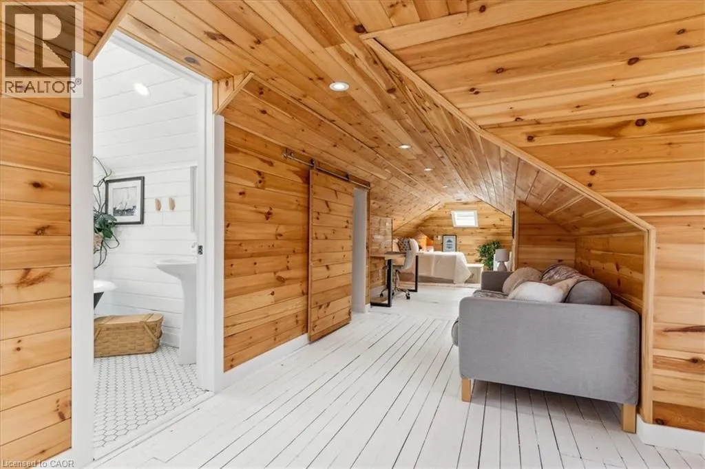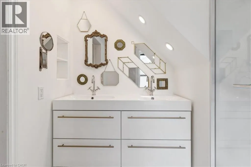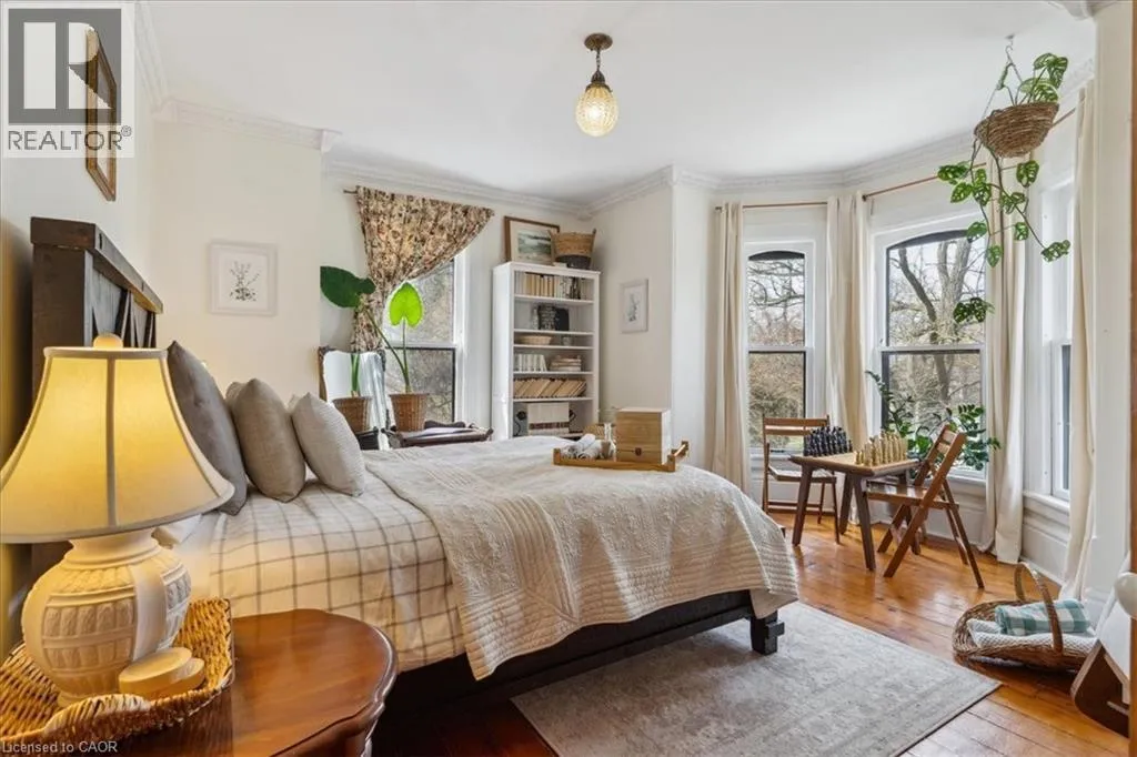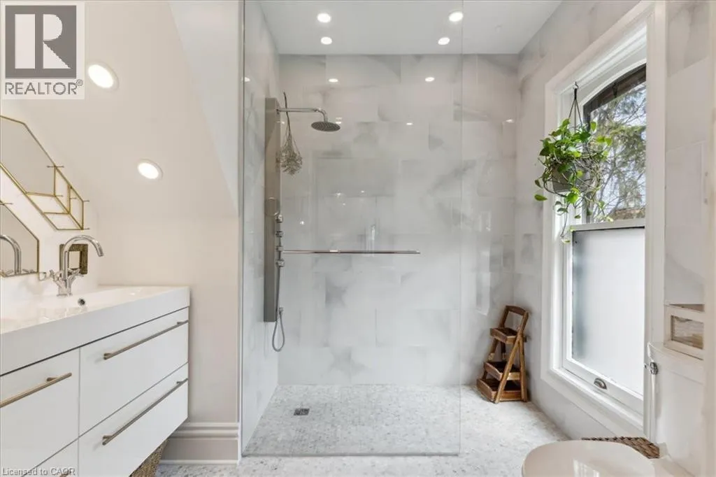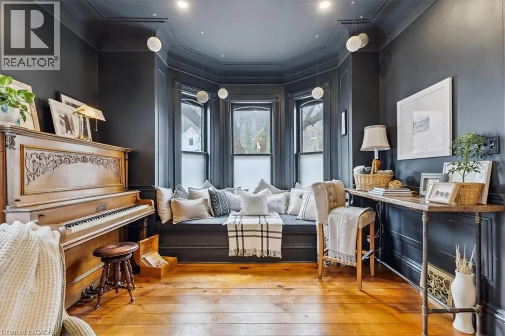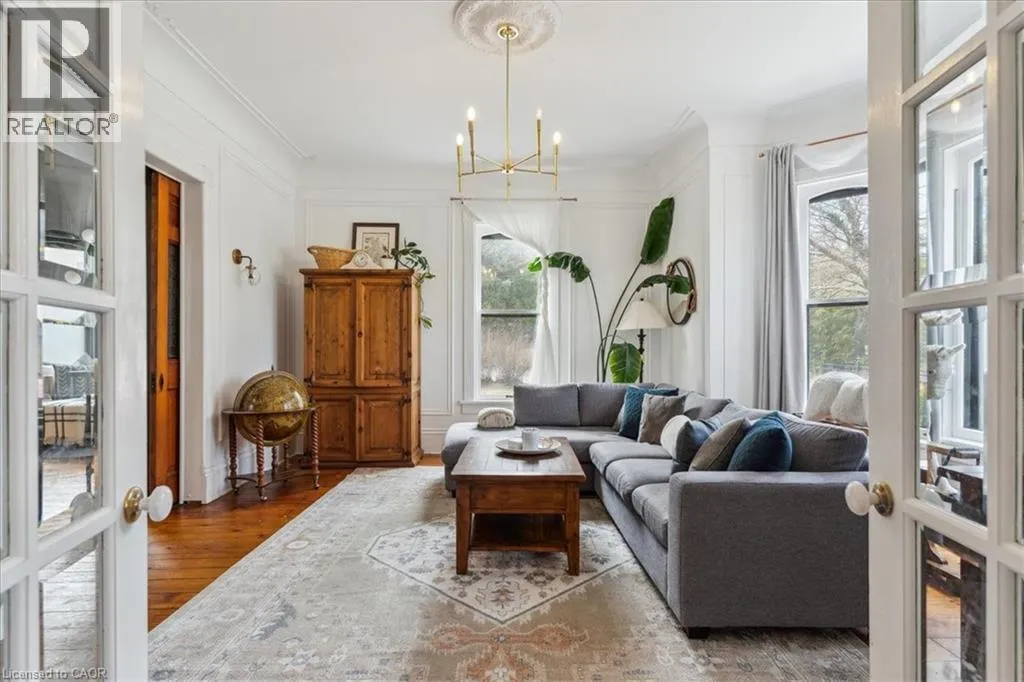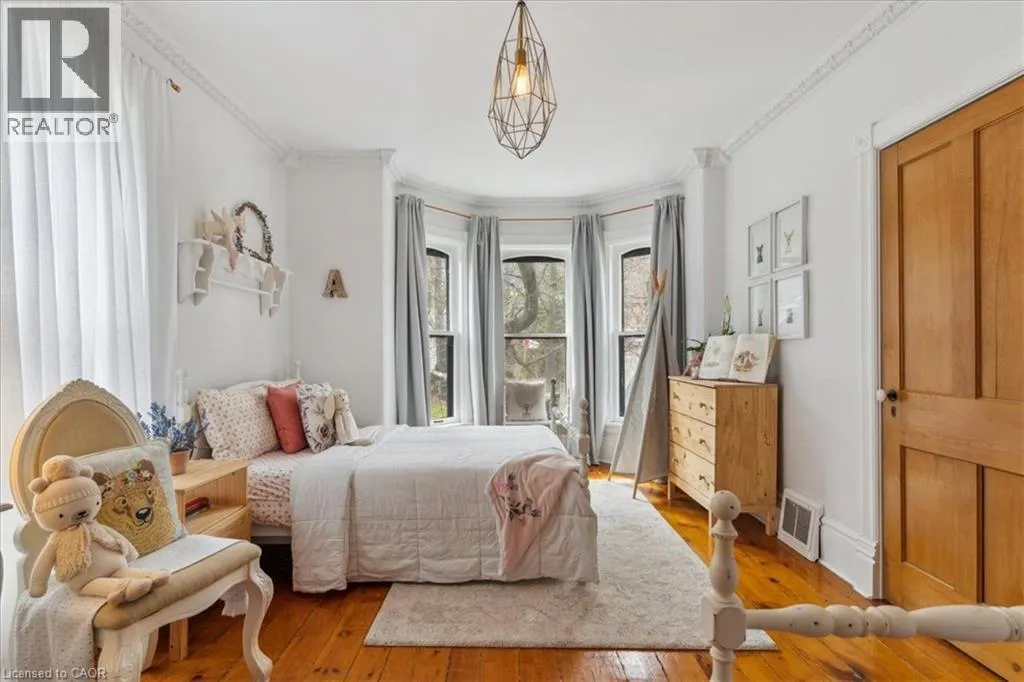 Elm St / Gibson St. The Dolmage House, a historic Grimsby landmark surrounded by mature trees & nature. Built in 1876 by a local businessman for his wife & 3 daughters, this Italianate Victorian home blends timeless charm w/ modern luxury. The original double red brick walls are structurally sound &highly insulating, offering the perfect balance of character & warmth. The new flagstone pathway leads you to this 4-bed, 4-bath home spanning 3644 sq ft of thoughtfully designed space. Enter to a bright living area & an elegant dining room w/ pot lights, chandeliers, a century upright piano & heritage-style gas fireplace. Heart of the home is the remodeled modern farmhouse kitchen, featuring an oversized island, reclaimed barn wood elm floors, GE range oven, Bosch fridge, & Perrin & Rowe English Gold faucet. Adjacent is a mudroom/main-floor laundry w/ heated floors, built-in shelves, & a convenient powder room. Upstairs, the grand primary suite has 5 B/I closets & a 4-pc ensuite w/ a double vanity & curb-less glass shower. 2 oversized bedrooms w/ bay windows and spacious closets offer comfort, 1 of them w/ a Victorian coal fireplace. Third-floor loft retreat includes space for an extra bedroom luxurious 3-pc bathroom w/ a clawfoot tub. Century-old speakeasy wine cellar, featuring wood beams, & a bespoke wood wine rack originally made for a local winery. Outside, enjoy new Arctic Spas wi-fi enabled saltwater hot tub, wrought iron & wood fencing, 2 enclosed yards, & a Muskoka-style fire pit. Refurbished spiral staircase, originally made for the candle coal factory in Grimsby, leads to a rooftop terrace w/ escarpment views. 7-car parking area & room for a garage. Located in a top school district, enjoy immediate access to the Bruce Trail, 40 Mile Creek Pedestrian Bridge, & a public pool across the street. Historic Downtown Grimsby is just a 7-min walk. Updates include a new roof, tankless water heater, upgraded electrical panel, & new storm windows, blending heritage w/ energy efficiency. (id:27476)
