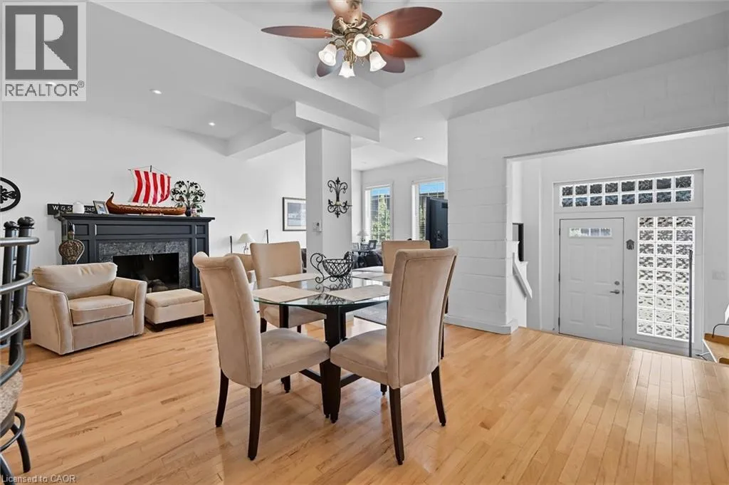 Christie St - east on Clarke St - south on Ontario St Welcome to the largest unit at Carnegie Lofts â a stunning blend of heritage charm and modern design! This one-of-a-kind 1- bedroom (easily divided into multiple rooms), 2-storey loft plus basement, crafted by the highly respected local builder, Phelps Homes, is a true standout and the initial show-home of Carnegie Lofts. From the moment you enter through your private, street-level entrance, you'll be greeted by a spacious 8 x 7 foyerâsomething you won't find in any other unit. The open-concept main floor features soaring 10-foot ceilings, gleaming hardwood floors, and a contemporary kitchen with breakfast bar and pendant lighting, overlooking the living area -perfect for cooking and entertaining. A convenient 2-piece powder room rounds out the space, while large windows flood the area with natural light, highlighting the unique character and warmth throughout. Upstairs, youâll find an oversized loft bedroom -an incredible retreat. Be impressed by the huge 10 x 8 walk-in closet, which was once the buildingâs elevator shaft -it still features the original antique wood elevator doors! The spacious 4-piece ensuite with soaker tub and separate shower, and the tucked-away laundry area make the upper level as functional as it is stylish. Need extra space? There's also a full basement that offers plenty of room for storage and the potential to finish it into a rec room or additional bedrooms. As a resident, youâll have access to a beautifully landscaped courtyard with BBQs and seating -perfect for summer days. Enjoy the ultimate convenience of living just steps from downtown Grimsbyâs shops, restaurants, and parks, with the Lake only a short distance away. Plus, with quick access to the QEW, commuting couldnât be easier. This is your chance to own a truly unique piece of Grimsbyâs history, in the largest unit available at Carnegie Lofts. Donât miss out on this rare gem! (id:27476)