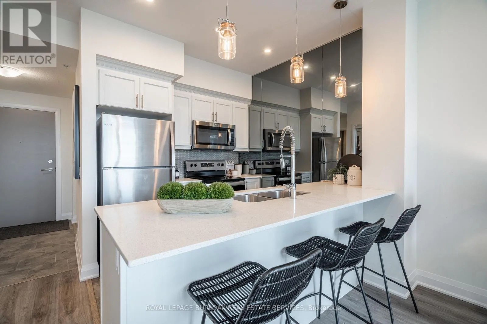 Cross Streets: Winward. ** Directions: QEW to Casablanca to North Service Road. Welcome to 16 Concord Place #426! This beautifully upgraded 1-bedroom + den condo offers over 700 sq. ft. of modern, open-concept living. Enjoy pot lights throughout, stunning lake views, a spacious kitchen and dining area perfect for entertaining, and a generous 3-piece bathroom for added comfort. Ideally situated in the sought-after Grimsby on the Lake community-just steps from waterfront trails, shops, and dining. Don't miss your chance to own this exceptional condo. (id:27476)