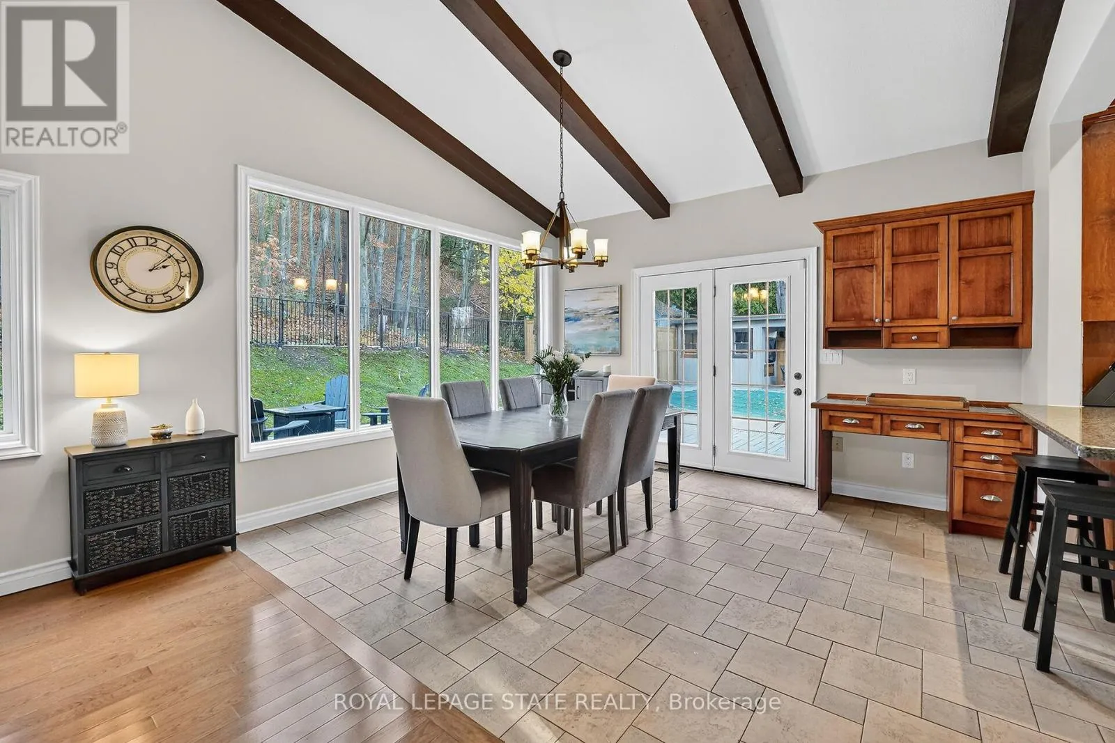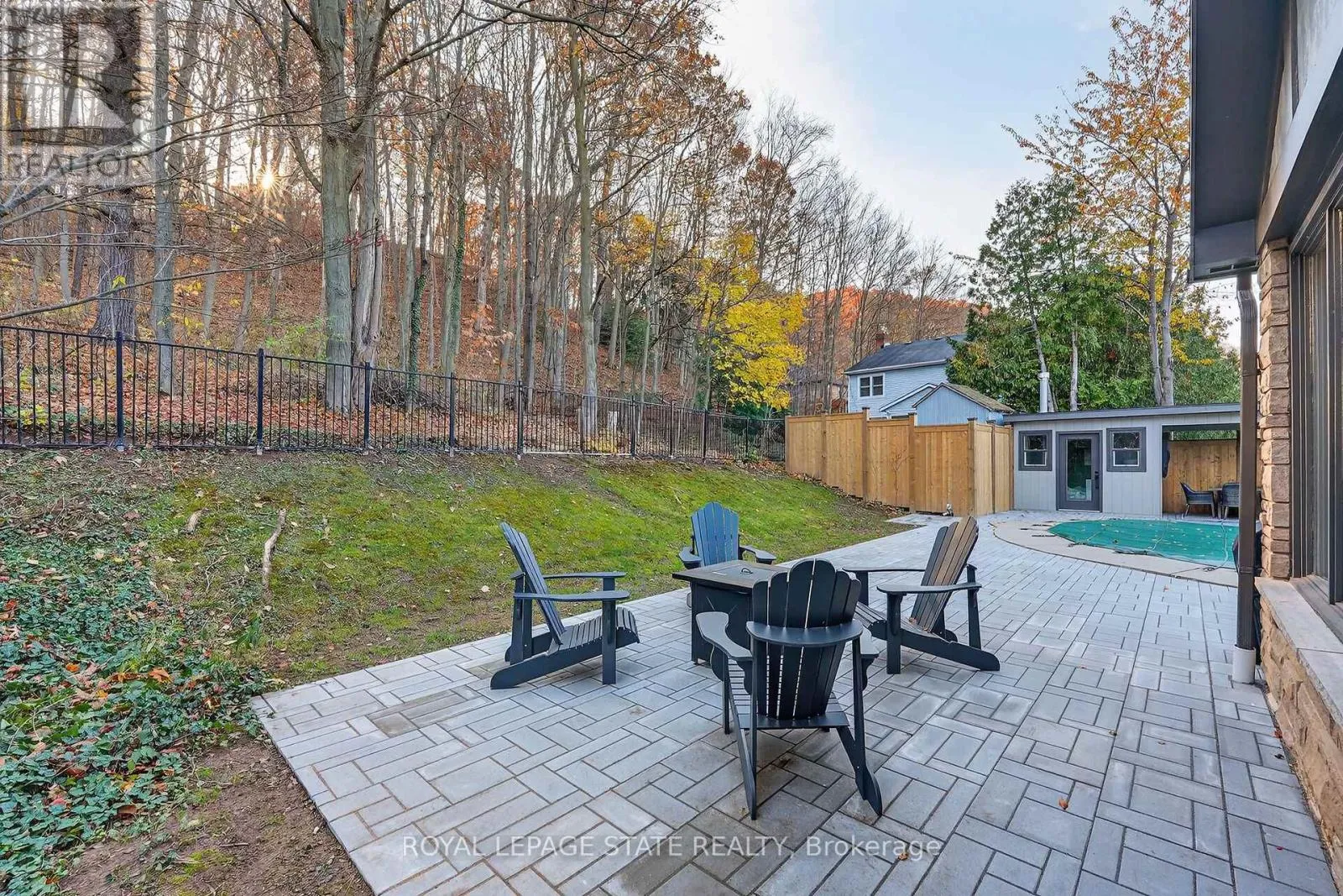 Cross Streets: Main St & Orchard Parkway. ** Directions: Orchard Parkway South, East on Anderson, South on Parkwood Road. Executive Niagara Escarpment Home with Inground Pool & Full In-Law Suite - Located on a quiet cul-de-sac in one of Grimsby's most desirable neighbourhoods and walking distance to downtown, this exceptional home offers over 4,500 sq. ft. of finished space and more than 110' of Escarpment frontage. With an inground pool, stunning natural views, and a fully self-contained in-law suite, this is a rare opportunity. The main floor features a spacious foyer, formal dining and living rooms, a large office overlooking the backyard, and a spectacular Muskoka-inspired family room with wall-to-wall windows, cathedral ceilings, custom built-ins, and a fireplace. The family room flows into the dining area and a well-appointed kitchen with extended-height cabinetry, granite counters, stainless steel appliances, a desk nook, and walk-in pantry. A powder room and laundry with backyard access complete this level. Upstairs, the primary suite offers outstanding Escarpment views, a 5-piece ensuite with soaker tub and glass shower, and a walk-in closet with custom organizers. Three additional bedrooms share a 5-piece bath. The former 3-car garage has been converted into a full in-law suite with open-concept kitchen/living area, 3-piece bath, and bedroom, plus a ventilated storage bay. Through the remaining garage bay is a spacious mudroom leading to the lower level with a rec room, guest area, and 3-piece bath-ideal as a games room, gym, or potential second in-law suite. The backyard, fully nestled into the Niagara Escarpment, offers exceptional privacy with an inground pool, multiple seating areas, gazebo, and a refreshed pool house with covered overhang. A rare blend of luxury, versatility, and natural beauty. (id:27476)