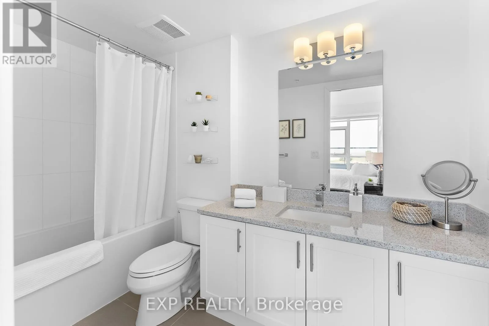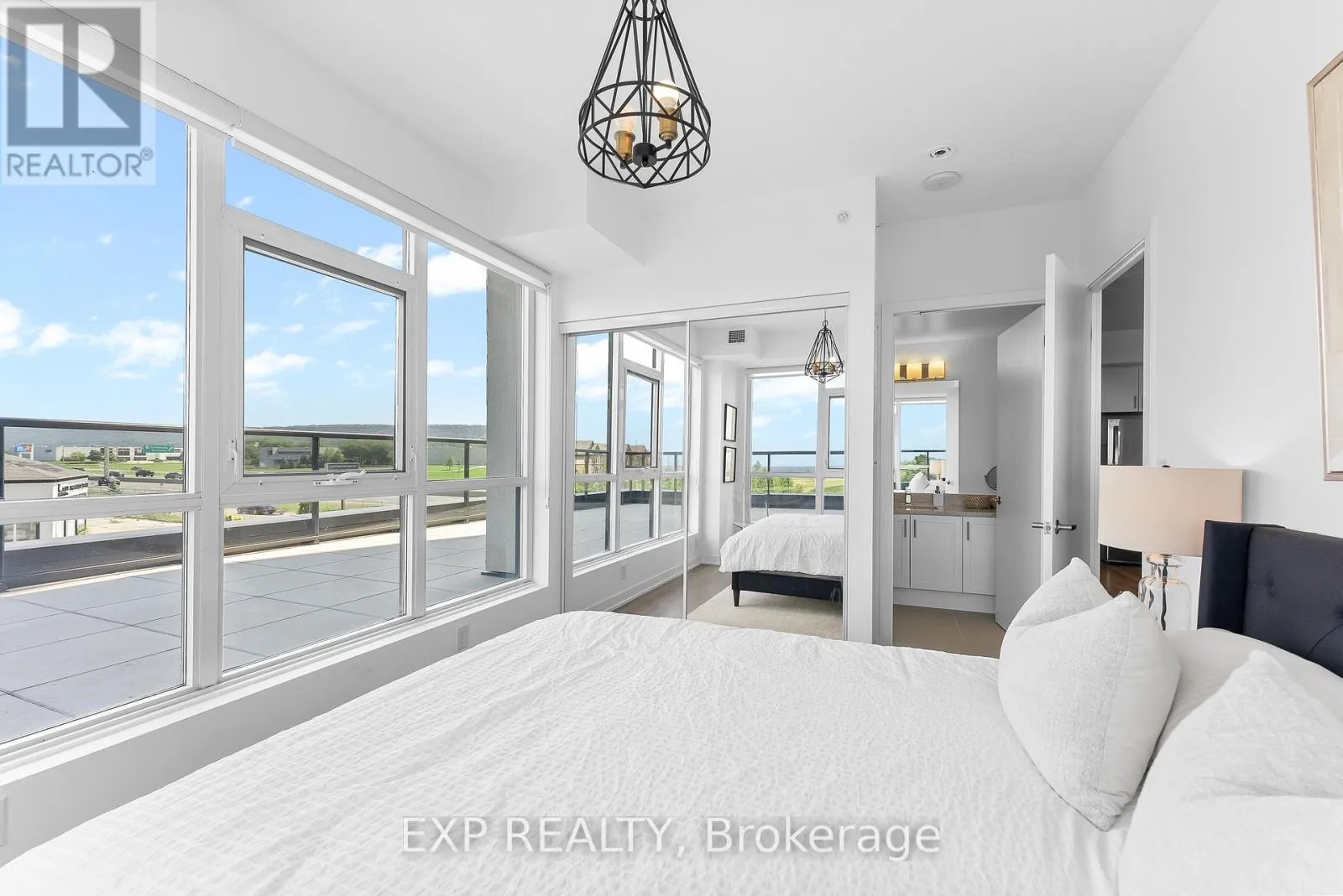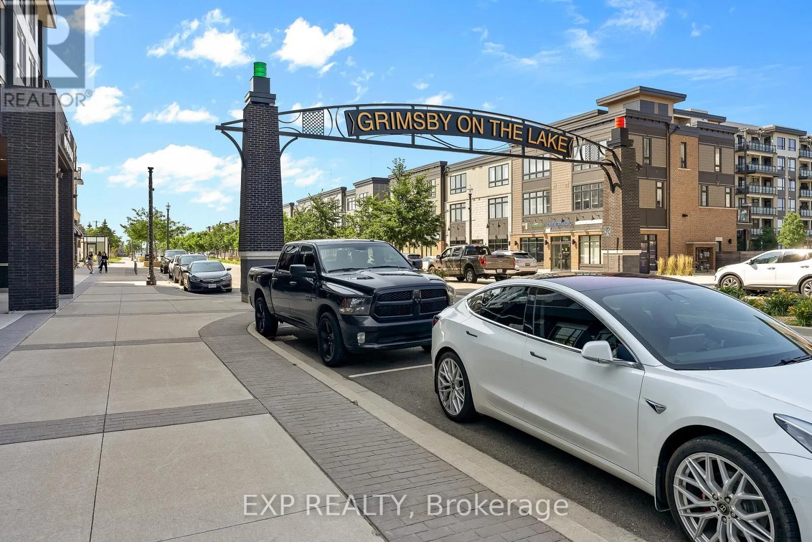 Cross Streets: QEW Niagara to Casablanca Blvd., north on Casablanca Blvd, west on North Service Rd, south on Windward Dr., south west on North Service Rd. ** Directions: Winston to North Service Road. Enjoy stunning views of Lake Ontario, the Toronto skyline and all that surrounds the Greater Golden Horseshoe from your private terrace at this beautiful 2 bedroom, 2 bathroom condo. Located steps to the heart of Grimsby on the lake close to all local shopping, major amenities and direct highway access, this suite is a commuters dream and perfect for retirees looking to downsize or anyone looking for convenient maintenance free living. This open layout combined with private terrace is an entertainers dream with no shortage of possibilities for the outside space. The interior space features laminate floors throughout, 9-foot ceilings, quartz counters, separate laundry/storage room and a bonus den space for a home office or media room. Naturally lit with terrace level floor to ceiling windows in each bedroom with the primary offering panoramic lake and escarpment views, this is an ideal space for living without sacrificing comfort. Featuring fantastic building amenities such as rooftop patio, gym, billiards room, private storage locker and underground parking. (id:27476)