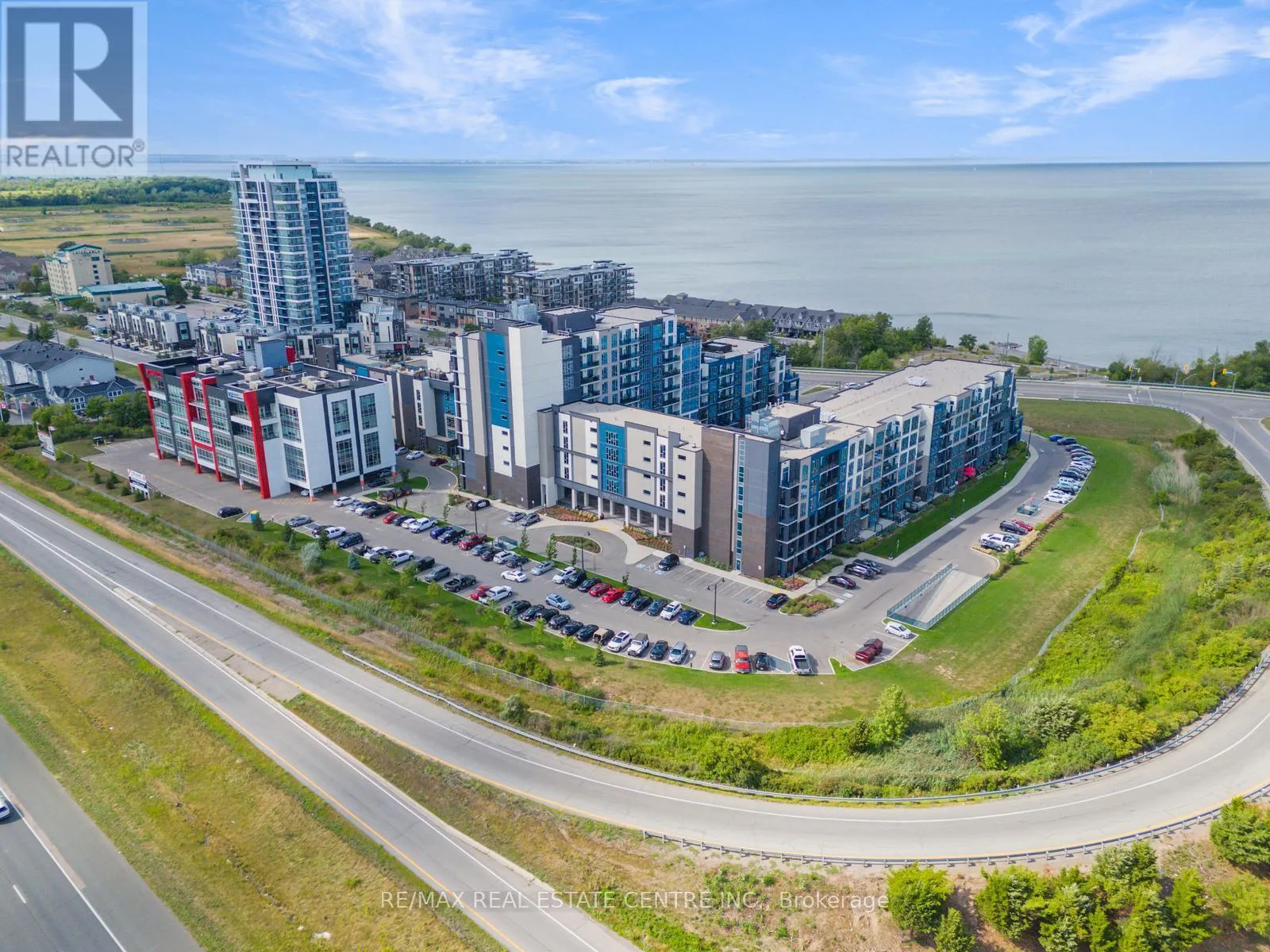 Casablanca QEW Exit/North Service Welcome to Aquazul-Resort-Style Living in Grimsby-on-the-Lake!Discover this bright and spacious 1-bedroom + den suite in the highly sought-after Aquazul Condominiums. Designed with comfort and modern living in mind, this home features 9 ft ceilings, floor-to-ceiling windows, and an open-concept layout that fills the space with natural light. The stylish kitchen boasts stainless steel appliances, elegant backsplash, upgraded cabinetry, and a breakfast bar, seamlessly flowing into the living and dining area-ideal for entertaining or relaxing. The primary bedroom includes a large walk-in closet, while the versatile den is perfect for a home office or guest space. Additional conveniences include in-suite laundry and high-end finishes throughout.Enjoy resort-inspired amenities including an outdoor heated pool with cabanas and BBQ stations, fully equipped fitness centre, rooftop terrace, modern party/club room, billiards and games room, and media lounge. The building also offers secure underground parking, a storage locker, EV charging stations, and beautifully landscaped grounds.Steps from cafés, restaurants, lakeside trails, and Casablanca Beach, and just minutes to the QEW & Grimsby GO, this location provides the perfect balance of convenience and lifestyle.Don't miss your chance to enjoy the best of Grimsby-on-the-Lake living - book your showing today! (id:27476)