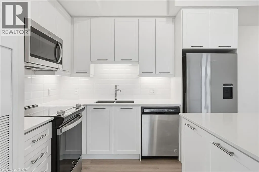 QEW to Casablanca Blvd, South to North Service Rd, West to Winston Rd Experience stylish condo living in this stunning 2-bedroom, 2-bathroom condo located in the highly desirable, up-and-coming Grimsby Beach community. This bright and spacious unit offers a modern open-concept layout featuring beautiful light flooring, quartz countertops, stainless steel appliances, and large sun-filled windows that illuminate every corner of the unit, enhancing its airy, open feel. Enjoy the convenience of in-suite laundry and the luxury of two full balconies, perfect for morning coffee, evening relaxation, or taking in the surrounding views. The primary bedroom boasts its own private ensuite, creating a perfect retreat with added comfort and privacy. Residents will love the exceptional building amenities, including front desk concierge, a well-equipped fitness center, an elegant party room, and a rooftop entertainment terrace with stunning lake views. A personal storage locker and one parking space are also included for your convenience. Live steps from the lake, trails, shops, and everything Grimsbyâs vibrant waterfront has to offer. This is lakeside living at its finestâmodern, convenient, and truly inviting. Book your showing today! (id:27476)