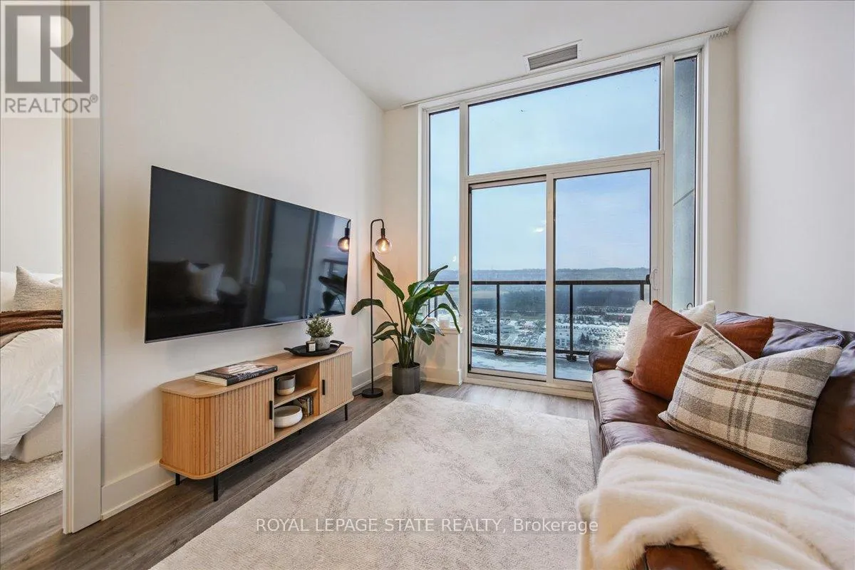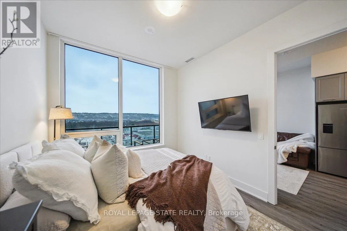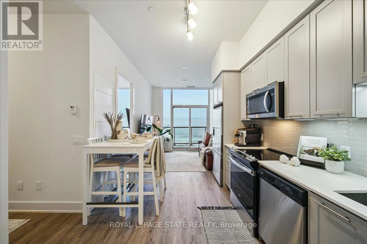 Cross Streets: Casablanca. ** Directions: From 403, exit at Casablanca, East on North Service Road (which turns into Winston Rd). Bright, modern, effortless living with views that will take your breath away. Experience elevated lakefront living at #1901-385 Winston Road, a bright and beautifully finished 1(+ den) condo set high above Grimsby's waterfront community. This impressive top floor suite with 10 ft. ceilings is surrounded by natural beauty with Lake Ontario glistening to the north of the building and the Niagara Escarpment rising to the south, providing breathtaking views . Step inside and immediately feel the openness created by expansive windows featuring southern exposure giving an abundance of natural light. The modern kitchen flows seamlessly into the living space, creating the ideal layout for relaxing, hosting, or working from home. The versatile den is perfect as a home office, guest space, fitness nook, or storage zone, giving you flexibility that adapts to your lifestyle. Convenience comes built-in with in-suite laundry, private locker and TWO underground parking spots, a rare and valuable perk in condo living. Professionally maintained and showing A++, this home is move-in ready and truly stands out. Situated in the heart of Grimsby-on-the-Lake, you'll step outside to scenic waterfront trails, boutique shops, cafés, dining, and quick access to the QEW for effortless commuting. (id:27476)