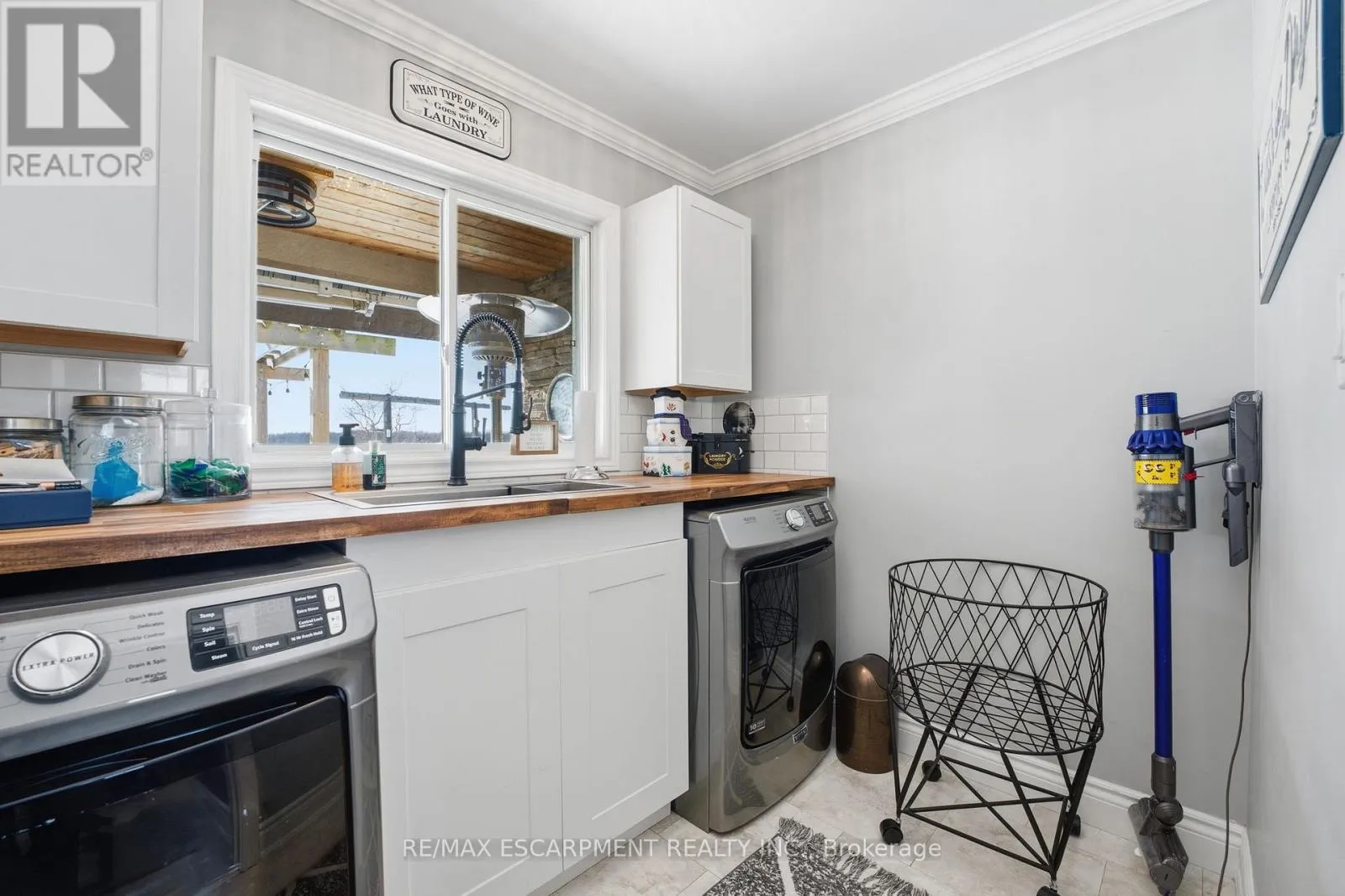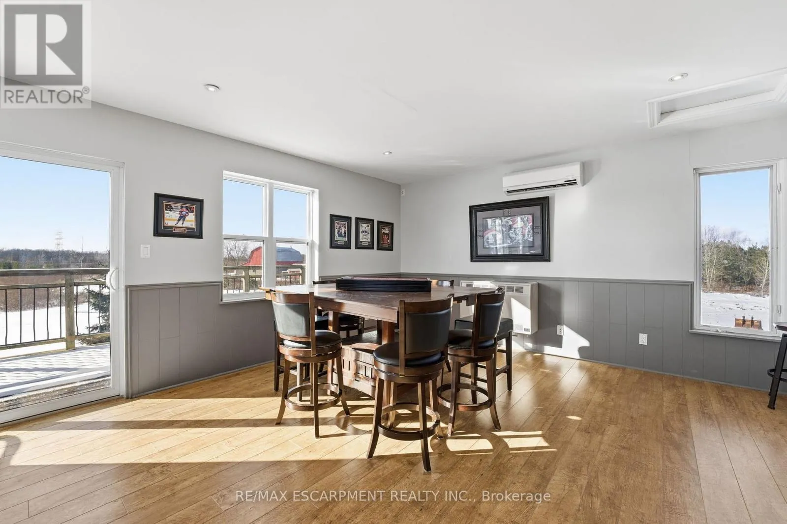 Thirty Road and Young Street Set on nearly 20 acres with dramatic front and rear views, this custom-built 2,190 sq. ft. Cape Cod-style home offers the perfect blend of space, craftsmanship, and country living just minutes from Smithville and Grimsby. The main floor features a welcoming foyer with hardwood floors and oak staircase, a luxurious kitchen with granite counters, dark maple cabinetry, double pantry, breakfast island and eat-in area, a sunken family room with gas fireplace, separate living/dining room with bay window, private den with French doors, oversized laundry/mudroom, and a 2-piece bath with granite counter. Upstairs offers three bedrooms including a primary suite with vaulted ceiling, walk-in closet, and 4-piece ensuite with whirlpool tub and separate shower. The finished lower level includes a gym, fourth bedroom, rough-in for bath, and ample storage. Outdoor highlights include an interlock walkway, multi-level cedar deck with flower boxes and pool deck. Completing the property are a double attached garage and a separate two-storey double garage with workshop and finished upper-level office or games room, its own heating and A/C, and walkout to a deck-an exceptional rural retreat with unmatched versatility. (id:27476)