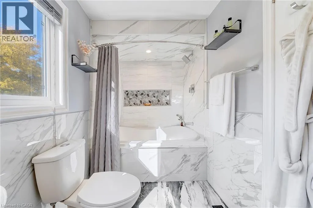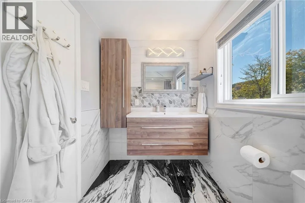 Baker Road South to Hedge Lawn Drive to Pleasant Grove Terrace Welcome to 22 Pleasant Grove Terrace, Grimsby - The Perfect Family Home with Escarpment Views! Get ready to fall in love with this move-in-ready 3-bedroom, 2-bath gem nestled in one of Grimsby's most family-friendly neighbourhoods! From the moment you arrive, the concrete driveway, updated front entrance, and attached single garage with parking for three vehicles set the stage for a home that's been beautifully maintained and thoughtfully upgraded. Step inside to find a bright, stylish, and functional layout ideal for everyday living. The updated kitchen features modern finishes and a clean, open design that flows effortlessly into the dining and living spaces - perfect for family meals or entertaining guests. Main floors have been tastefully updated, giving the home a fresh, contemporary feel throughout. Upstairs, you'll find three spacious bedrooms and an updated main bath, offering comfort and style for every member of the family. The partially finished basement provides additional flexible space - perfect for a home office, gym, or playroom - plus convenient laundry and storage options. Step out back to your fully fenced yard and unwind in your private outdoor oasis! Enjoy a concrete patio, metal pergola, garden shed, and a relaxing hot tub - the perfect setting for quiet nights under the stars or weekend gatherings with friends. Whether you're entertaining or simply recharging, this backyard delivers the ultimate blend of comfort and style. Major updates include the roof, AC, most windows, main bath, front door, and flooring, giving you peace of mind and years of easy living ahead. This home truly checks all the boxes - modern, functional, and move-in ready - and is available for a quick closing, just in time for the holidays! Located close to parks, schools, hospital, and shopping, and offering quick QEW access, you'll enjoy the perfect balance of convenience and community. Plus, those beautiful escarpment views are the cherry on top. (id:27476)