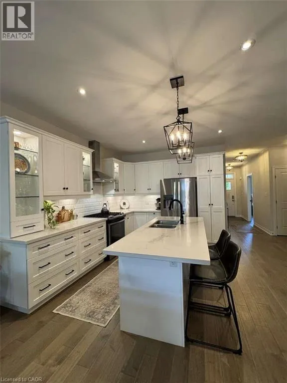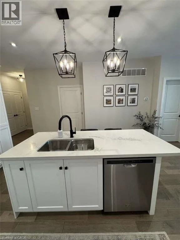 QEW and Bartlett Exit. Off Central Ave. For more info on this property, please click the Brochure button. Welcome to this almost new, rarely offered bungalow in a quiet subdivision location situated between the lake and wine country with quick access to the QEW. Perfect for the down-sizer, professionals, and those starting out. This home offers 2 bedrooms, 1.5 bathrooms, main floor laundry and 9ft ceilings throughout as well as upgraded engineered hardwood flooring throughout. Step into the open-concept main living area with upgraded recessed lighting throughout the kitchen and living room. The kitchen features several upgrades, including a custom design, upgraded luxurious quartz countertops, a stylish undermount double sink with an updated faucet, a subway tile backsplash, a custom oversized island, beautiful upgraded pendant lighting, glass cabinets with built in cabinet lighting and under cabinet lighting. The open concept and kitchen design is perfect for cooking and entertaining. The bright and inviting living room leads seamlessly to your exposed deck with a beautiful and private tree lined view and interlock lower patio creating a perfect space to enjoy and relax. Retreat to the cozy and sun-filled primary bedroom, a walk-in closet, and a 5-piece ensuite featuring a double under mount sink vanity and upgraded quartz countertop, upgraded faucets/accessories as well as a stunning upgraded tile in the shower. The unfinished basement offers a perfect blank slate to make it your own! Additional upgrades and features include quartz countertops in both bathrooms, upgraded lighting throughout, modern glass doors to the laundry area, upgraded door hardware, stylish pot lights in the kitchen, dining and living room, upgraded flooring throughout, central vac, updated back deck. Pets are allowed! Do not miss out on this beauty! (id:27476)