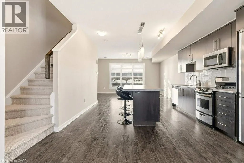 North Service Rd & Winston Rd Welcome to the vibrant Grimsby on the Lake community. This bright 2 bedroom townhome is just steps to endless amenities, accommodating to all lifestyles. The generously sized & functional design flows throughout each level. The main floor living space is ideal for retreat & relaxation, or entertaining throughout the open concept layout. Dine in at the kitchen island or roomy dining space just off of the open balcony. The upstairs is highlighted by the large primary retreat with an ensuite, same level laundry, and a second bedroom & bathroom fit for family, guests, or double as a private home office. The exclusive use parking space is directly in front of the private entrance, and the common elements are covered with year-round upkeep that provides a low maintenance lifestyle for families, retirees, and investors alike. Steps to all of the restaurants, shopping, amenities, and waterfront trails the community has to offer. Schools, parks, public transit, and major highway access all within minutes. (id:27476)