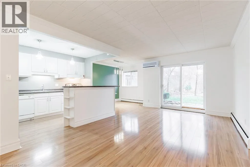 Main St E to Ontario St to Robinson St N. BEST LOCATION IN THE BUILDING! Discover the perfect blend of tranquility and convenience in this beautifully maintained main-floor 2-bedroom condo, ideally positioned with serene views of mature trees, a gentle creek, and your own private garden patio â perfect for morning coffee or an evening unwind. Peaceful, picturesque, and wonderfully quiet â a rare find in the heart of Grimsby. Enjoy the ease of having your dedicated parking spot just steps from your patio doors, making everyday living effortlessly simple. Bright interior with open-concept living, dining, and kitchen featuring laminate flooring throughout and updated cabinets. All appliances included. Living Room opens to the tranquil patio. In-suite laundry with washer/dryer. Updated 4-pc bath. Brand new A/C. Spacious primary bedroom plus versatile 2nd bedroom or office. Move-in ready with no disappointments. Maintenance fees include: Exterior maintenance, water, heat, hydro, basic cable TV, high-speed internet and parking. (id:27476)