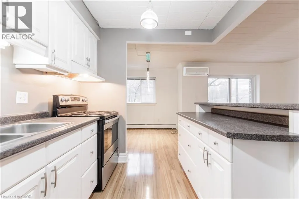 Main St E to Ontario St to Robinson St N. BEST LOCATION IN THE BUILDING! Discover the perfect blend of tranquility and convenience in this beautifully maintained main-floor 2-bedroom condo, ideally positioned with serene views of mature trees, a gentle creek, and your own private garden patio â perfect for morning coffee or an evening unwind. Peaceful, picturesque, and wonderfully quiet â a rare find in the heart of Grimsby. Enjoy the ease of having your dedicated parking spot just steps from your patio doors, making everyday living effortlessly simple. Bright interior with open-concept living, dining, and kitchen featuring laminate flooring throughout and updated cabinets. All appliances included. Living Room opens to the tranquil patio. In-suite laundry with washer/dryer. Updated 4-pc bath. Brand new A/C. Spacious primary bedroom plus versatile 2nd bedroom or office. (id:27476)