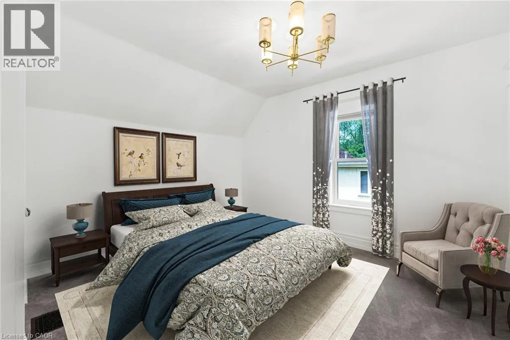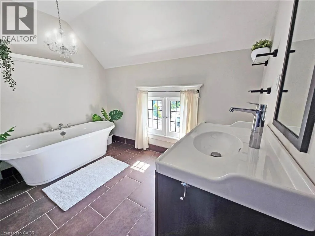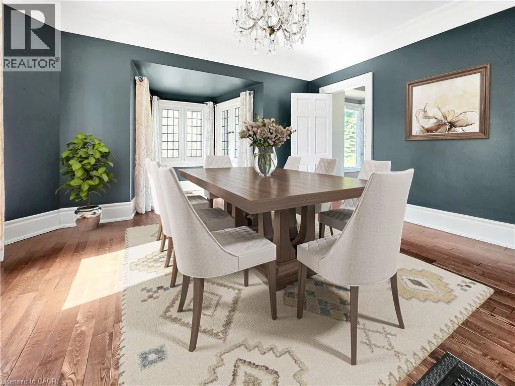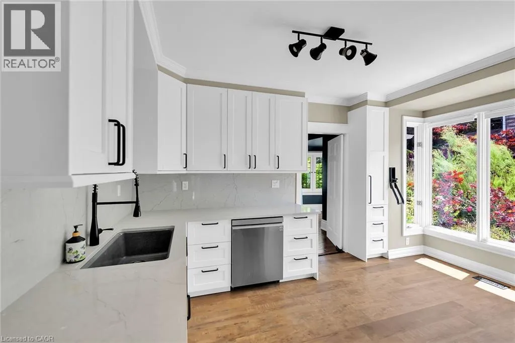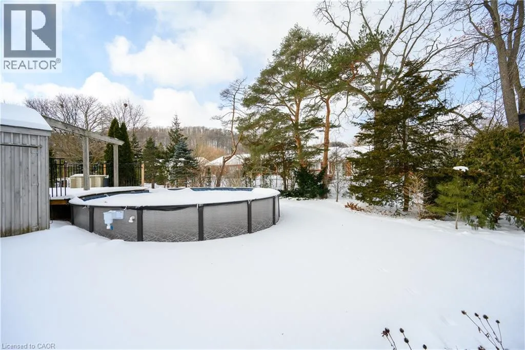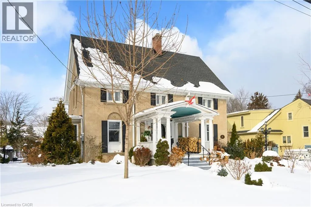 QEW, EXIT AND SOUTH ON MAPLE AVE, RIGHT ON MAIN ST E, LEFT ON ROBINSON ST S STATELY 2 1/2 STORY GEORGIAN STYLE DESIGNATED HISTORICAL HOME. Built in 1905, known as the Helen Gibson House. Located on large property in the heart of the downtown core on quiet tree-lined street below the escarpment among other character homes. Beautifully updated throughout! The front of this home is graced by the impressive neo-classical vaulted portico with pillars. Spacious foyer opens to large family room with newly installed wood burning fireplace insert in 2023 and oversized leaded glass bay window to bring in the light. Formal dining room with leaded glass windows overlooking the gardens. New kitchen installed in 2023. Main floor laundry, 2PC bath, main floor den/office with wall-to-wall bookcases. Double sliding doors lead to deck, patios & backyard oasis complete with pool & gazebo. Open staircase to upper-level leads to primary bedroom with walk-in closet & ensuite bath. Two additional bedrooms & bath. Second staircase leads to attic (764 square foot space) great potential to create extra living space. OTHER FEATURES INCLUDE: hardwood floors, new roof shingles 2018, new above ground pool 2024, new hot tub 2024, stainless steel appliances in kitchen, washer/dryer, 2 1/2 baths, 200 amp service. Heat pump, A/C & new on-demand water heater (owned) 2023. Long interlock double driveway (fits 4 cars), EV charger, walkway & patios. Two garden sheds. Perfectly situated a block from the downtown core and a short stroll to the Bruce trail & park. This heritage home is surrounded by its award-winning gardens. Calling all historians: It will take only one visit for you to fall in love with this rare offering! (id:27476)