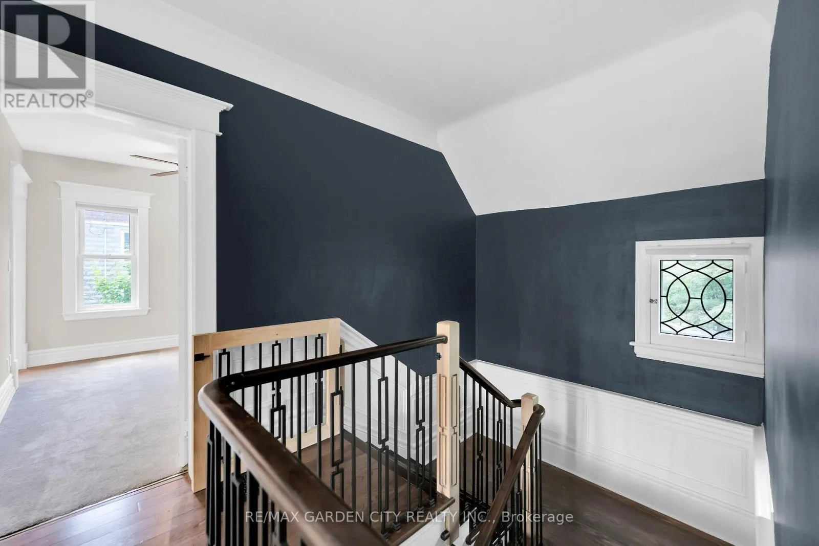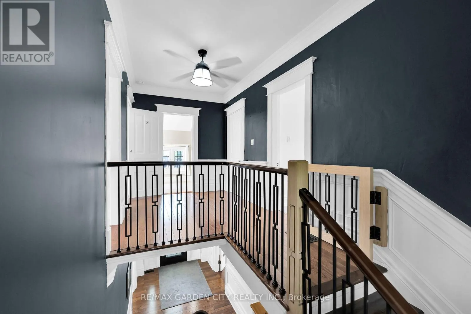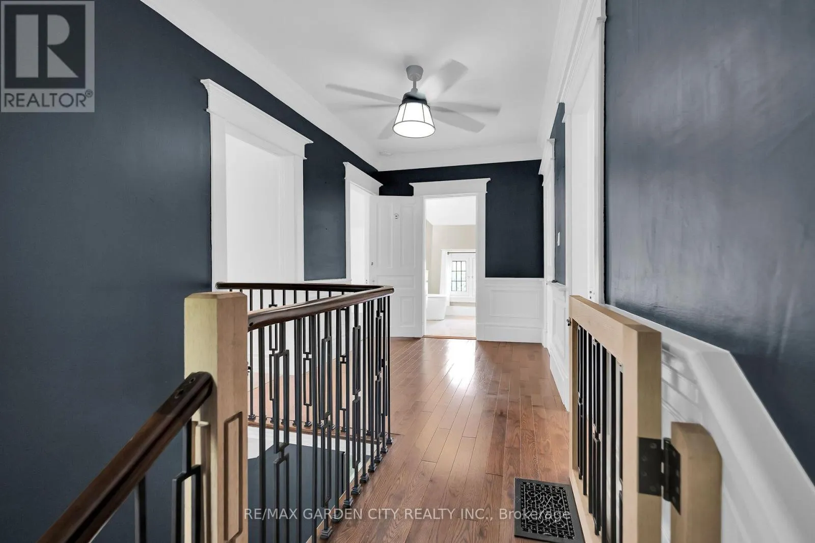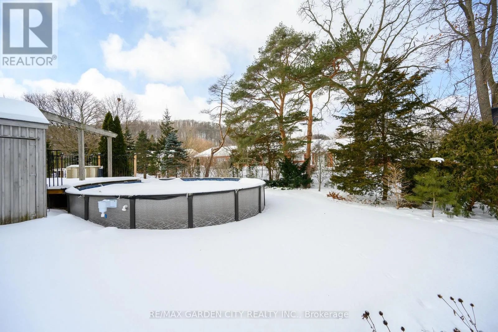 Cross Streets: MAIN ST E. ** Directions: QEW, EXIT AND SOUTH ON MAPLE AVE, RIGHT ON MAIN ST E, LEFT ON ROBINSON ST S. STATELY 2 1/2 STORY GEORGIAN STYLE DESIGNATED HISTORICAL HOME. Built in 1905, known as the Helen Gibson House. Located on large property in the heart of the downtown core on quiet tree-lined street below the escarpment among other character homes. Beautifully updated throughout! The front of this home is graced by the impressive neo-classical vaulted portico with pillars. Spacious foyer opens to large family room with newly installed wood burning fireplace insert in 2023 and oversized leaded glass bay window to bring in the light. Formal dining room with leaded glass windows overlooking the gardens. New kitchen installed in 2023. Main floor laundry, 2PC bath, main floor den/office with wall-to-wall bookcases. Double sliding doors lead to deck, patios & backyard oasis complete with pool & gazebo. Open staircase to upper-level leads to primary bedroom with walk-in closet & ensuite bath. Two additional bedrooms & bath. Second staircase leads to attic (764 square foot space) great potential to create extra living space. OTHER FEATURES INCLUDE: hardwood floors, new roof shingles 2018, new above ground pool 2024, new hot tub 2024, stainless steel appliances in kitchen, washer/dryer, 2 1/2 baths, 200 amp service. Heat pump, A/C & new on-demand water heater (owned) 2023. Long interlock double driveway (fits 4 cars), EV charger, walkway & patios. Two garden sheds. Perfectly situated a block from the downtown core and a short stroll to the Bruce trail & park. This heritage home is surrounded by its award-winning gardens. Calling all historians: It will take only one visit for you to fall in love with this rare offering! (id:27476)
