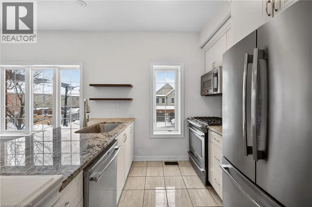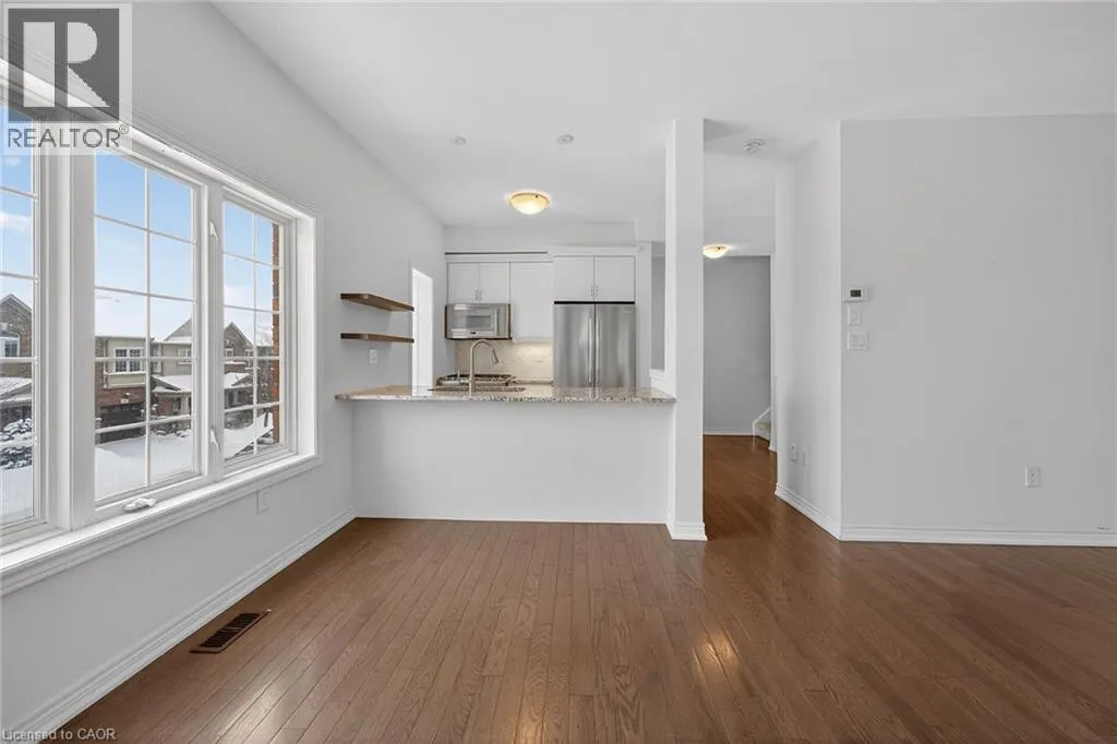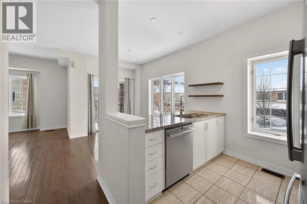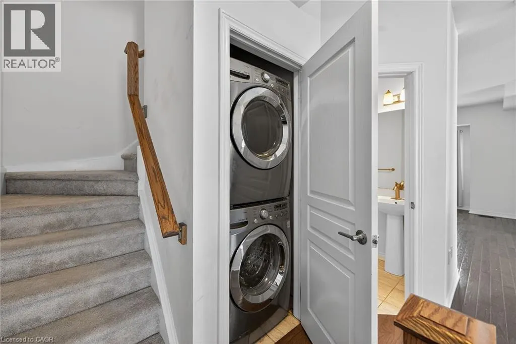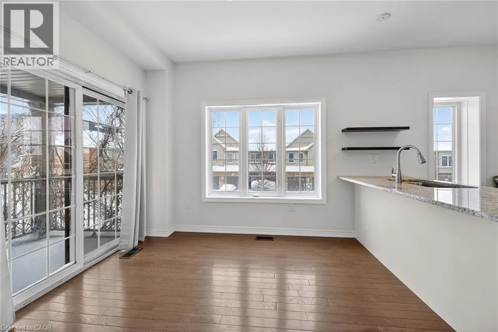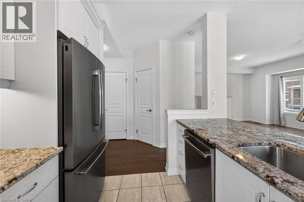 North Service Rd to Winston Rd Fantastic opportunity to live by the lake! This modern freehold townhouse offers 3 bedrooms and 1.5 bathroom rooms with approximately 1409 sqft of well-designed living space. Enjoy a bright, open concept layout, contemporary finishes, and low maintenance living in a desirable lakeside community. Patio doors from both the lower family room and main living room lead to a private patio, perfect for outdoor enjoyment. Features include hardwood flooring on the second level, laundry conveniently located off the kitchen, and a functional breakfast bar ideal for casual dining. Perfect for families, first-time buyers, or investors seeking comfort and convenience in a great location. Conveniently located close to all amenities with easy highway access. No Representations or Warranties are made of any kind. Rental equipment, parking fees, and other fees are unknown. RSA. (id:27476)