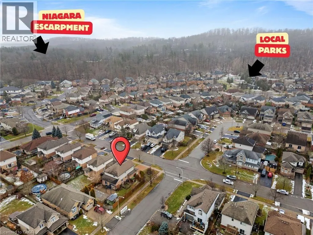 QEW exit at Bartlett, turn right on Main, left on Dorchester, right on Udell Way A turn key, almost 2400 sq ft finished space home in the prestigious Dorchester Estates is ready for you! Offering 4 bathrooms (new (2025) and renovated (2022), 3 generous bedrooms (two with walk-in closets), 2 laundry rooms and an in-ground heated pool. This home is an oasis for your family and guests. Very bright and clean. No carpet! Modern white kitchen with marble backsplash, stainless steel appliances, plenty of storage and counter top space. Set on a private lot with stunning views of the Escarpment from all sides, mature perennial gardens and an in-ground sprinkler system. The home blends elegance with ease. The home is an entertainer's delight with a 14x28 ft in ground heated pool surrounded by mature trees, expansive and easy to maintain perennial gardens offering you exceptional privacy. The concrete driveway accommodates up to 4 cars, plenty of free street parking. Generous pool deck with interlocking, and 4 areas of outdoor living. Gazebo and Pergola are included. Other major updates include new pool equipment (pump 2025 and furnace 2024). Some rooms freshly painted (2026). Large and bright finished lower level with a new bathroom, laundry, gas fireplace; easy to convert into one bedroom with family room. This home has strong potential for an in-law or as an income generating suite. Walking distance to the Bruce Trail, parks, YMCA, top-tier schools, the new state-of-the-art hospital, shops. The home is an entertainer delight in the quietest area of Grimsby. A rare offering combining privacy, lifestyle, and long-term value. (id:27476)