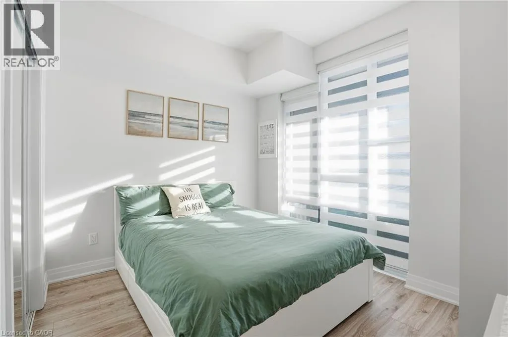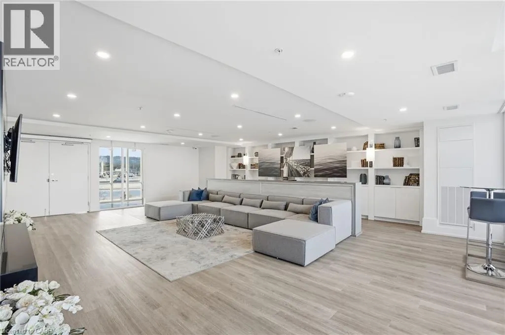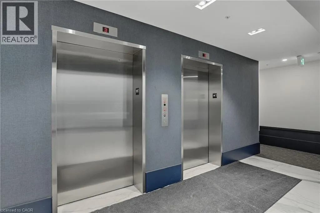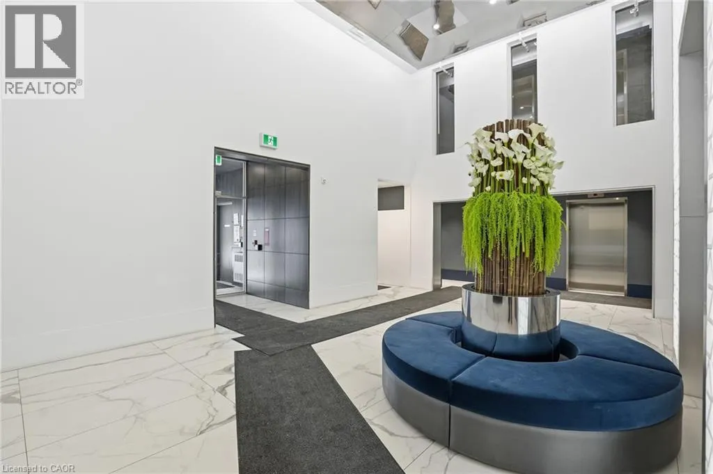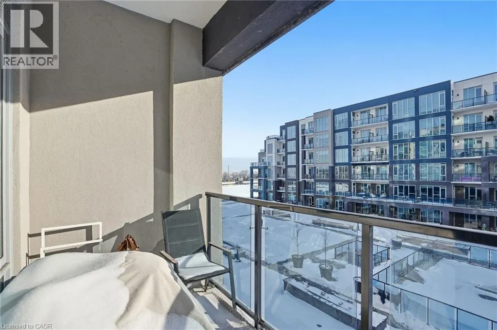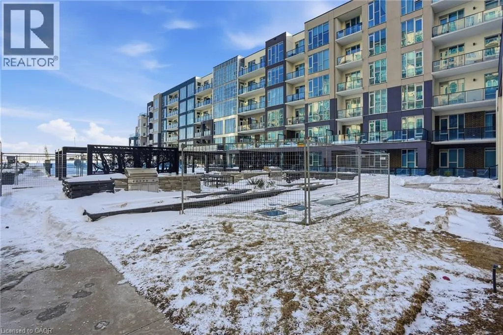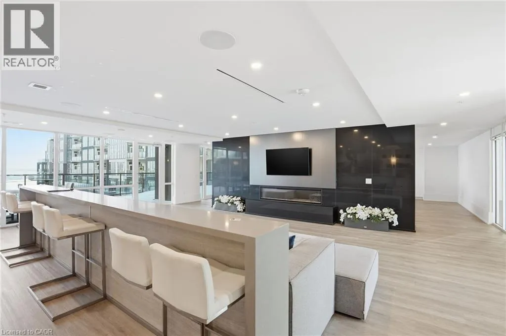 Casablanca Blvd. to South Service Rd. to Concord Place. 3rd floor suite offering over 1100 sq. ft. of carpet-free living with 9â ceilings, crown moulding, and wall-to-wall windows. Private 55 sq. ft. north-east facing balcony with open views of the pool and courtyard. Upgraded kitchen featuring a waterfall quartz breakfast bar, soft-close cabinetry, and stainless steel appliances. Includes in-suite laundry and smart thermostat with independent heating/cooling. Resort-style amenities include an in-ground pool, cabana, fitness centre, party/media rooms, and BBQ area. Comes with 2 owned parking spaces and 2 lockers, plus EV charging in visitor parking. Pet-friendly building close to highways, future GO Train, waterfront trails, shopping, dining, schools, and beaches. (id:27476)