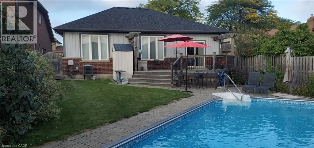 North Service Rd & Sidare Crt between Casablanca Rd & Fifty Rd Welcome to this beautifully designed detached bungalow located on a quiet street in a highly desirable area. This rare and functional layout offers two spacious bedrooms, each with its own private ensuite, plus a convenient powder room for a total of 2.5 bathrooms. The open-concept living, kitchen, and dining area is ideal for everyday living and entertaining, with a dining room walk-out to the deck that extends your living space outdoors. Enjoy a private, fully fenced backyard featuring a heated saltwater pool and multiple entertaining areasâperfect for relaxing or hosting guests. Additional highlights include main-floor laundry, a 2-car garage, and an unfinished basement offering endless potential to customize to your needs. Ideally located close to all amenities, including easy access to the QEW, parks, an off-leash dog park, and Winona Crossing with Costco, shops, restaurants, and more. A fantastic opportunity to enjoy bungalow living with comfort, privacy, and convenience in a great location. (id:27476)