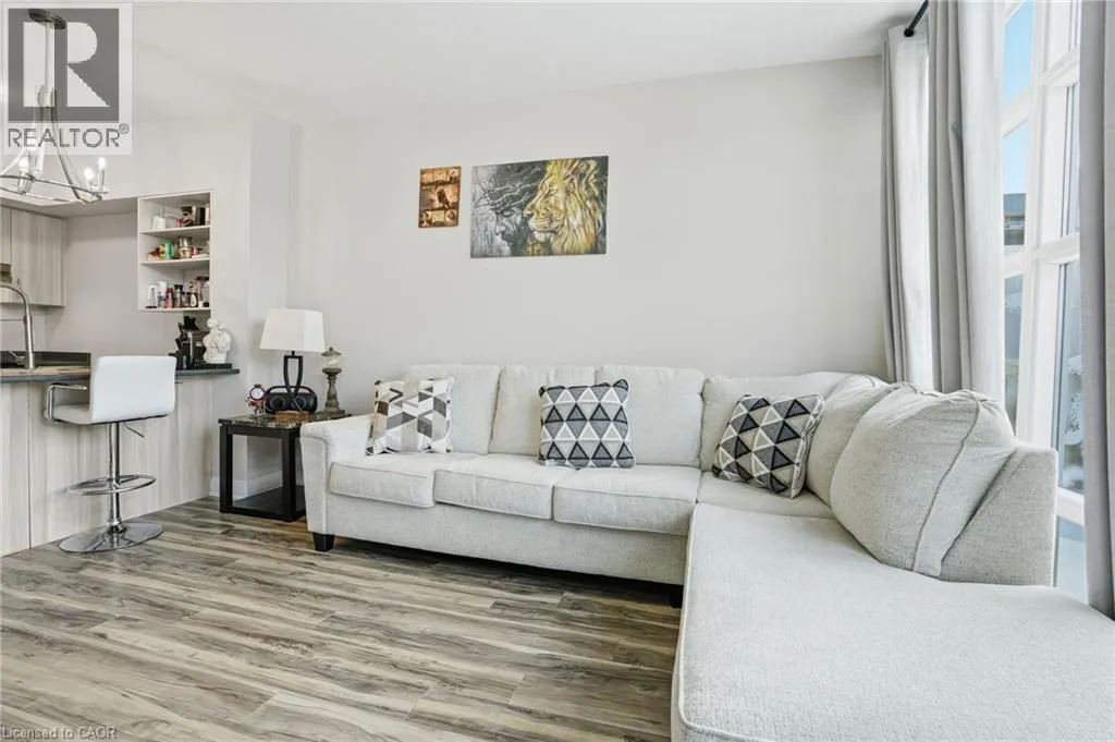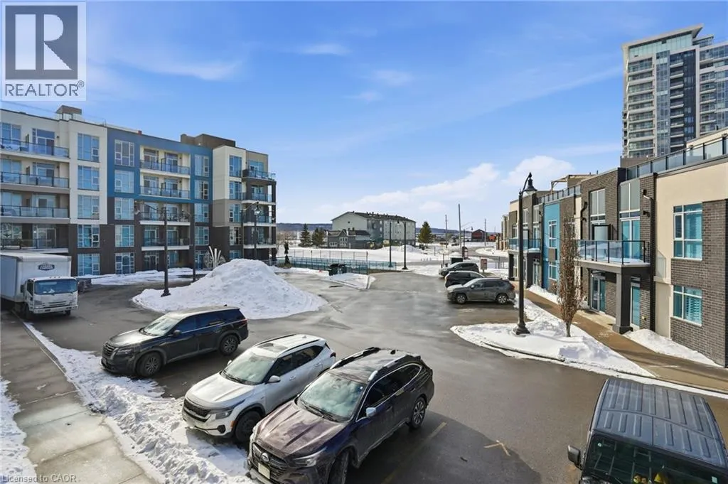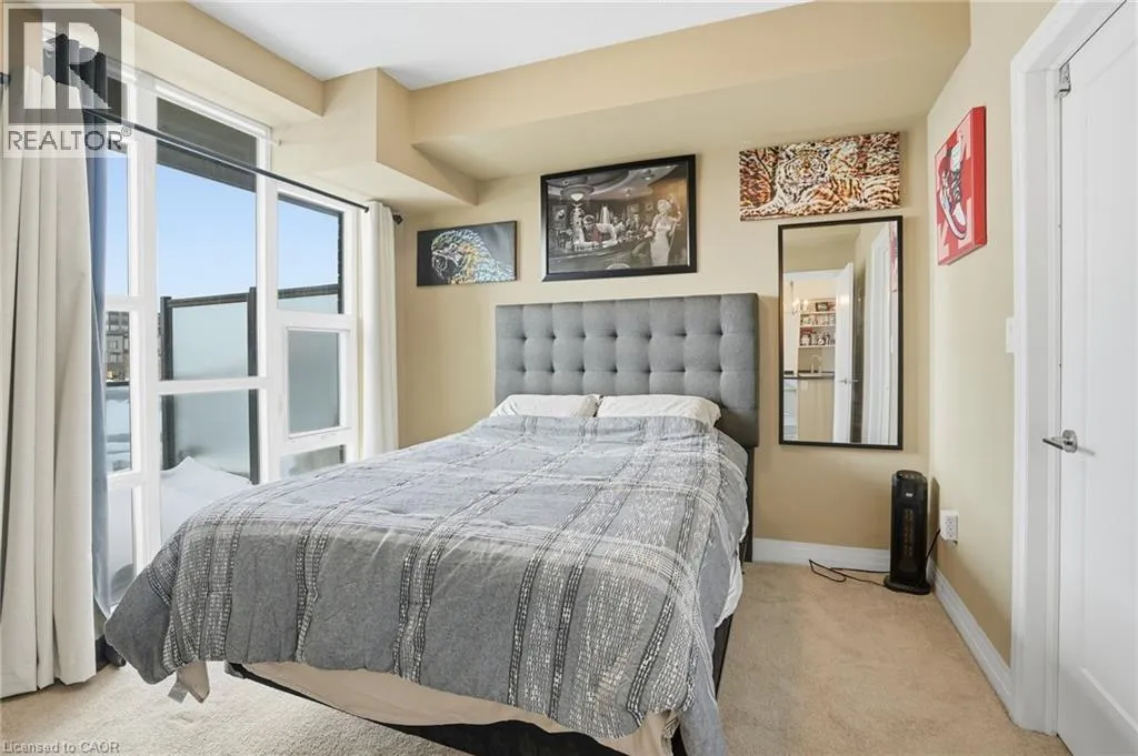 Casablanca W. on North Service Rd. to Concord Place. Welcome to AquaBlu, Grimsbyâs sought-after waterfront condominium, offering modern living just steps from the shores of Lake Ontario. This beautifully designed 1 bedroom + den, 1 bathroom suite combines style, functionality, and an unbeatable location with over 700 sq ft of living space â ideal for first-time buyers and downsizers a-like. The open-concept layout is thoughtfully designed with contemporary finishes and plenty of natural light. Enjoy the added bonus of a private balcony, perfect for morning coffee or unwinding at the end of the day. The spacious bedroom provides a peaceful retreat, while the versatile den works beautifully as a home office, guest area, or flex space. A stylish 4-piece bathroom and convenient ensuite laundry complete the suite. Located near highway access for commuters with 1 parking spot and 1 locker space. (id:27476)