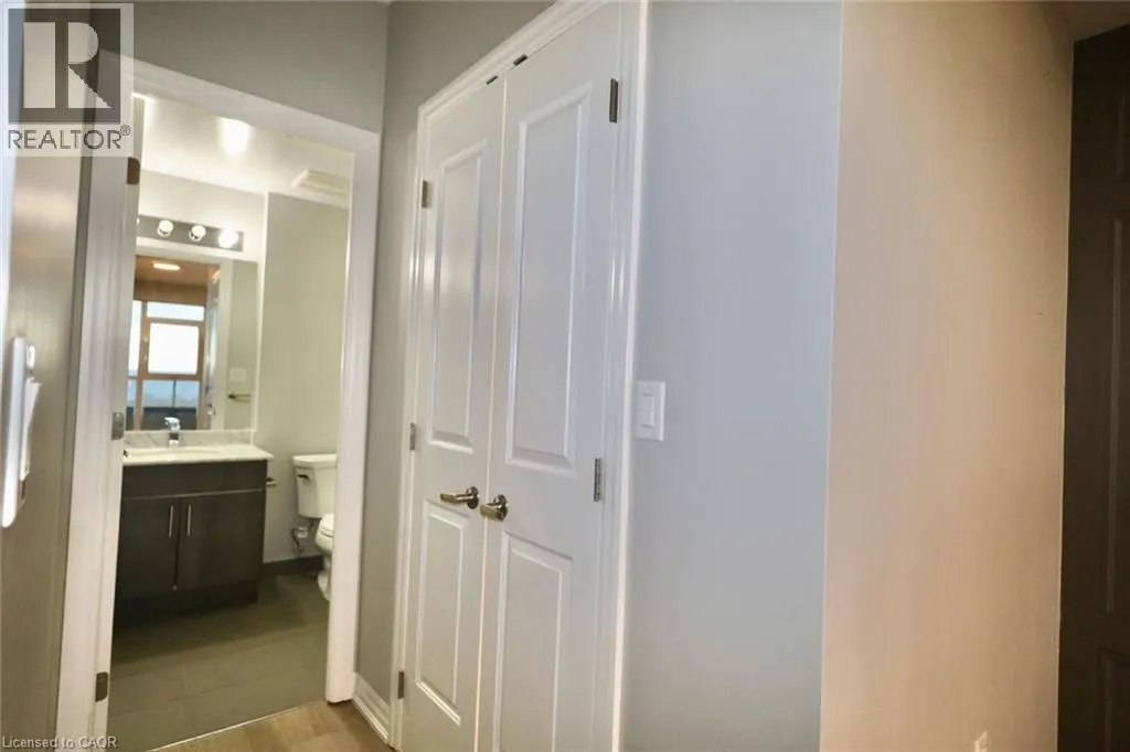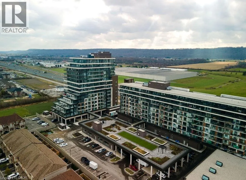 QEW, Casablanca Exit, North on Casablanca, West on Winston, Left on North Service Road Lake views for days. Unit 810 at 560 North Service Rd puts you above it all in Grimsby-on-the-Lake. This 2-bed + den, 2-bath suite features an open concept kitchen with quartz-top island, and durable vinyl plank floors. The split bedroom layout adds privacy; the flexible den works as an office or nursery. Enjoy sunrise coffee on the oversized balcony with unobstructed Lake Ontario vistas. In-suite laundry and one parking spot included. Steps to waterfront trails, cafes and restaurants, with fast QEW/GO access for commuters. Approx. 983 sq ft. (id:27476)