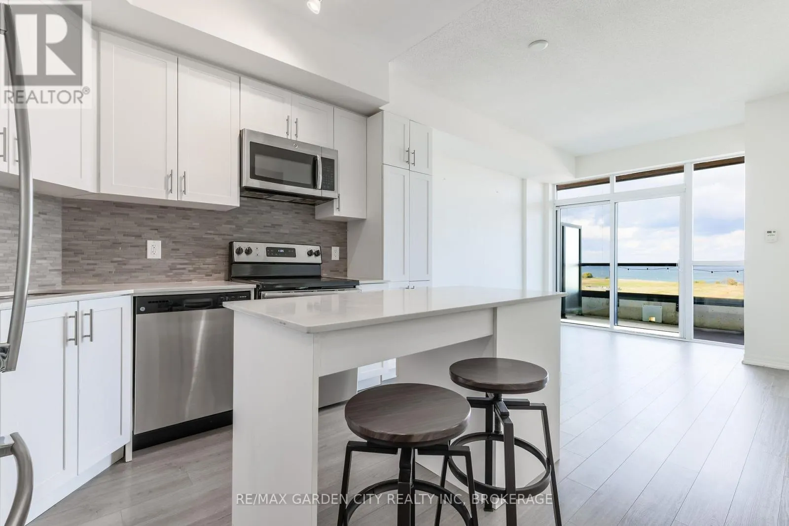 Cross Streets: Winston Road. ** Directions: QEW, Casablanca Exit, North on Casablanca, West on Winston, Left on North Service Road. Spectacular upgraded 1-bedroom + den, 1.5-bath condo showcasing breathtaking views of Lake Ontario and an oversized 20-ft balcony spanning the full width of the suite-perfect for relaxing or entertaining. The modern kitchen features solid surface countertops and stainless steel appliances, while all principal living areas are carpet-free for a clean, contemporary feel. The spacious primary retreat offers a walk-in closet and private 4-piece ensuite. Rent includes one designated underground parking space (#71), storage locker, heat, and water. Residents enjoy access to premium building amenities, including a rooftop deck, fitness centre, and games/party room. Conveniently located near the waterfront, QEW access, shopping, and dining. (id:27476)