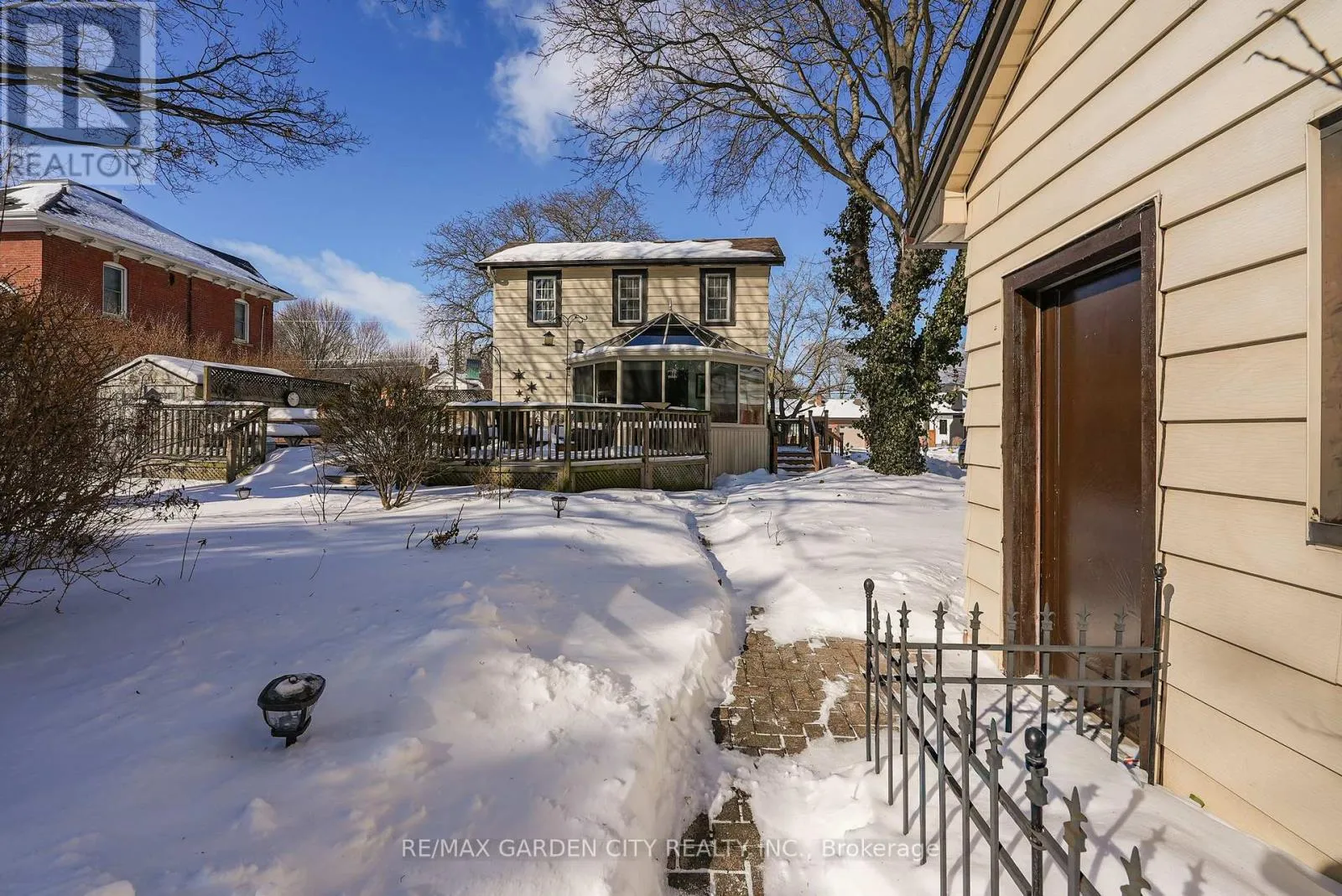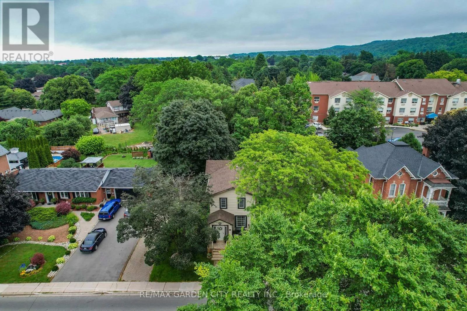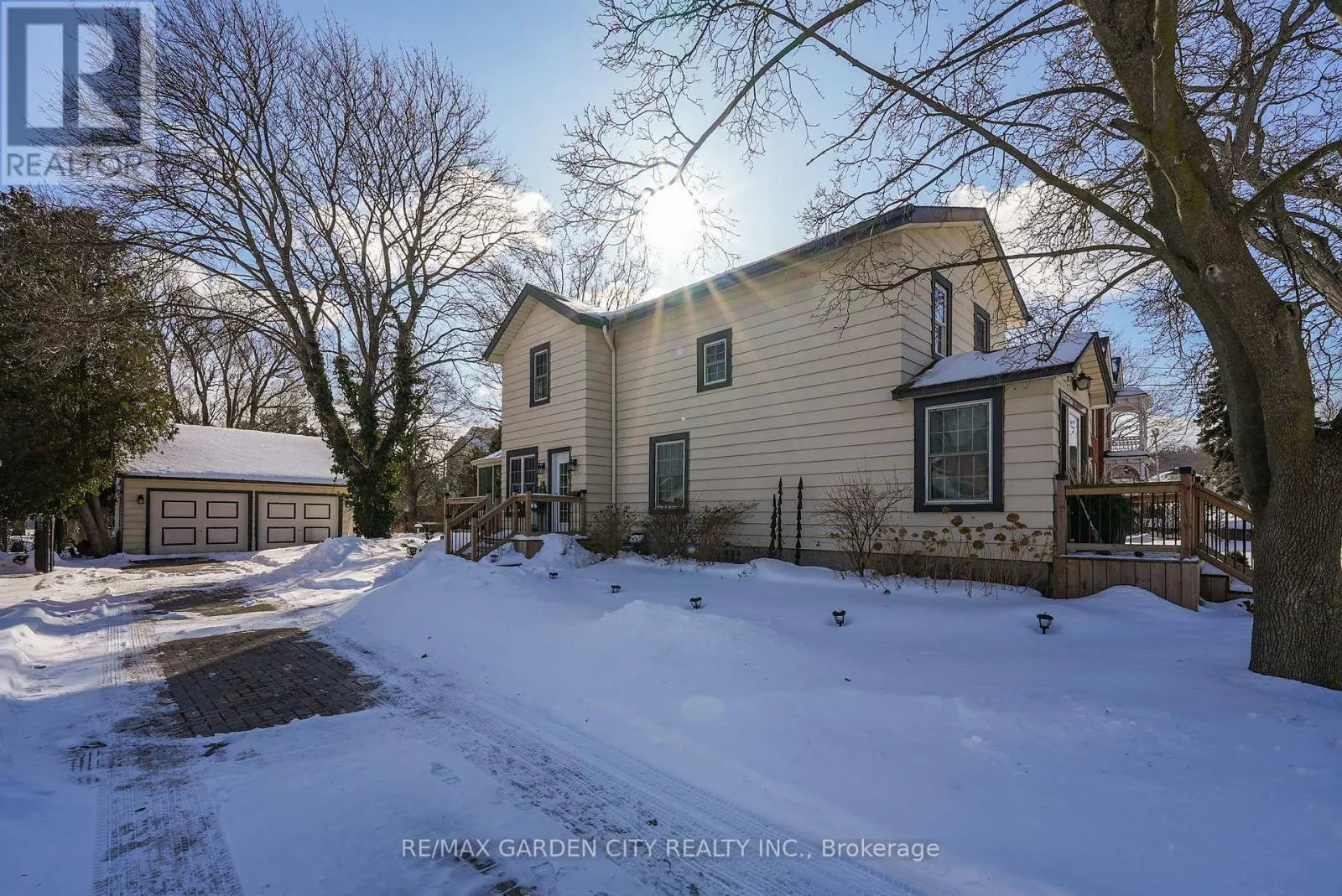 Cross Streets: MAIN ST. EAST. ** Directions: From QEW, exit Maple Avenue. South on Maple. Discover the warmth, character, and modern comfort of this beautifully maintained 2-storey century home, perfectly situated on a generous lot just minutes from vibrant downtown Grimsby. With more than 100 years of history, this timeless residence seamlessly blends original charm with thoughtful contemporary updates. Step inside to a vaulted entryway accented with rich wood details that continue throughout the home, creating an inviting and cohesive feel. The main floor offers an open-concept kitchen and dining area that leads into a cozy year-round sunroom-an ideal spot for morning coffee, quiet evenings, or enjoying views of the backyard in every season. The spacious living room, anchored by a classic fireplace, adds even more warmth and character. Upstairs, you'll find two bedrooms, including a large primary retreat complete with a walk-in closet and an impressive bathroom featuring a walk-in shower and ample room to unwind. Outside, the property shines with multiple decks, a relaxing hot tub, and a charming pergola-perfect for summer entertaining or peaceful outdoor escapes. The detached double garage (24' x 22' exterior) includes a workshop for hobbyists and a loft for additional storage or creative use. With its walkable location near shops, restaurants, and parks, this unique home offers the very best of Grimsby living. Don't miss your chance to own a beautifully cared-for piece of local history! (id:27476)