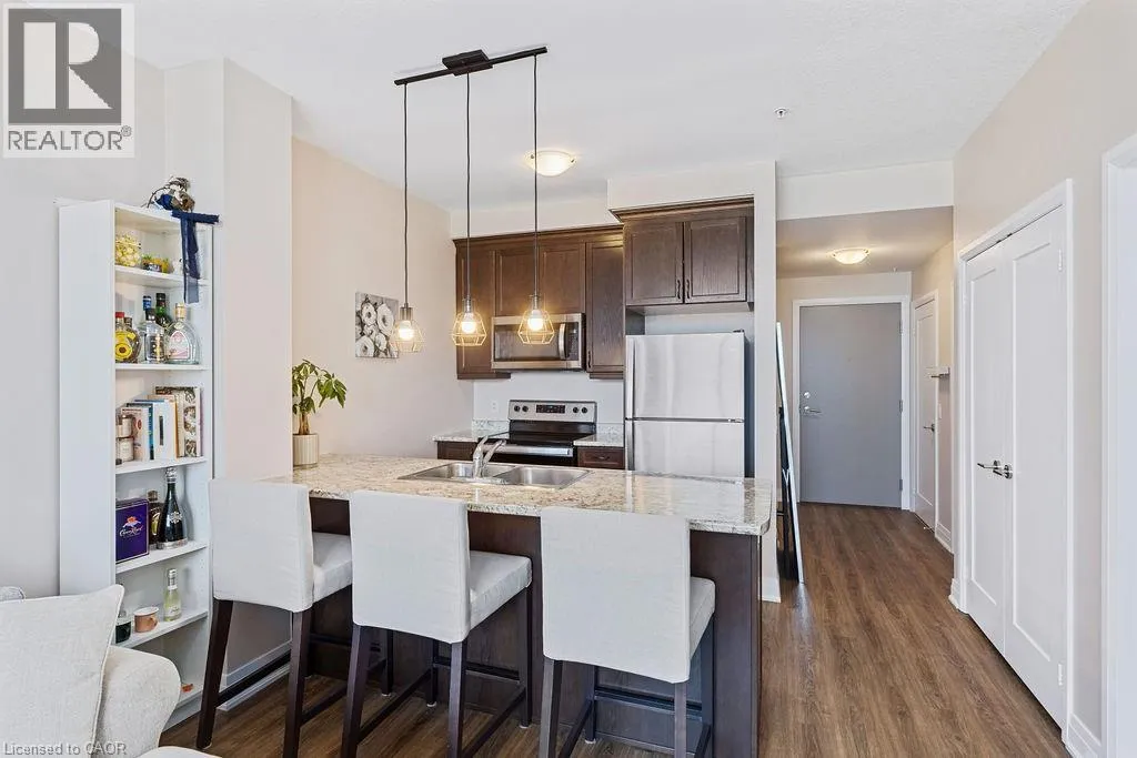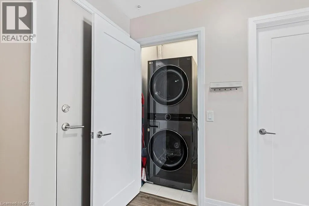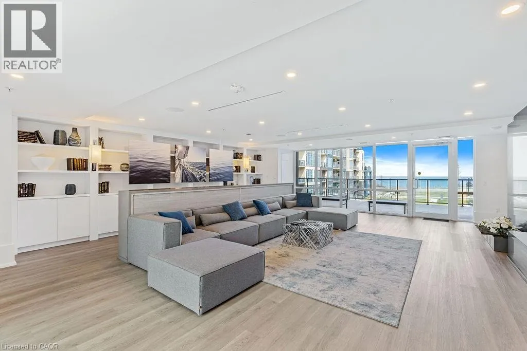 Discover lakeside living in Grimsby on the Lake! An accessible and chic 1-bedroom plus den unit with west-facing and partial lake views. The den offers versatile space for an office, a cozy retreat or guest room. The bathroom features an accessible and relaxing walk-in tub with jets and showerhead. Entertain in style in the open-concept living area featuring abundant natural light from the floor-to-ceiling windows. Enjoy your coffee on your private balcony with views of Lake Ontario and beautiful evening sunsets. With amenities like an outdoor inground pool, BBQ stations, EV chargers, fitness center, rooftop terrace, party room, media room, every need is met. Experience tranquility and convenience in one place. (id:27476)
