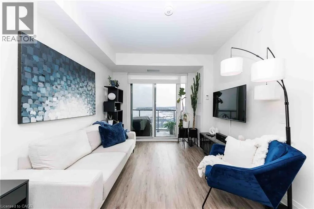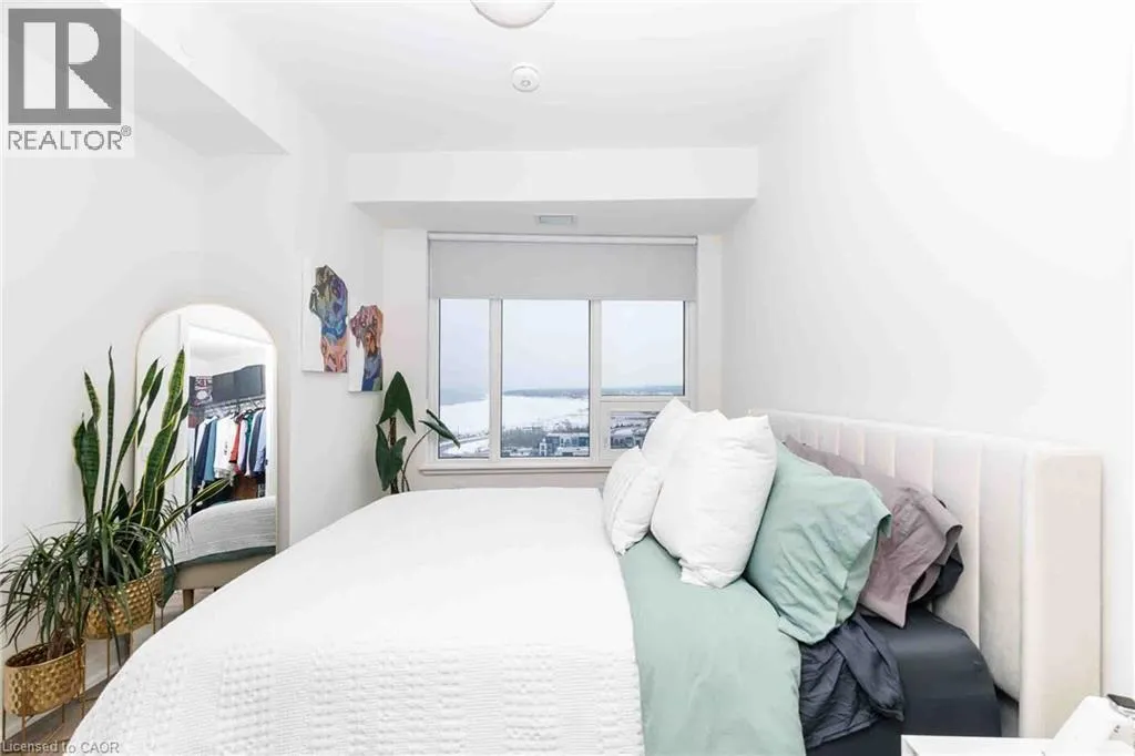 North on Casablanca to North Service Road Straight to Winston True luxury lakeside living. Move up to this very impressive unit with sleek modern finishes and truly breath taking lake views. White kitchen cabinets and island with quartz counter tops, s/s appliances and pantry closet. Bedroom with a view and large walk in closet. Wide plank flooring through out, custom blinds, stacked washer/dryer. Enjoy the amenities of Odyssey that include gym, yoga room, party room and the stunning sky lounge with roof top terrace. Storage locker and underground parking included. Tenant pays hydro, water and choice of internet. (id:27476)