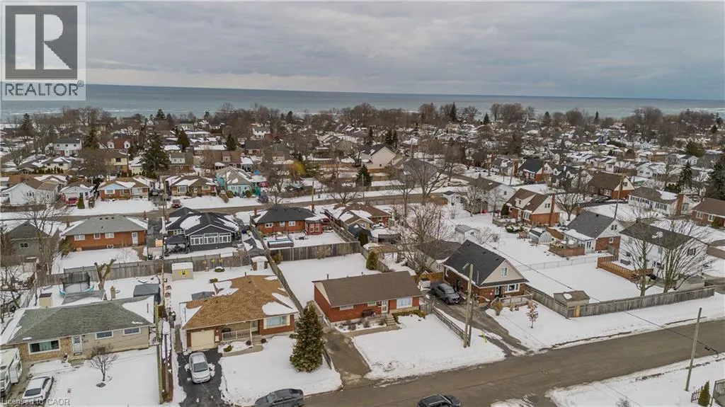 Olive St to Stewart St to Cherry Ave Nestled in the heart of Grimsby Beach, this charming bungalow offers an incredible opportunity for growing families ready to create their dream home. Set in a welcoming, family-friendly community just minutes from the lake, elementary schools, close to everyday amenities, and easy highway access, this property blends lifestyle, location, and is a dream for commuters. With 1740sf of living space, itâs the perfect canvas for those looking to renovate, personalize, and build long-term value. The home greets you with lovely gardens, a long driveway, and a warm, inviting front porch â the perfect place to enjoy quiet mornings or connect with neighbours. Inside, a bright open-concept living and dining area is filled with natural light from a large front window, creating a comfortable and functional space for everyday family life and future design possibilities. The kitchen with breakfast nook offers excellent layout potential and is ready to be transformed into the ultimate chefâs space tailored to your style and needs. Three well-sized bedrooms and a 4-piece bathroom complete the main level, offering a practical layout for families of all stages. The fully finished lower level with separate entry expands your living space and flexibility. Featuring a cozy rec room with exposed brick, rustic wood beam, and a charming stove fireplace, plus a bar area, this level is ideal for family movie nights, entertaining, a future in-law setup, or creative redesign. Step outside to an expansive, fully fenced backyard designed for family living. A concrete patio provides space for outdoor dining and summer gatherings, while the generous green space offers plenty of room for kids and pets to play. A shed adds convenient storage for tools, toys, or future projects. Whether youâre looking to renovate, customize, or invest in a vibrant lakeside community, this property presents a rare chance to bring your vision to life and create a home that grows with your family for years to come. (id:27476)