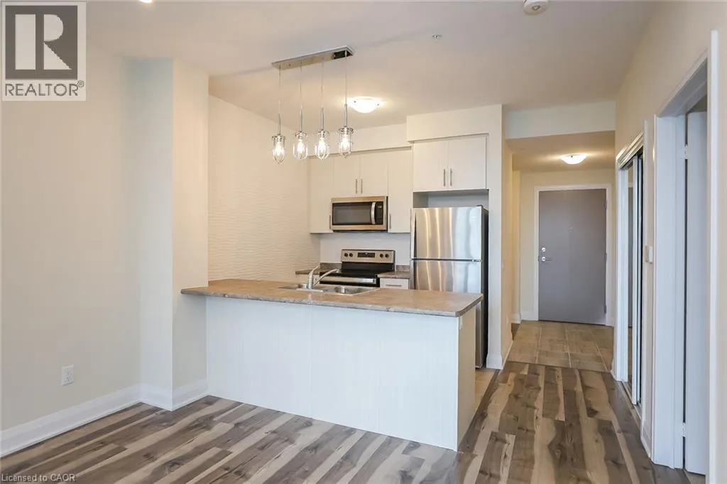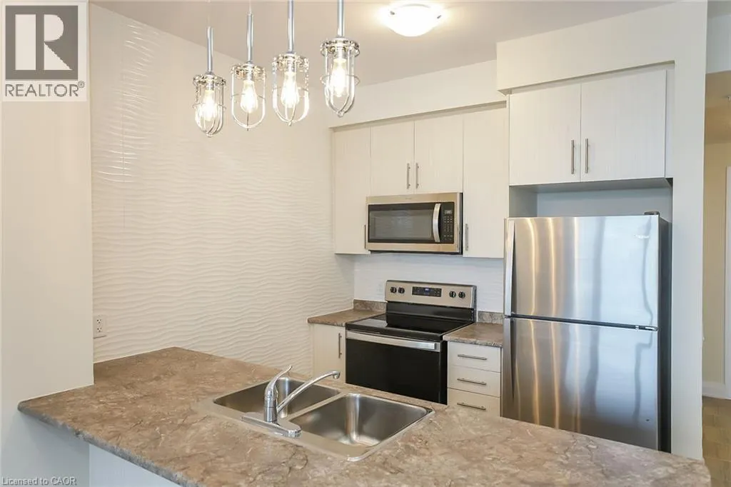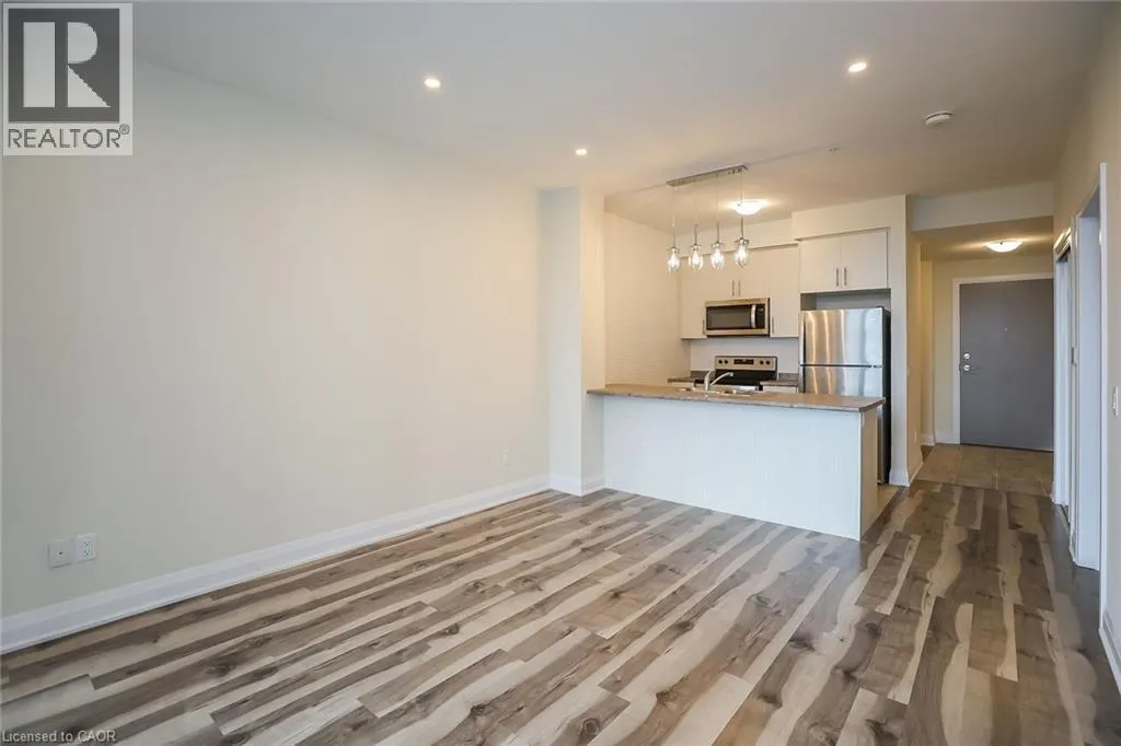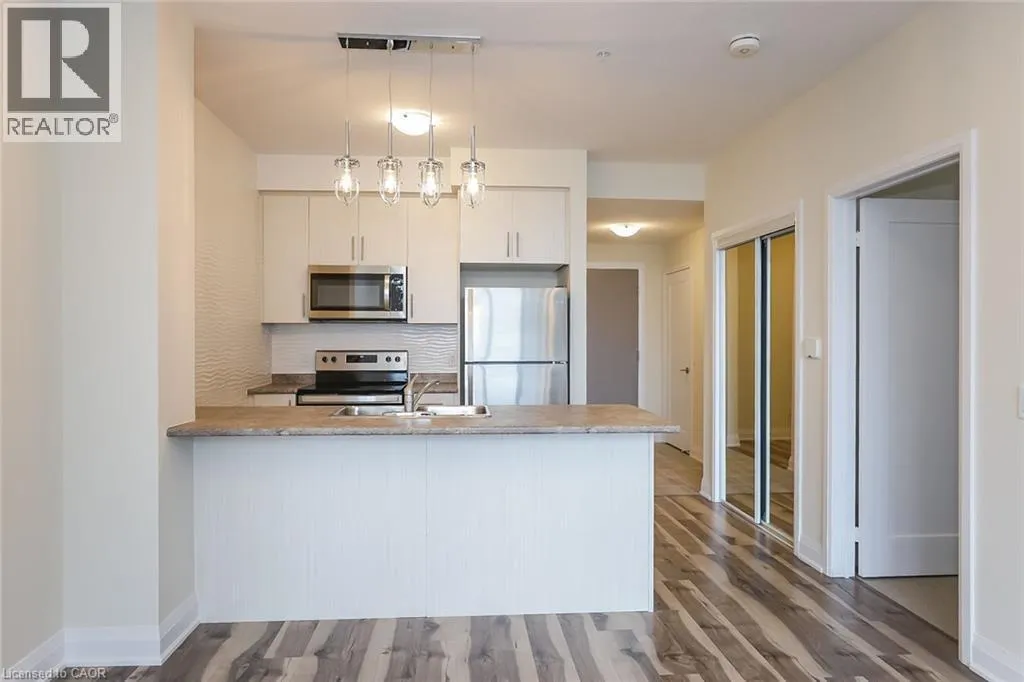 North on Casablanca, Left on North Service Road. Welcome to Grimsby-On-The-Lake's premier building Aquazul! Enjoy unobstructed views of the Toronto skyline from the privacy of this gorgeous condo located on the waterfront. Enjoy floor to ceiling windows, with privacy blinds, in this 769 sqft one bedroom + den with a great oversized 4pc bath that offers stainless steel appliances, breakfast bar with upgraded backsplash and in suite laundry. Take in the view from the balcony and enjoy the fresh air on the waterfront trails. Included is one parking spot and storage locker conveniently located. Quick access to QEW, shopping, restaurants, and so much more! (id:27476)