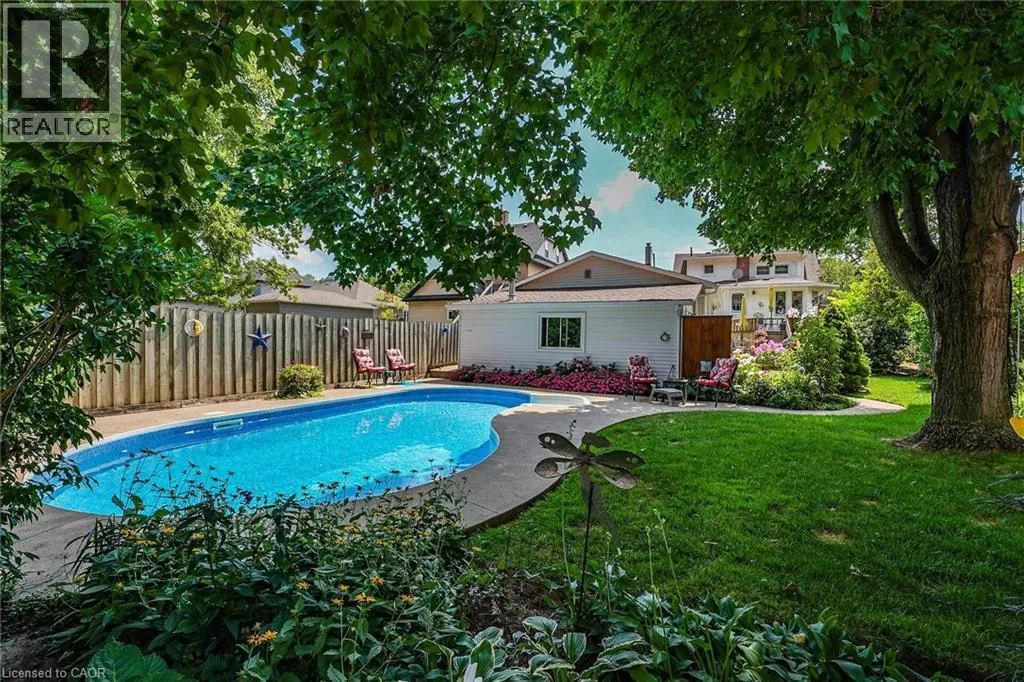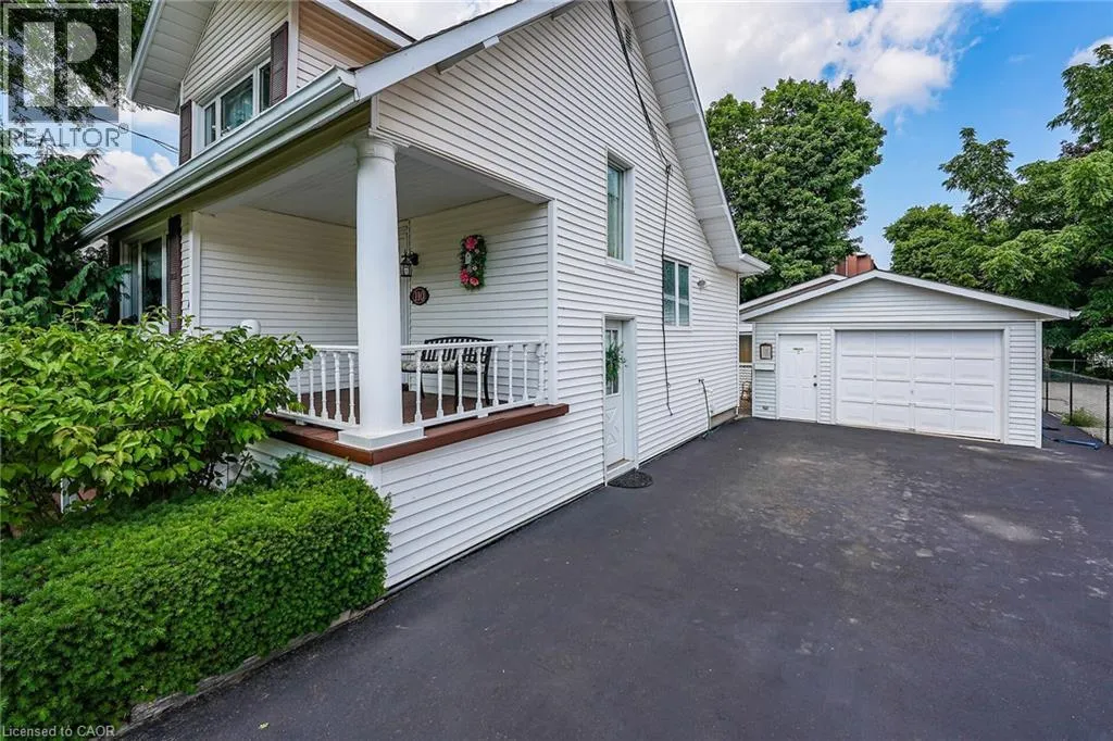 From QEW, exit Christie Street. South on Christie to Main Street, West on Main (turns into Livingston Ave.) Welcome to 110 Livingston Avenue â a gracious Grimsby residence where historic character meets modern comfort. Rich hardwood floors guide you through the open-concept main level, highlighted by an inviting eat-in kitchen with granite countertops, updated cabinetry, and a seamless flow into the family room anchored by a handsome brick natural gas fireplace. The formal living/dining room adds an elegant touch with crown moulding, an electric fireplace, and an abundance of natural light from multiple windows. Upstairs, two charming bedrooms reflect the warmth of a true century home, with the primary suite offering a generous walk-in closet. The lower level extends your living space with a cozy rec room, convenient laundry area, and ample storage. Step from the family room into your own âsecret gardenâ â a secluded, beautifully landscaped retreat designed for both relaxation and gatherings. Enjoy an inground pool, outdoor shower, multiple decks, and a handy change room, creating the perfect backdrop for endless summer days. The expansive outbuilding is a standout feature, offering a heated garage with full electrical service, office space, and a workshop â ideal for a home business, hobbies, creative pursuits, or substantial storage needs. Located just minutes from downtown Grimsbyâs shops, dining, and amenities, and with quick highway access, this home delivers timeless charm, thoughtful updates, and exceptional indoor-outdoor living in one remarkable package. (id:27476)