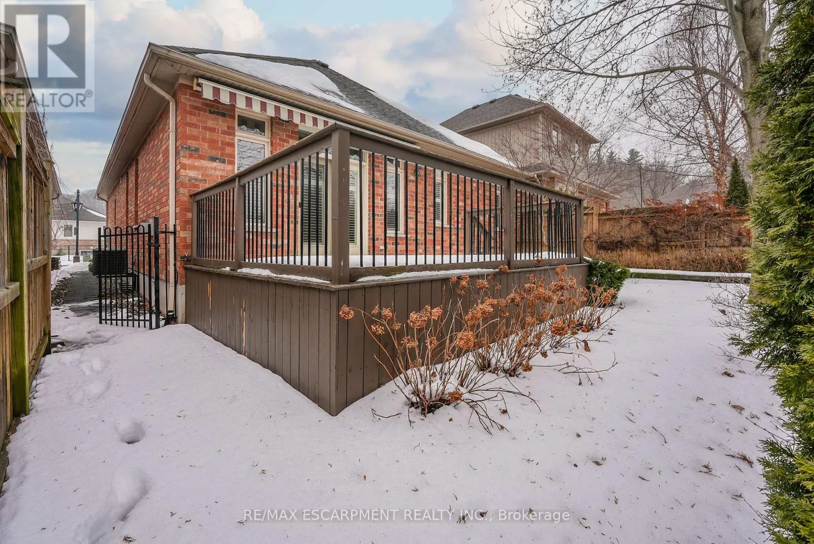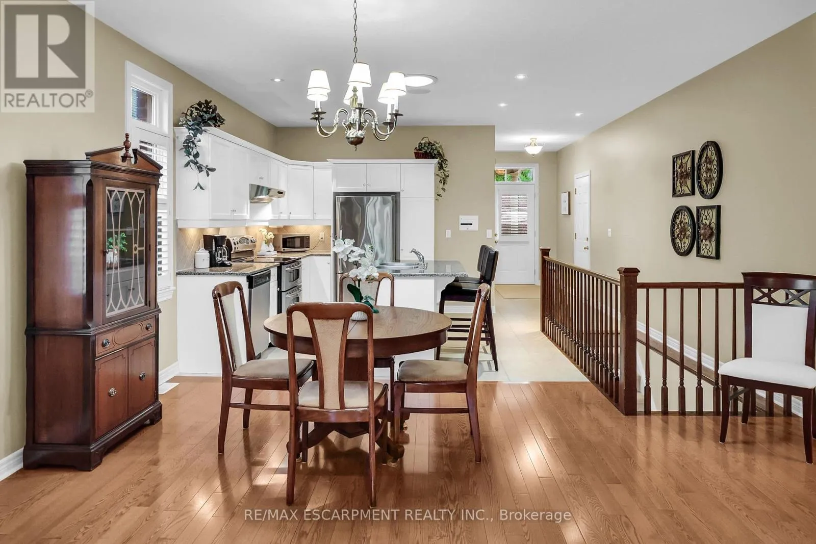 Cross Streets: Main St E/Bartlett Ave. ** Directions: From QEW, Exit Bartlett Ave, South on Bartlett, Left on Muscat Drive. ELEGANT BUNGALOW LIVING... Beautifully finished bungalow on a PRIVATE COURT at 4-8 Muscat Drive offers refined main-floor living in one of Grimsby's most desirable communities. This 2+1 bedroom, 3 bathroom home blends modern comfort with thoughtful design and functionality. Step inside to a bright, welcoming foyer with ceramic flooring and transom window, opening into a stunning OPEN-CONCEPT layout with soaring 10' ceilings, California shutters, and hardwood flooring throughout the main living space. The upgraded kitchen showcases GRANITE counters, stylish backsplash, centre island, high-end stainless-steel appliances, and transom-topped windows that fill the space with natural light. The adjacent living room is warm and inviting with pot lights, a cozy gas fireplace, and garden doors leading to your PRIVATE OUTDOOR RETREAT. Enjoy summer evenings beneath the retractable electric awning on the deck, or relax in the fenced yard with patio, flagstone walkway, mature trees, and a built-in sprinkler system for effortless maintenance. The spacious PRIMARY BEDROOM features a walk-in closet and 4-pc ensuite, while the second bedroom offers plush carpeting and flexibility for guests or a home office, complemented by a second 3-pc bath. Convenient main-floor laundry enhances the practical layout. The FULLY FINISHED LOWER LEVEL continues the home's appeal with quality wood banisters, a large recreation room, third bedroom with double closet, and an additional 4-pc bath - ideal for extended family or entertaining. Additional highlights include a newer roof (2020), interlock double driveway, covered porch, and attached garage with inside entry and new GDO. Set in a peaceful, well-maintained location close to parks, amenities, Grimsby's charming downtown, and wine country, with quick access to the hospital, schools, shopping, and the QEW. Stylish, low-maintenance living in an exceptional court setting. CLICK ON MULTIMEDIA for virtual tour, drone photos, floor plans & more. (id:27476)