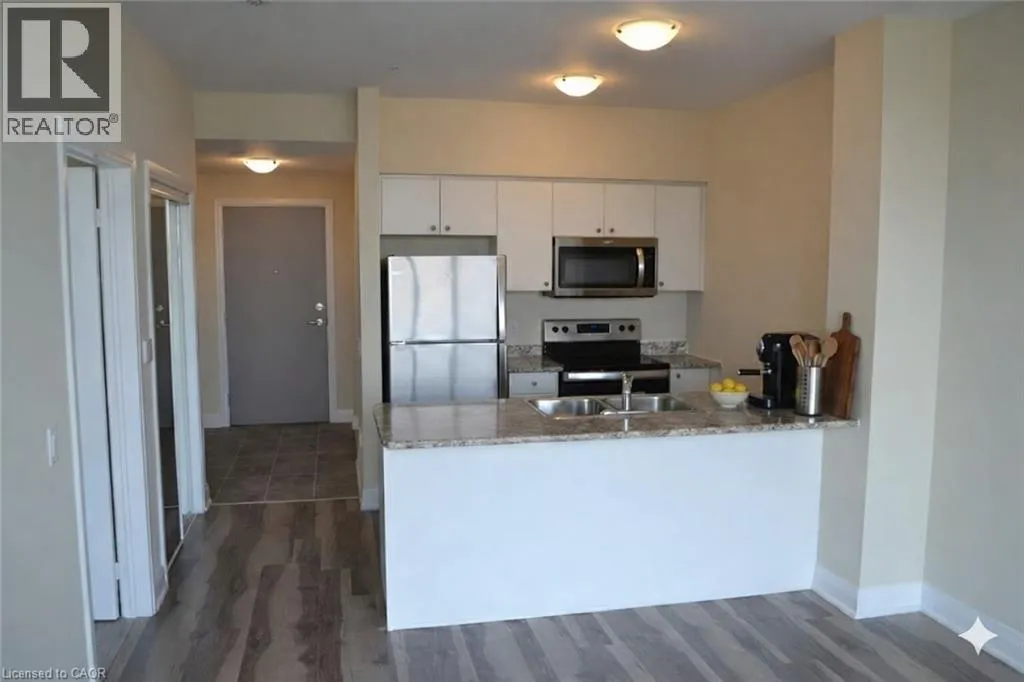 Casablanca Blvd towards waterfront, left on North Service Rd, left on Concord Place, head left towards Building I Located in the highly sought-after Aquazul Condominiums at Grimsby on the Lake, this 2020-built, well-maintained 1 bedroom + den suite offers bright, open-concept living with floor-to-ceiling windows that fill the space with natural light and capture beautiful Lake Ontario views and stunning sunrises. The modern kitchen features hard-surface countertops, stainless steel appliances, and breakfast-bar seating, flowing seamlessly into the living area and out to a private balconyâideal for relaxing or entertaining. The spacious primary bedroom includes a walk-in closet with convenient ensuite access, while the full den provides flexible space for a home office or guest area. In-suite laundry adds everyday convenience. Aquazul delivers true resort-style living, with premium amenities including an outdoor pool and BBQ courtyard, fully equipped gym with lake views, party room, theatre/media lounge, games and billiards room. Enjoy being steps to lakeside walking trails, parks, boutique shops, cafés, and restaurants, with Costco and everyday conveniences just across the road. Includes one underground parking space and a storage locker, with quick QEW access. A fantastic opportunity in one of Grimsbyâs most vibrant waterfront communities. (id:27476)