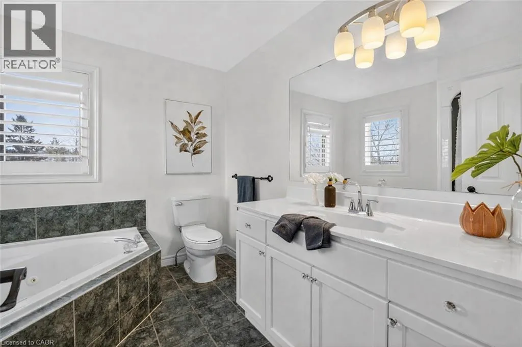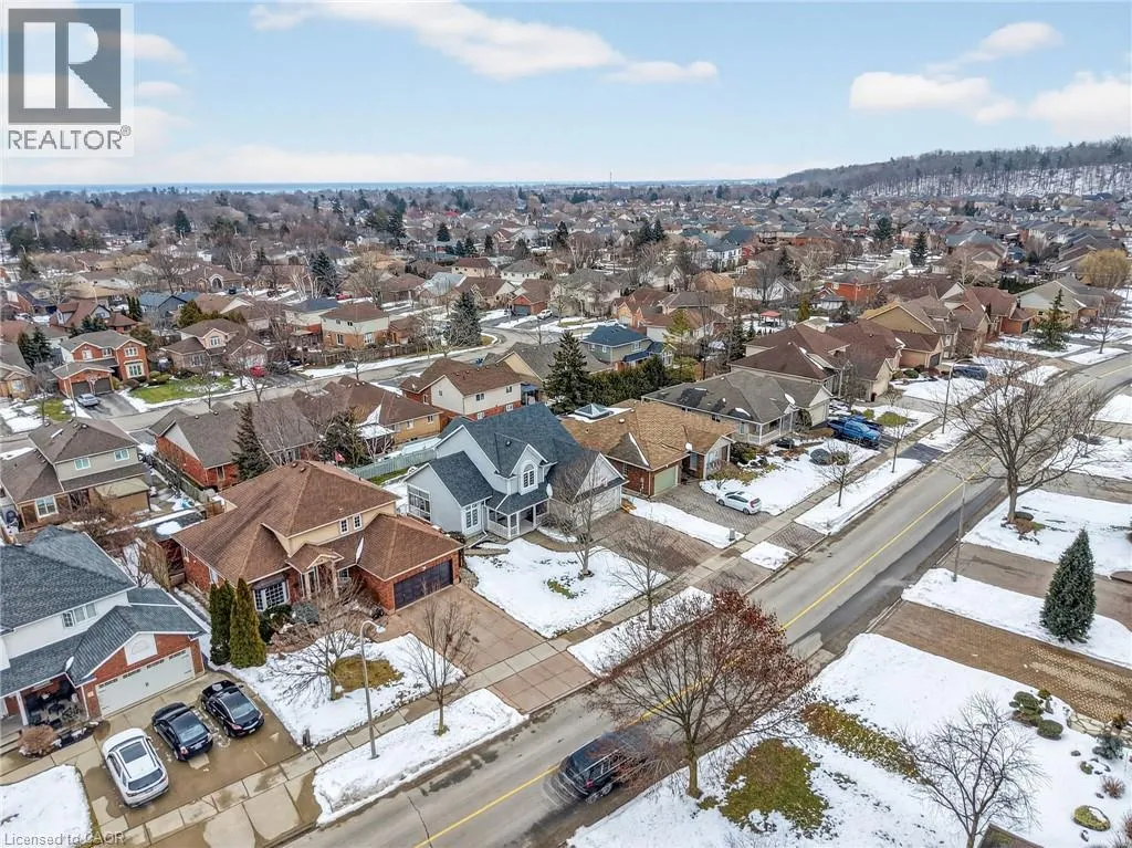 Main Street East to Baker Road South, turn right on Dorchester Drive This home sits at the foot of the Niagara Escarpment in Dorchester Estatesâone of Grimsby's most popular neighbourhoods. This well-kept two-storey home has four bedrooms, three and a half bathrooms, and over 3,100 square feet of finished space, giving a growing family plenty of room to settle in for the long haul. The main floor is predominately hardwood flooring, with a sunken living room that features a spacious gas fireplace and new windows. The carpeted dining and sitting room has a soaring vaulted ceiling and looks out toward the Escarpment. The eat-in kitchen has stainless appliances, oak cabinetry, and a garden door that opens onto a large back deck with a gazeboâgreat for summer get-togethers and family fun. Upstairs, the primary suite has a walk-in closet and private ensuite, as well as two additional bedrooms and a 4-piece bathroom. The fully finished basement gives you a bunch of options whether you need a rec room, guest space, or a home office. Outside, the double garage, concrete driveway, and stamped concrete walkways give the exterior a clean, polished feel. The street is quiet and family-friendly, with the West Lincoln Memorial Hospital, schools, shopping, and the QEW all close by. This home is the perfect spot for your family to call home for a very long time. Note: some photos have been virtually staged. (id:27476)