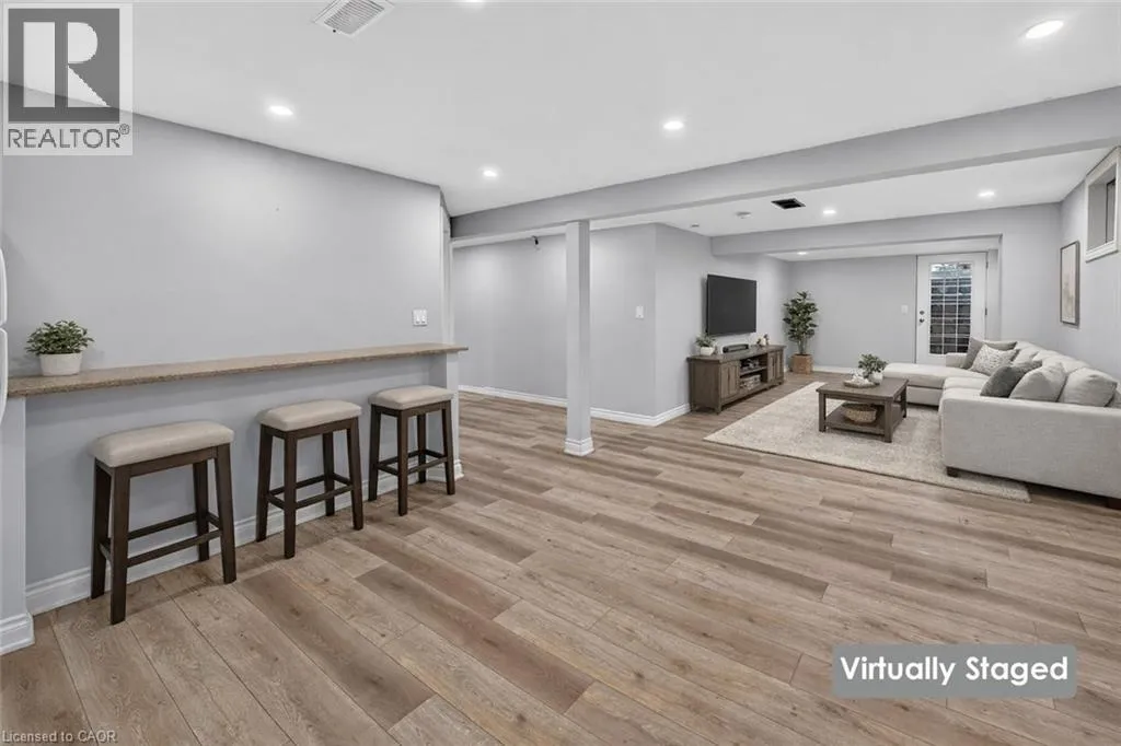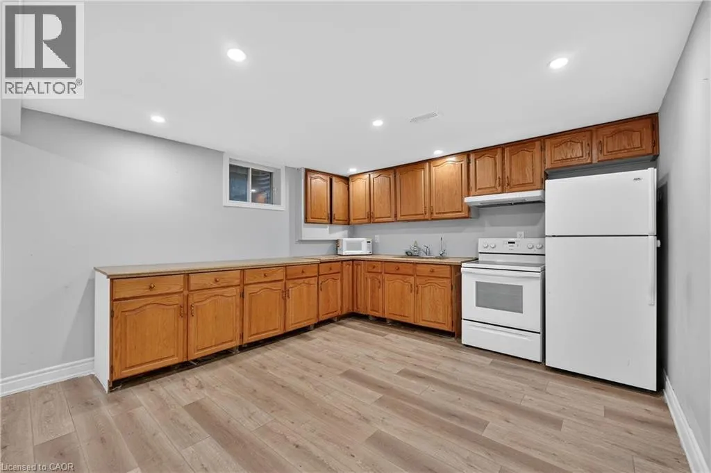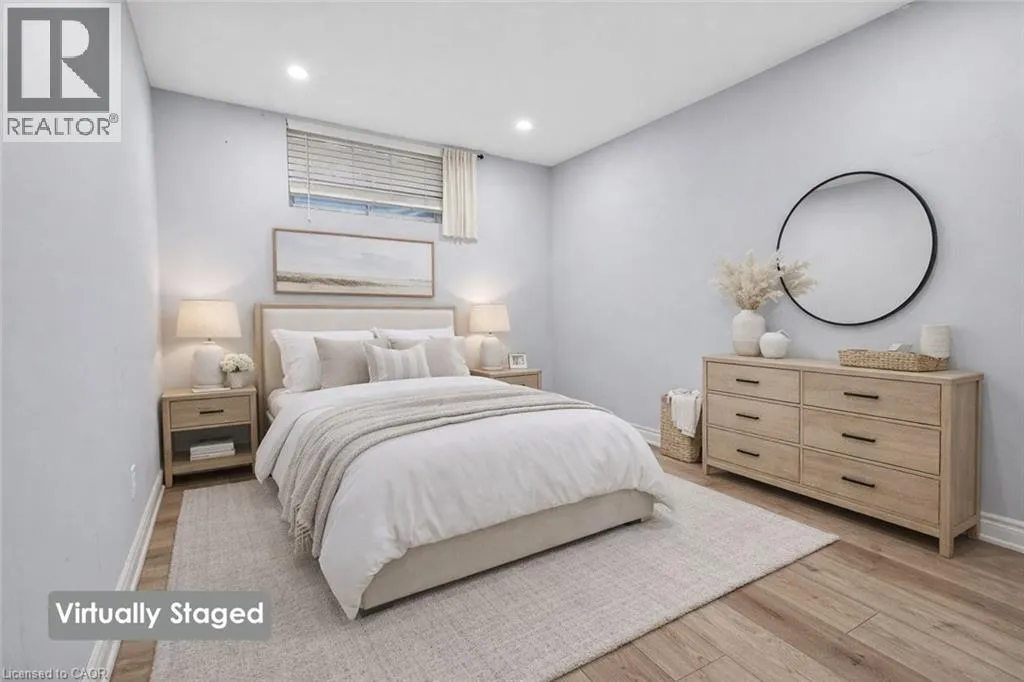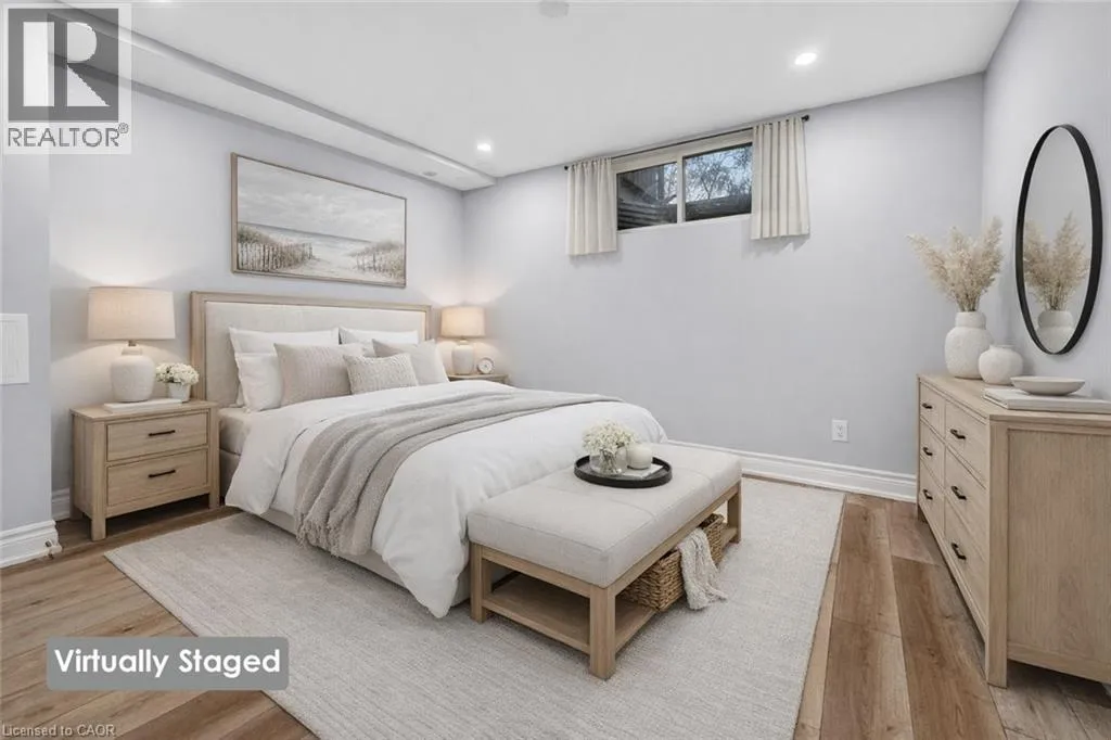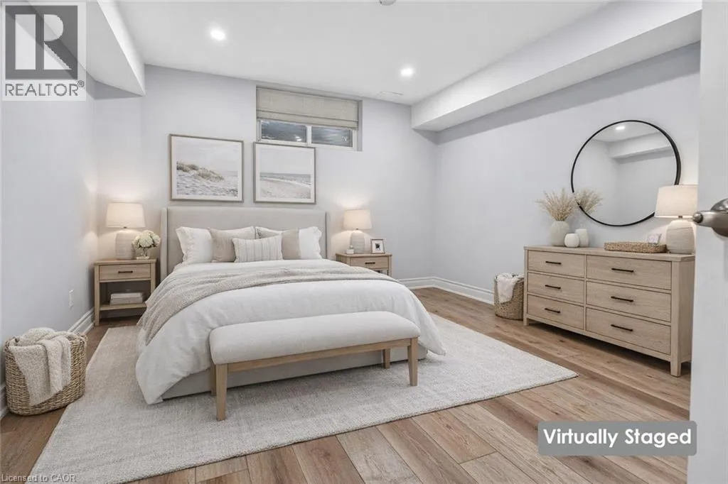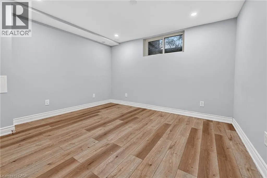 SPACIOUS LOWER-LEVEL LIVINGâ¦Set within the Blue Moon House on an impressive 210â deep lot, this well-appointed lower-level apartment at 214 Main St E offers comfortable, functional living in the heart of Grimsby. With a PRIVATE ENTRANCE from the back of the bungalow, the space feels tucked away and inviting while still connected to everything the community has to offer. Inside, a hallway leads into an open kitchen and dining area finished with GRANITE counters, pot lights, and luxury vinyl flooring with added insulation for everyday comfort. The layout offers approximately 1,000 sq ft of living space, designed to balance practicality with warmth. Three well-sized bedrooms with closets, plus a 3-piece bathroom showcases a shower with porcelain tile flooring and shower surround. Laundry is in a shared common area, two parking spaces are included, and the tenant is responsible for 40% of utilities. No pets due to severe allergies and shared ventilation. Location is a standout. Enjoy a short WALK TO DOWNTOWN Grimsby, with close proximity to the hospital, schools, parks, and quick QEW access for easy commuting. Daily errands, community amenities, and a peaceful residential setting all come together in one well-positioned rental opportunity. Room sizes approximate. (id:27476)