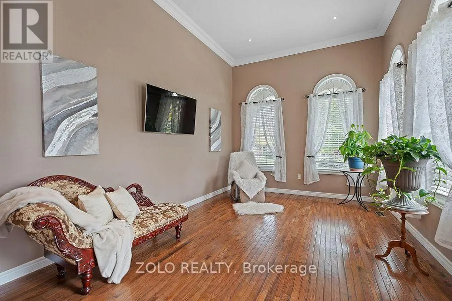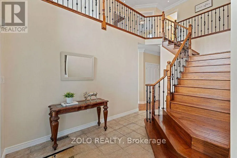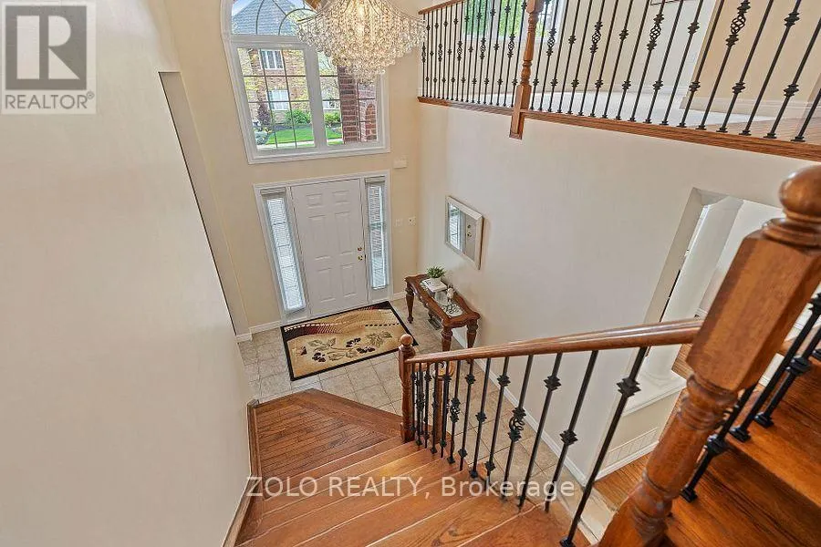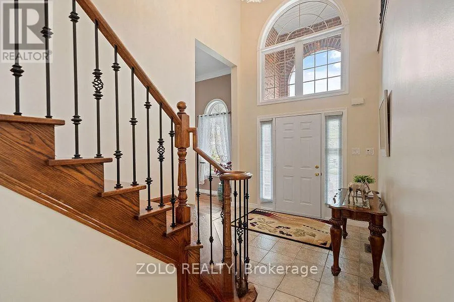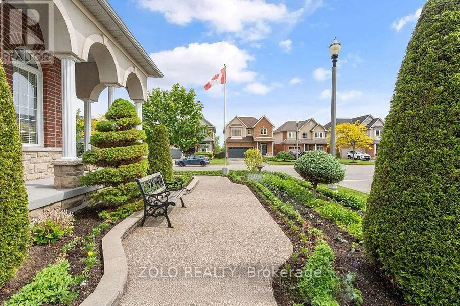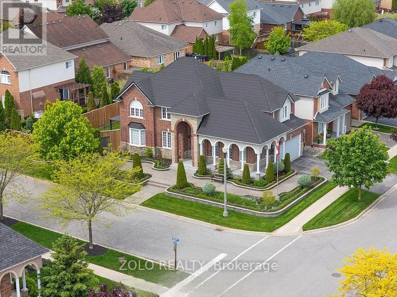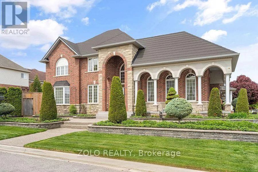 Cross Streets: Cabernet and Vinifera. ** Directions: Turn left on Cabernet St. Located in the highly desirable Vineyard Valley neighborhood, this stunning 2-story built by the award-winning Marz Homes in 2004, offers over 4000 sqft of impressive living space. Greeted by a grand stone and brick facade, showcasing exceptional curb appeal with a charming wrap-around porch and beautifully landscaped stone flower beds. Step inside to discover an inviting foyer with soaring 18-ft ceilings and a striking crystal chandelier that sets a tone of sophistication. The great room features a 12-ft ceiling and oversized windows that flood the space with natural light. The rest of the main level boasts 9 ft ceilings, creating an airy and inviting atmosphere. Enjoy cozy evenings by the gas fireplace in the family room or host memorable dinners in the large formal dining room. The kitchen is equipped with a corner pantry. An adjoining breakfast area that flows into the living and onto the patio.Venture upstairs to find 3 generous bedrooms, each with a walk-in closet, and a bright loft that overlooks the foyer, which could easily be converted into a 4th bedroom. The primary bedroom features a vaulted ceiling, while the ensuite boasts double sinks, a corner tub, and a separate shower. A 2nd bath and a conveniently located laundry room complete the upper floor.The basement offers in-law potential with a separate entrance from the garage. It features a spacious rec room with a fireplace, a spare bedroom, and roughed-in bath and wet bar. Step outside to your private, fully fenced yard, which includes a double gazebo covered concrete patio, and a garden area perfect for relaxation.Freshly painted, central vac and 2018 steel roof from Metstar. This prime location provides easy access to farmers markets, Lake Ontario, and a wealth of parks and walking trails. Explore nearby restaurants and charming towns along the Niagara Escarpment. Families will appreciate the proximity to the YMCA, schools and hospitals, with a quick drive to downtown and just a minute to the QEW. (id:27476)