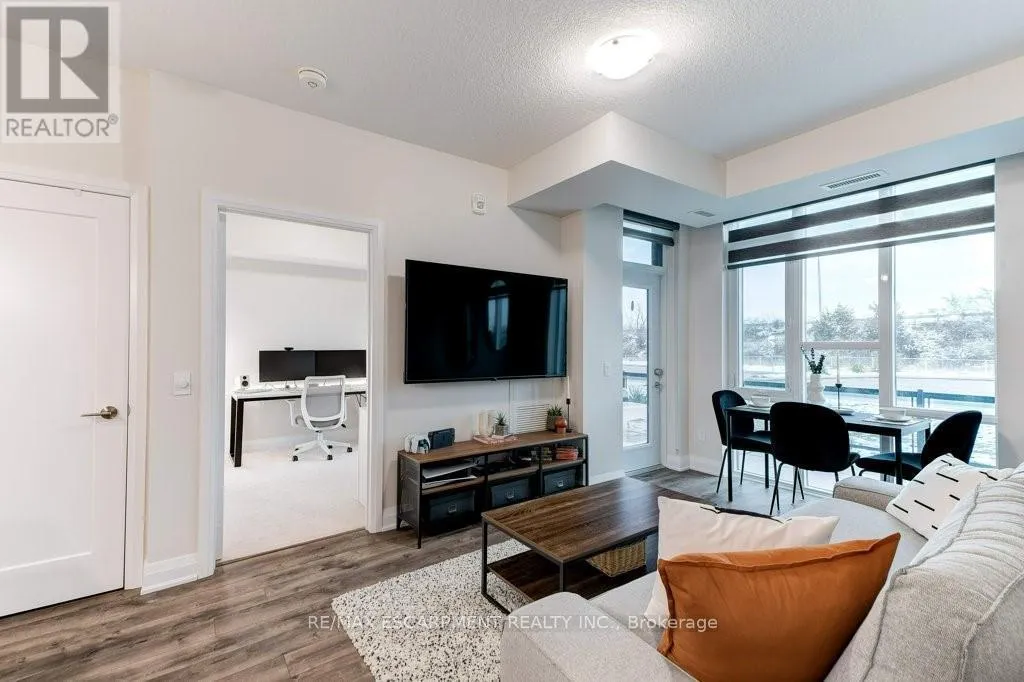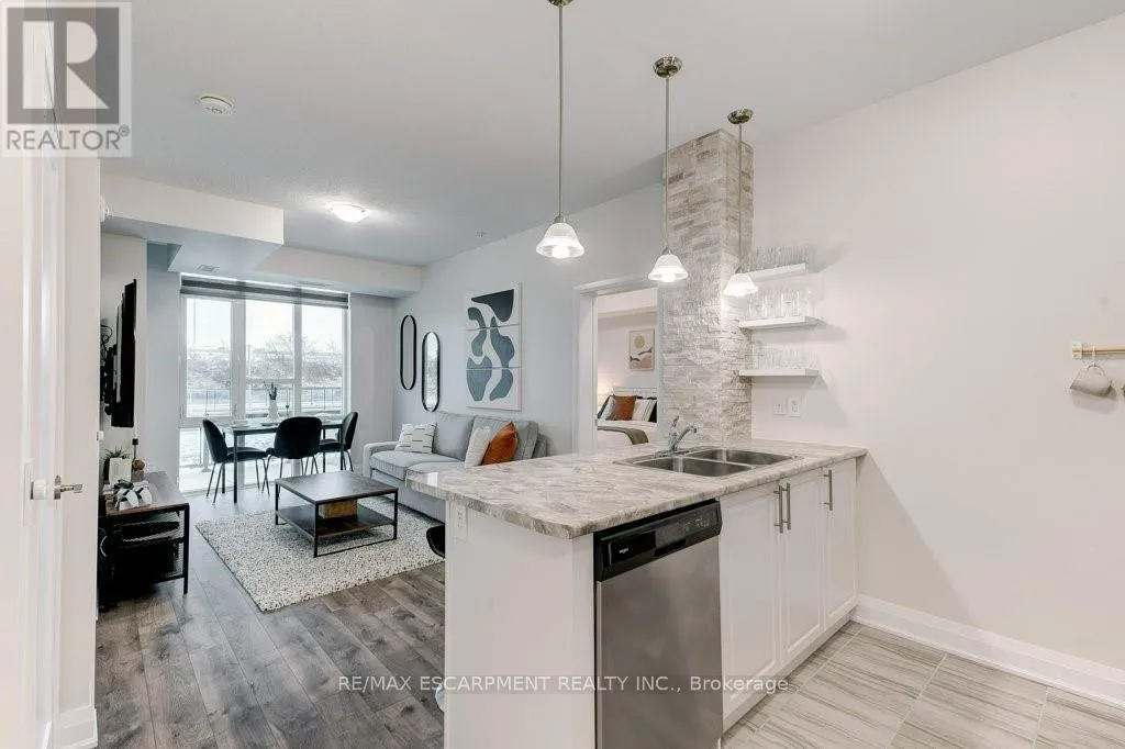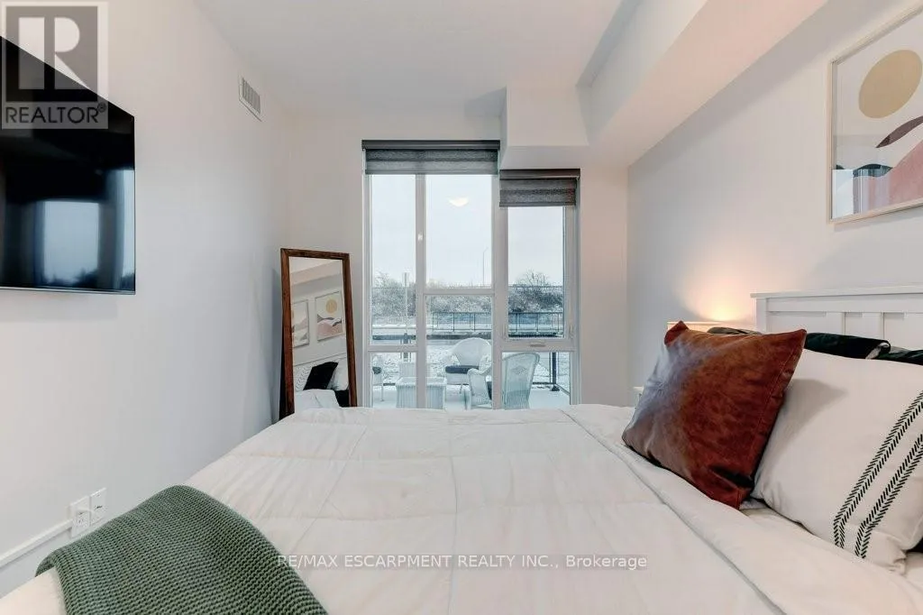 Cross Streets: North Service Rd & Concord Pl. ** Directions: QEW to Casablanca Blvd Exit. Upscale Lakefront Living! Elegant 2 Bedroom, 2 Bathroom ground floor suite with oversized 385 sq. ft. Terrace in the award winning AquaZul Waterfront Condominiums. Open-concept design, 9' ceilings, floor-to-ceiling windows & 1,191 SqFt of total living space with the expansive private Terrace; perfect for Entertaining & Lounging. Fabulous gourmet Kitchen w/Breakfast Bar, custom white cabinetry, S/S Appliances, floating shelves, tiled backsplash & ledgestone feature. Large Primary Suite with walk-in closet & luxe 3pc Ensuite with frameless walk-in glass shower. Spacious second Bedroom w/floor to ceiling windows. Stylish second (4pc) Bath & oversized closet w/system. Generous Great Room w/laminate wood floors, floor to ceiling windows & w-o to huge Terrace w/glass railings for spectacular seasonal entertaining. Aquazul is designed with opulent style & 5-star Resort style amenities: in-ground outdoor Pool with Cabanas, BBQ areas, Club Room w/fireplace & Terrace, Fitness Centre w/Lake views, Billiards, Media Room, Visitor Parking and so much more! Poised on the shores of Lake Ontario amidst the beauty of Wine Country & on Grimsby's $5 Million revitalized Lake Shore. Steps to Grimsby Waterfront Beach Park Trail & walkable to the unique shops & restaurants of charming Grimsby on the Lake. Close to transit, highways & 2 minutes from the new GO train station in the works. AquaZul will be like living at your own resort, and it's all just outside your front door. (id:27476)